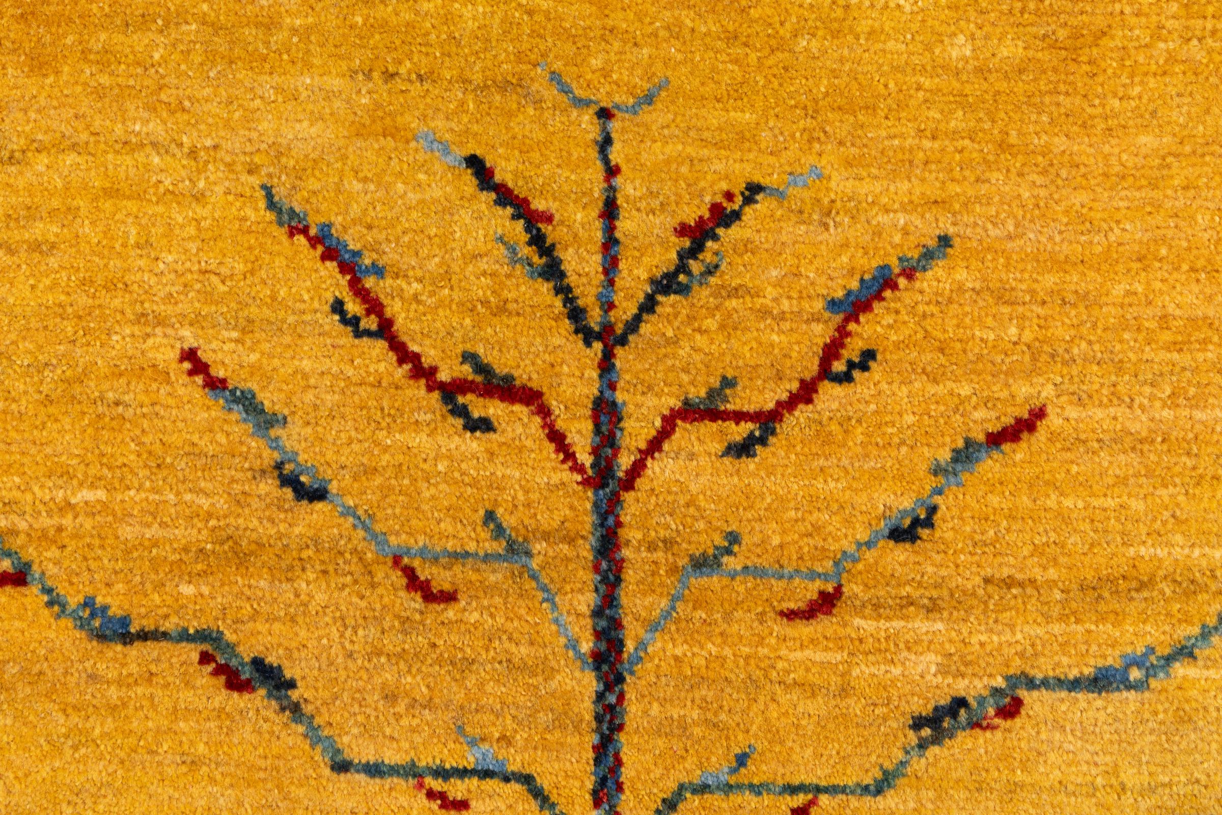 Αυτό το όμορφο χαλί είναι περσικό χαλί Gabbeh και είναι ένα από τα ποιοτικότερα χαλιά Gabbeh. Τα χαλιά δένονται από νομάδες ή ημινομάδες στο Ιράν σύμφωνα με την παραδοσιακή χειροτεχνία. Τα απλά μοτίβα και τα σχέδια είναι κυρίως εμπνευσμένα από το άμεσο περιβάλλον των νομάδων. Για παράδειγμα, καμήλες, δέντρα ή θάμνοι μπορούν να βρεθούν στα παραδοσιακά χαλιά. Τα περσικά χαλιά Gabbeh κατασκευάζονται από μαλλί από κοπάδια προβάτων που εκτρέφονται τοπικά. Ως εκ τούτου, το μαλλί ως επί το πλείστον εξακολουθεί να κλώνεται με το χέρι. Κάθε ένα από αυτά τα ανατολίτικα χαλιά ενσαρκώνει έναν μοναδικό χαρακτήρα αιώνων πολιτισμού.
