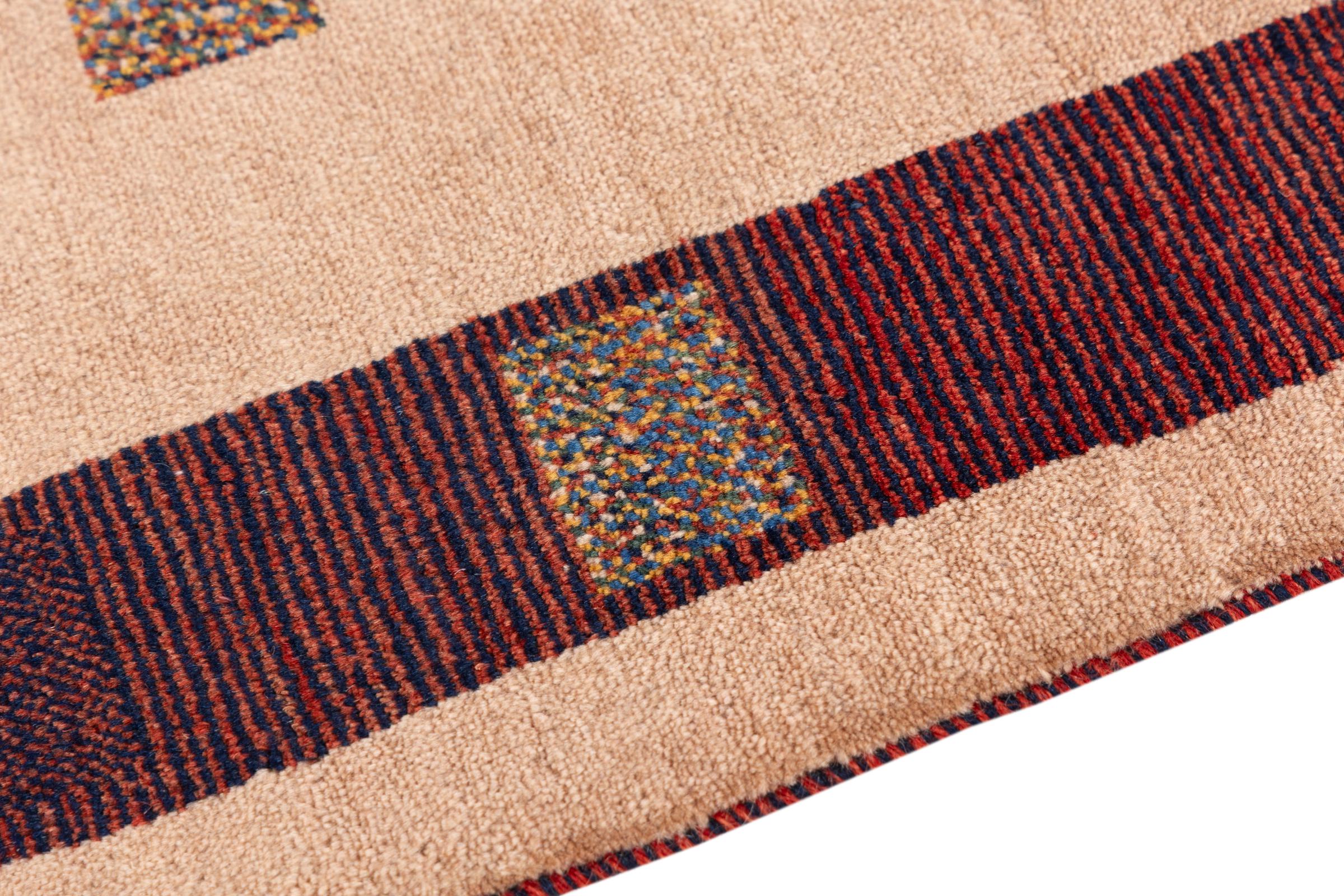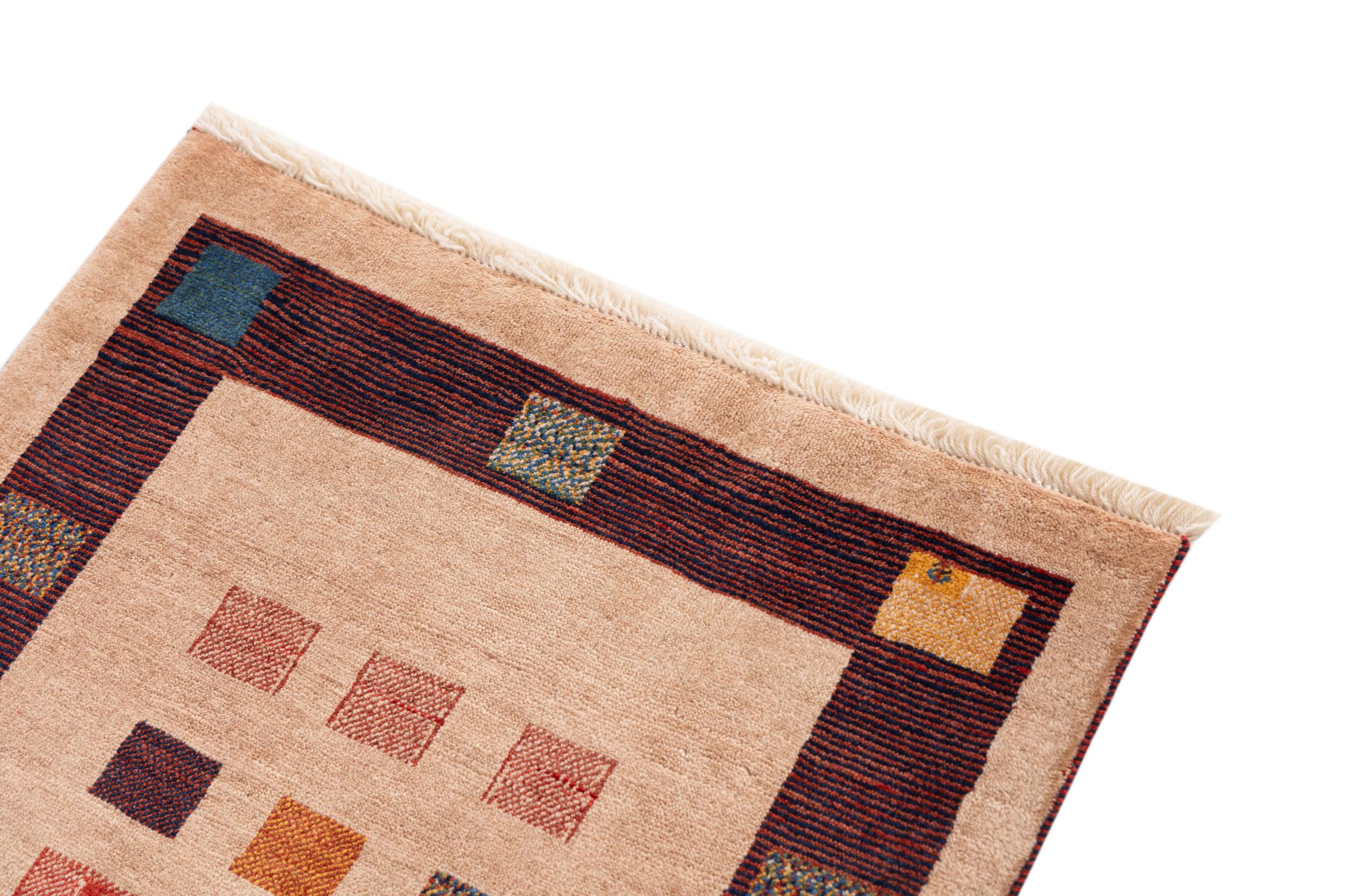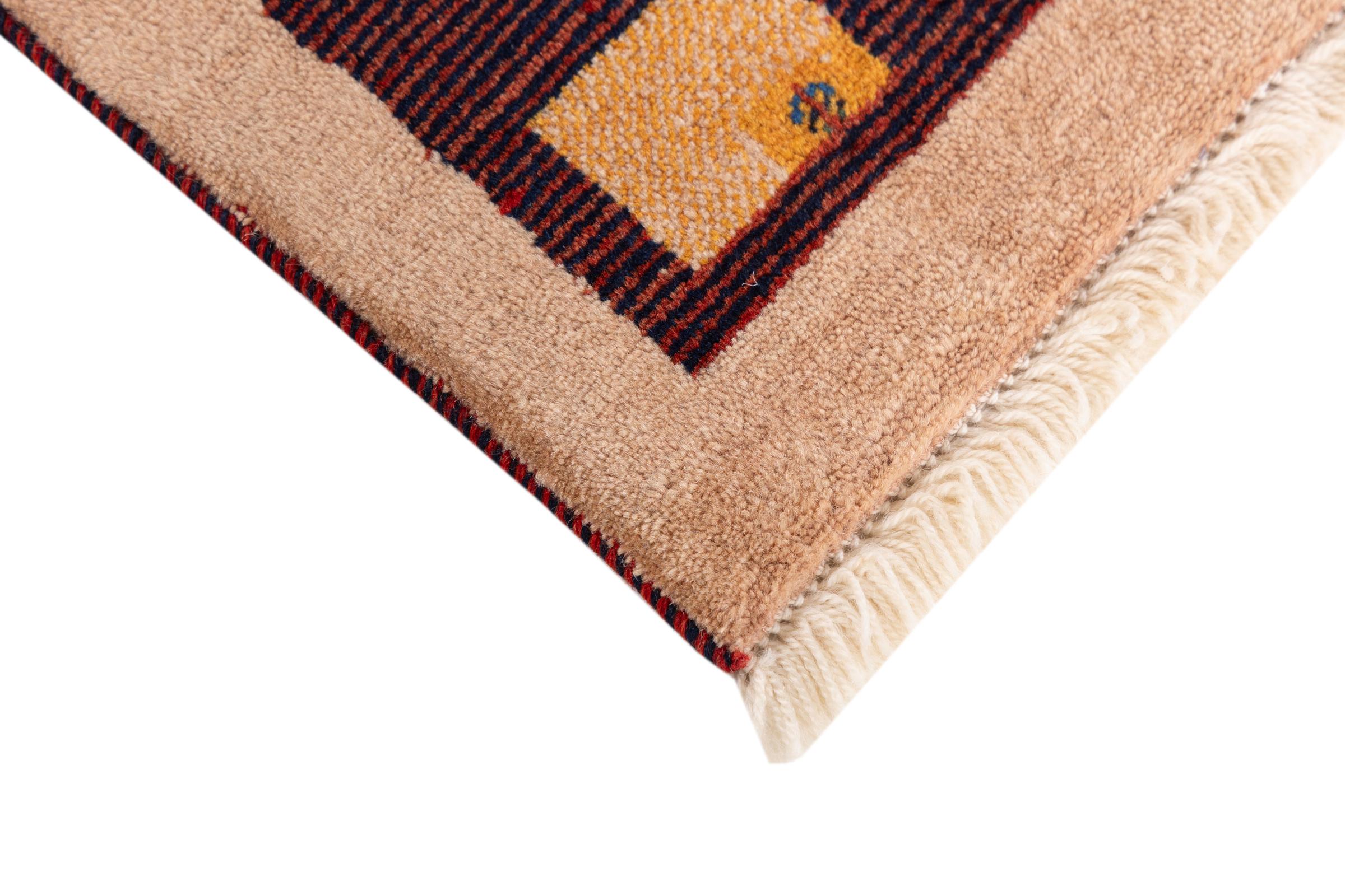 Αυτό το όμορφο χαλί είναι περσικό χαλί Gabbeh και είναι ένα από τα ποιοτικότερα χαλιά Gabbeh. Τα χαλιά δένονται από νομάδες ή ημινομάδες στο Ιράν σύμφωνα με την παραδοσιακή χειροτεχνία. Τα απλά μοτίβα και τα σχέδια είναι κυρίως εμπνευσμένα από το άμεσο περιβάλλον των νομάδων. Για παράδειγμα, καμήλες, δέντρα ή θάμνοι μπορούν να βρεθούν στα παραδοσιακά χαλιά. Τα περσικά χαλιά Gabbeh κατασκευάζονται από μαλλί από κοπάδια προβάτων που εκτρέφονται τοπικά. Ως εκ τούτου, το μαλλί ως επί το πλείστον εξακολουθεί να κλώνεται με το χέρι. Κάθε ένα από αυτά τα ανατολίτικα χαλιά ενσαρκώνει έναν μοναδικό χαρακτήρα αιώνων πολιτισμού.