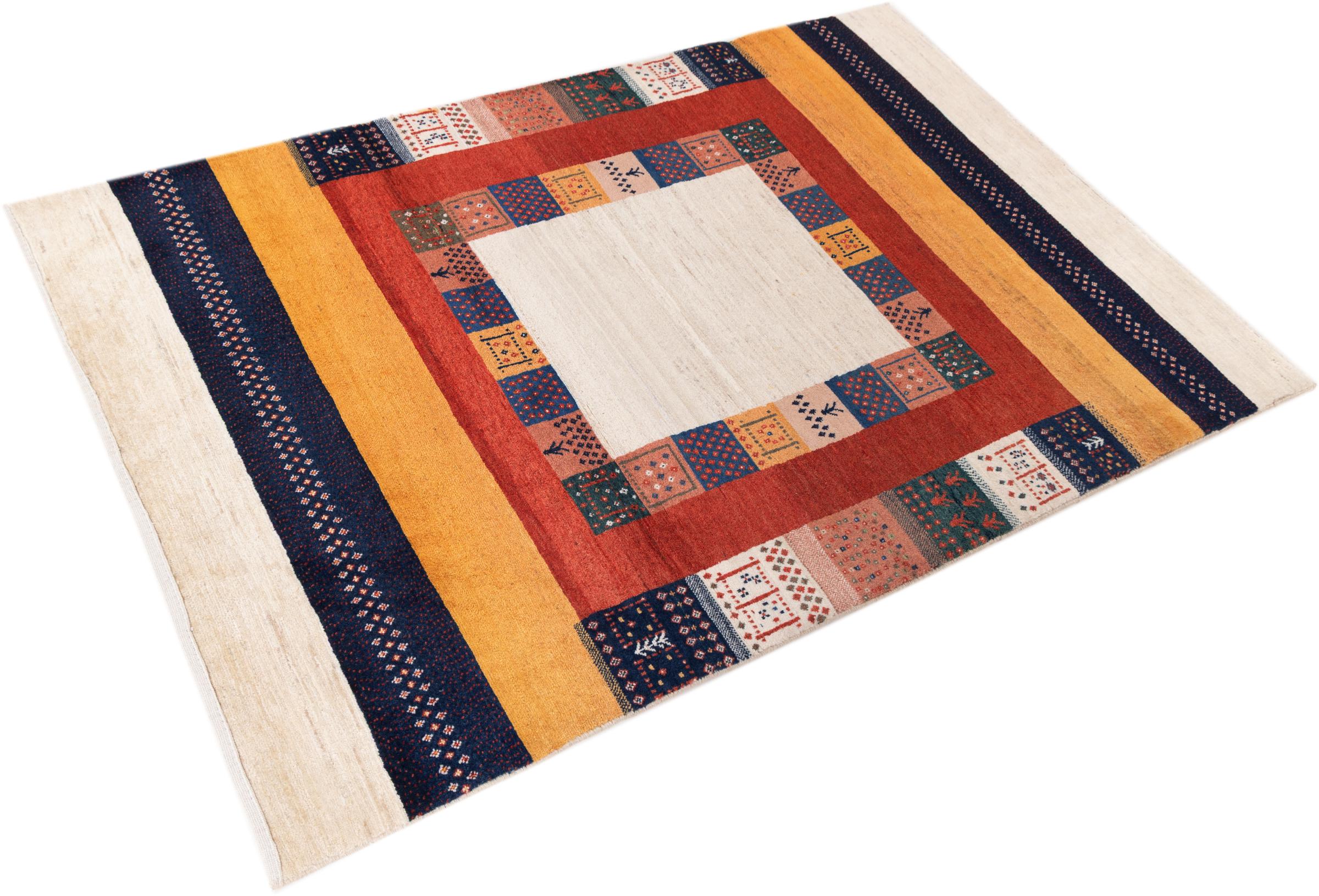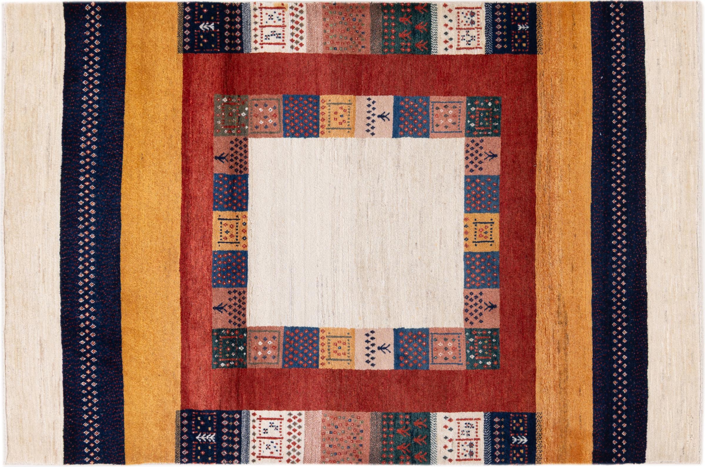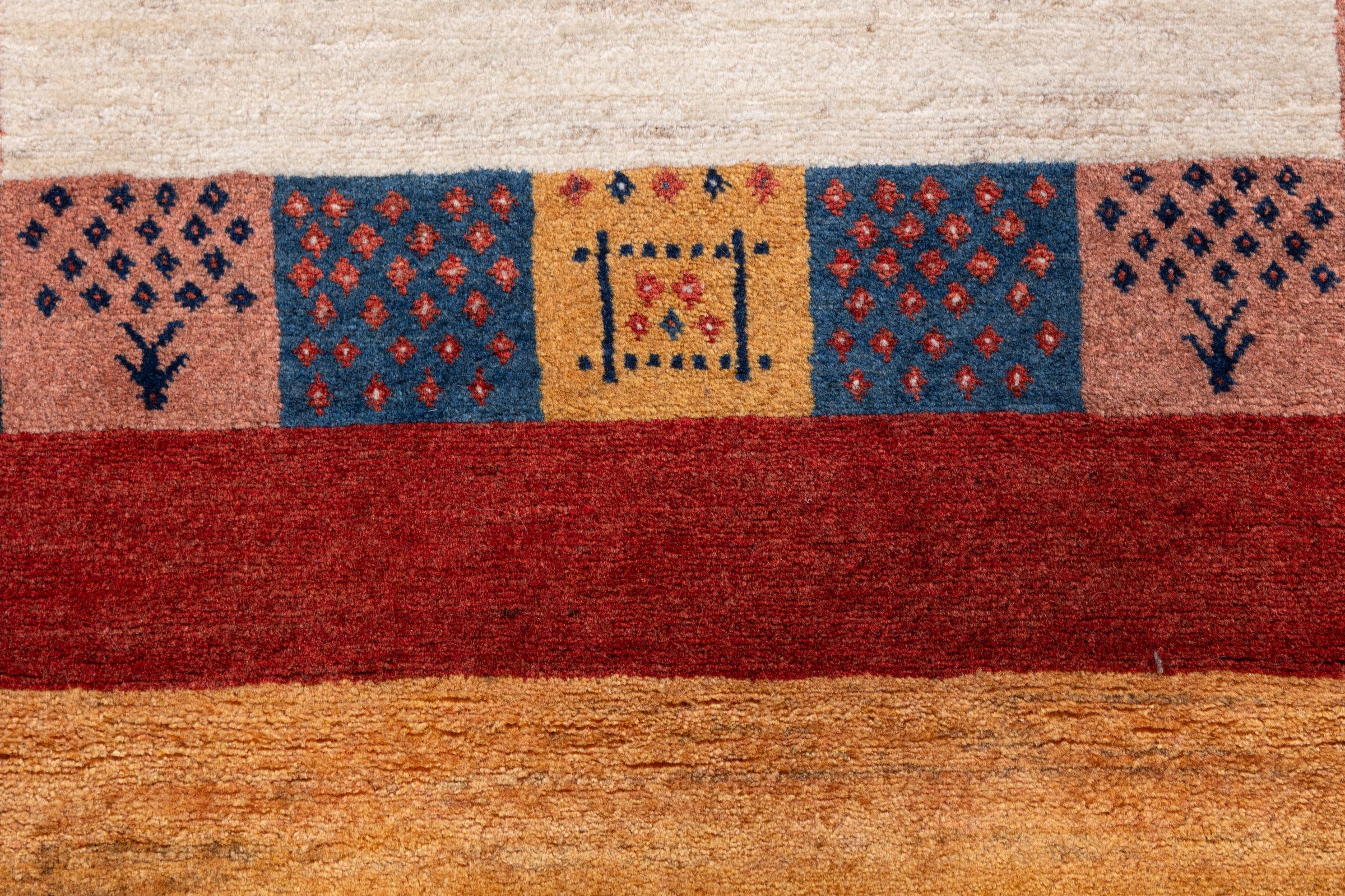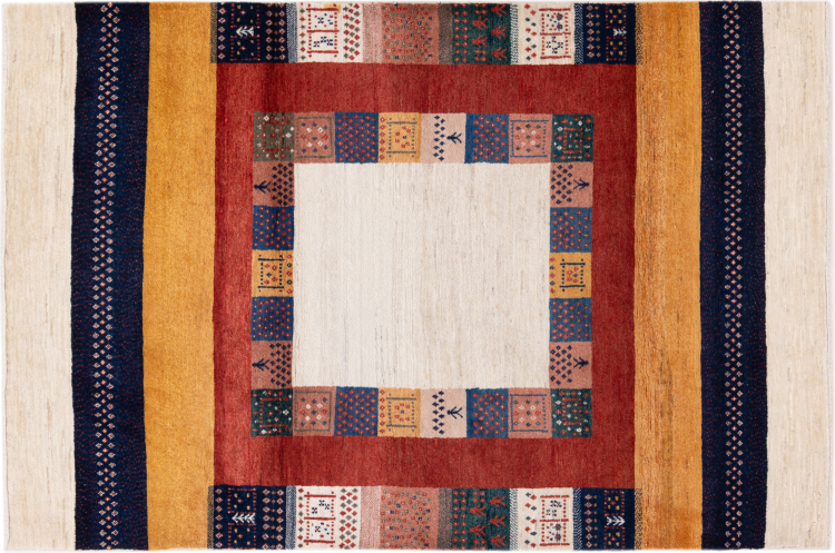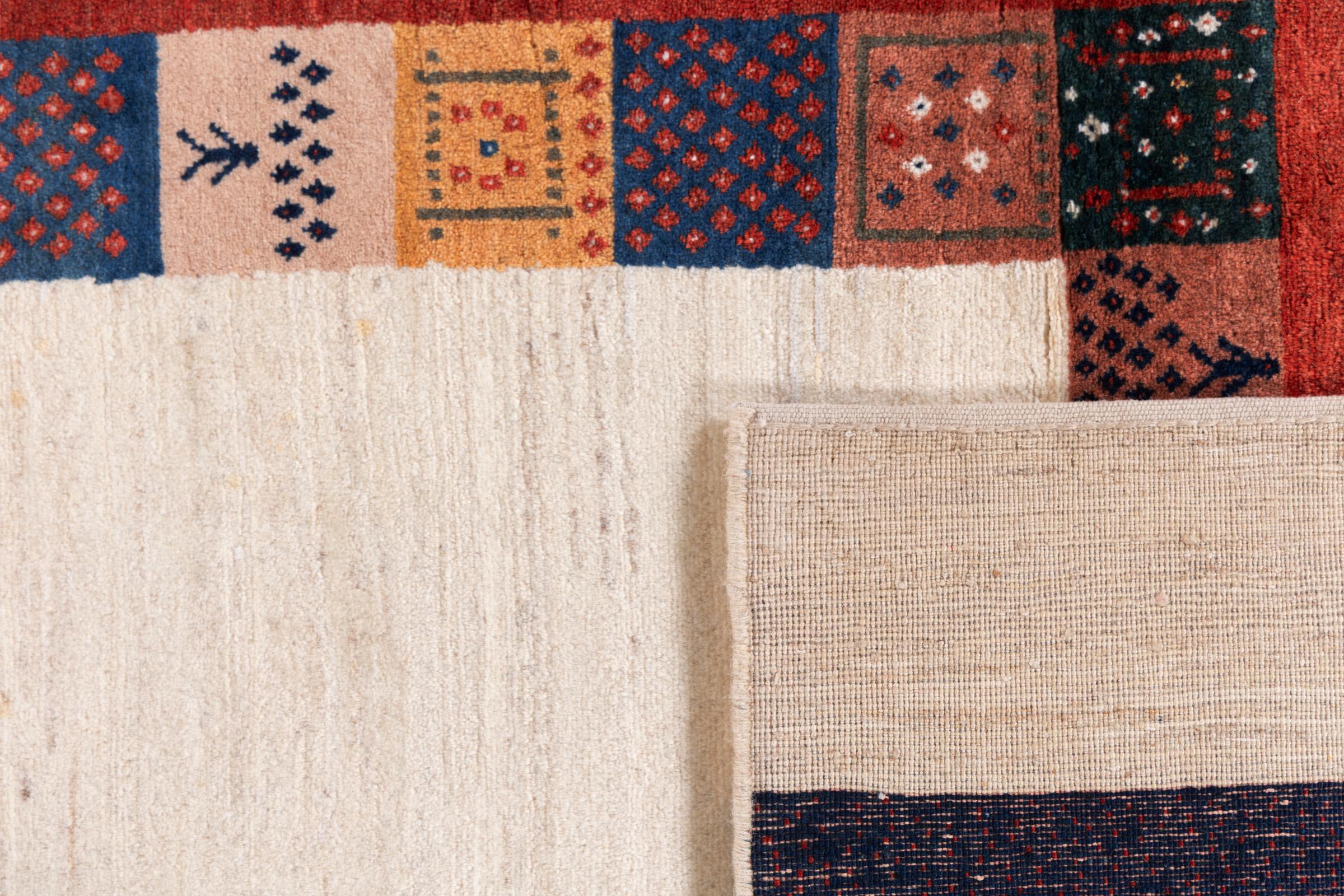 Αυτό το όμορφο χαλί είναι περσικό χαλί Gabbeh και είναι ένα από τα ποιοτικότερα χαλιά Gabbeh. Τα χαλιά δένονται από νομάδες ή ημινομάδες στο Ιράν σύμφωνα με την παραδοσιακή χειροτεχνία. Τα απλά μοτίβα και τα σχέδια είναι κυρίως εμπνευσμένα από το άμεσο περιβάλλον των νομάδων. Για παράδειγμα, καμήλες, δέντρα ή θάμνοι μπορούν να βρεθούν στα παραδοσιακά χαλιά. Τα περσικά χαλιά Gabbeh κατασκευάζονται από μαλλί από κοπάδια προβάτων που εκτρέφονται τοπικά. Ως εκ τούτου, το μαλλί ως επί το πλείστον εξακολουθεί να κλώνεται με το χέρι. Κάθε ένα από αυτά τα ανατολίτικα χαλιά ενσαρκώνει έναν μοναδικό χαρακτήρα αιώνων πολιτισμού.