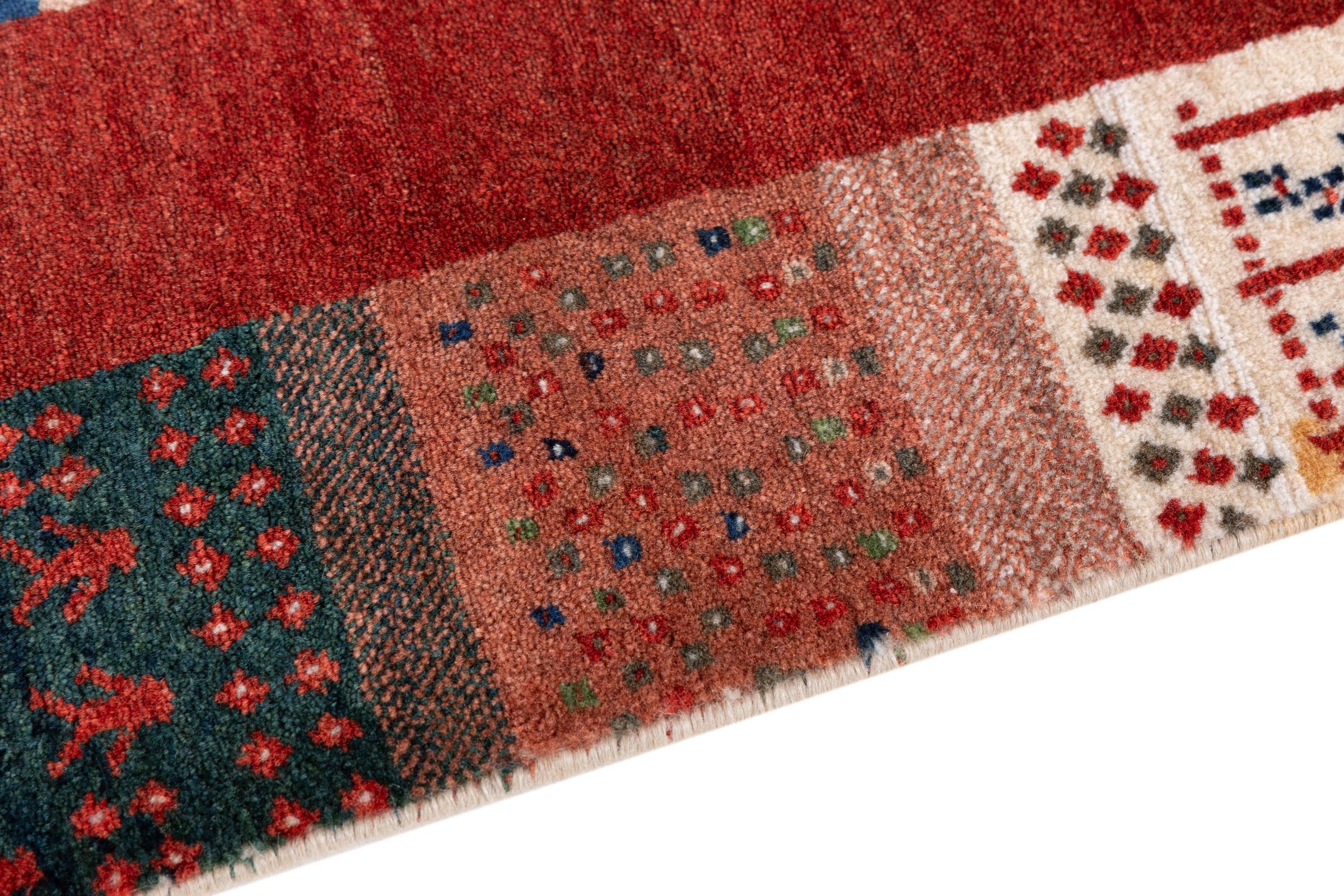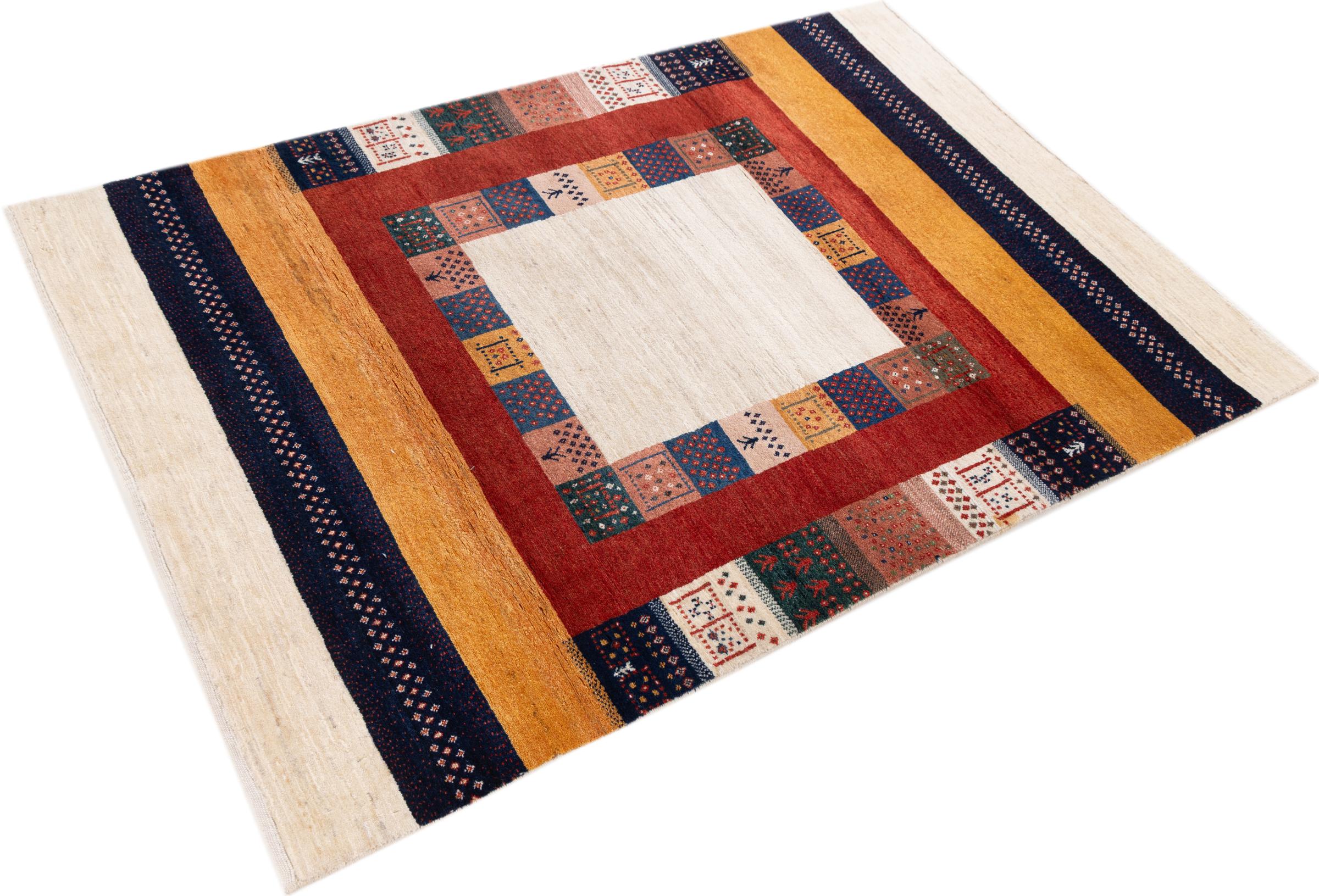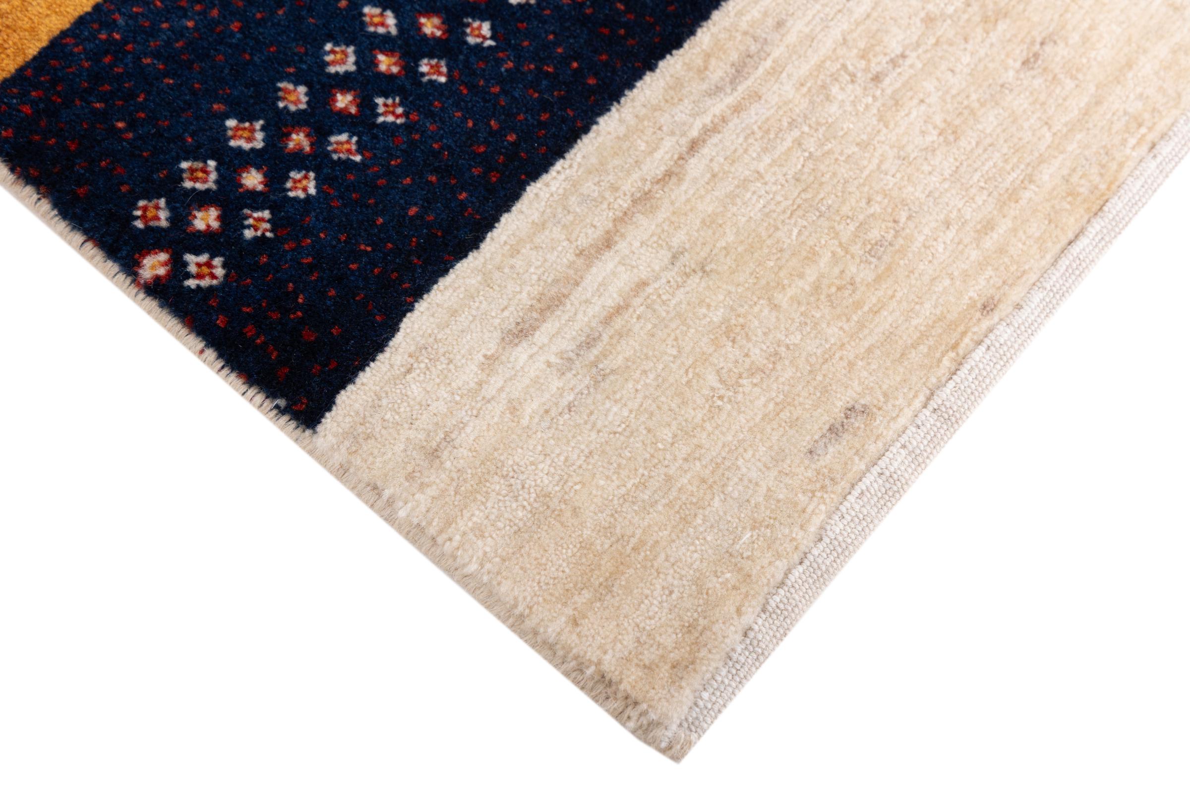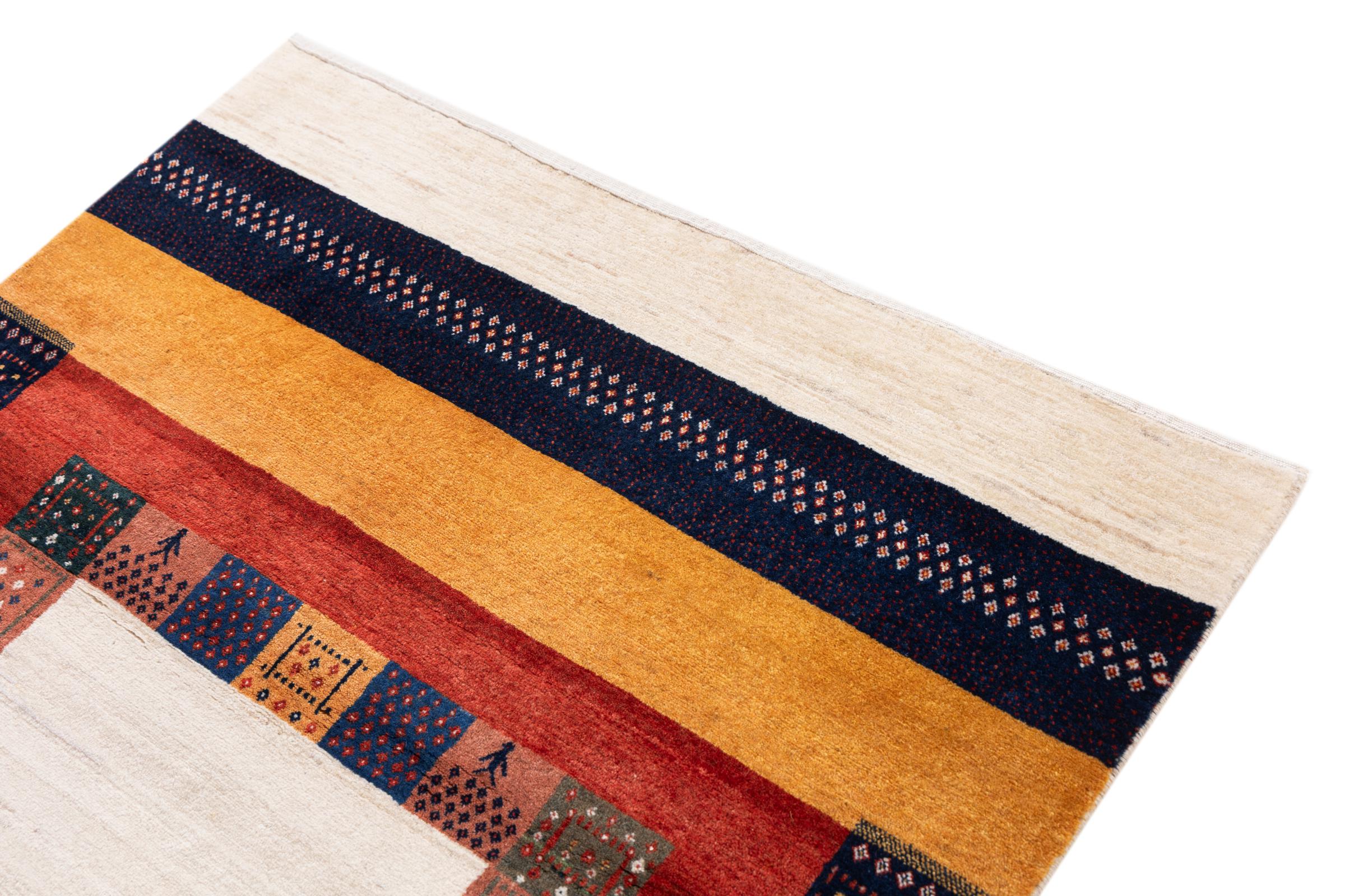 Αυτό το όμορφο χαλί είναι περσικό χαλί Gabbeh και είναι ένα από τα ποιοτικότερα χαλιά Gabbeh. Τα χαλιά δένονται από νομάδες ή ημινομάδες στο Ιράν σύμφωνα με την παραδοσιακή χειροτεχνία. Τα απλά μοτίβα και τα σχέδια είναι κυρίως εμπνευσμένα από το άμεσο περιβάλλον των νομάδων. Για παράδειγμα, καμήλες, δέντρα ή θάμνοι μπορούν να βρεθούν στα παραδοσιακά χαλιά. Τα περσικά χαλιά Gabbeh κατασκευάζονται από μαλλί από κοπάδια προβάτων που εκτρέφονται τοπικά. Ως εκ τούτου, το μαλλί ως επί το πλείστον εξακολουθεί να κλώνεται με το χέρι. Κάθε ένα από αυτά τα ανατολίτικα χαλιά ενσαρκώνει έναν μοναδικό χαρακτήρα αιώνων πολιτισμού.