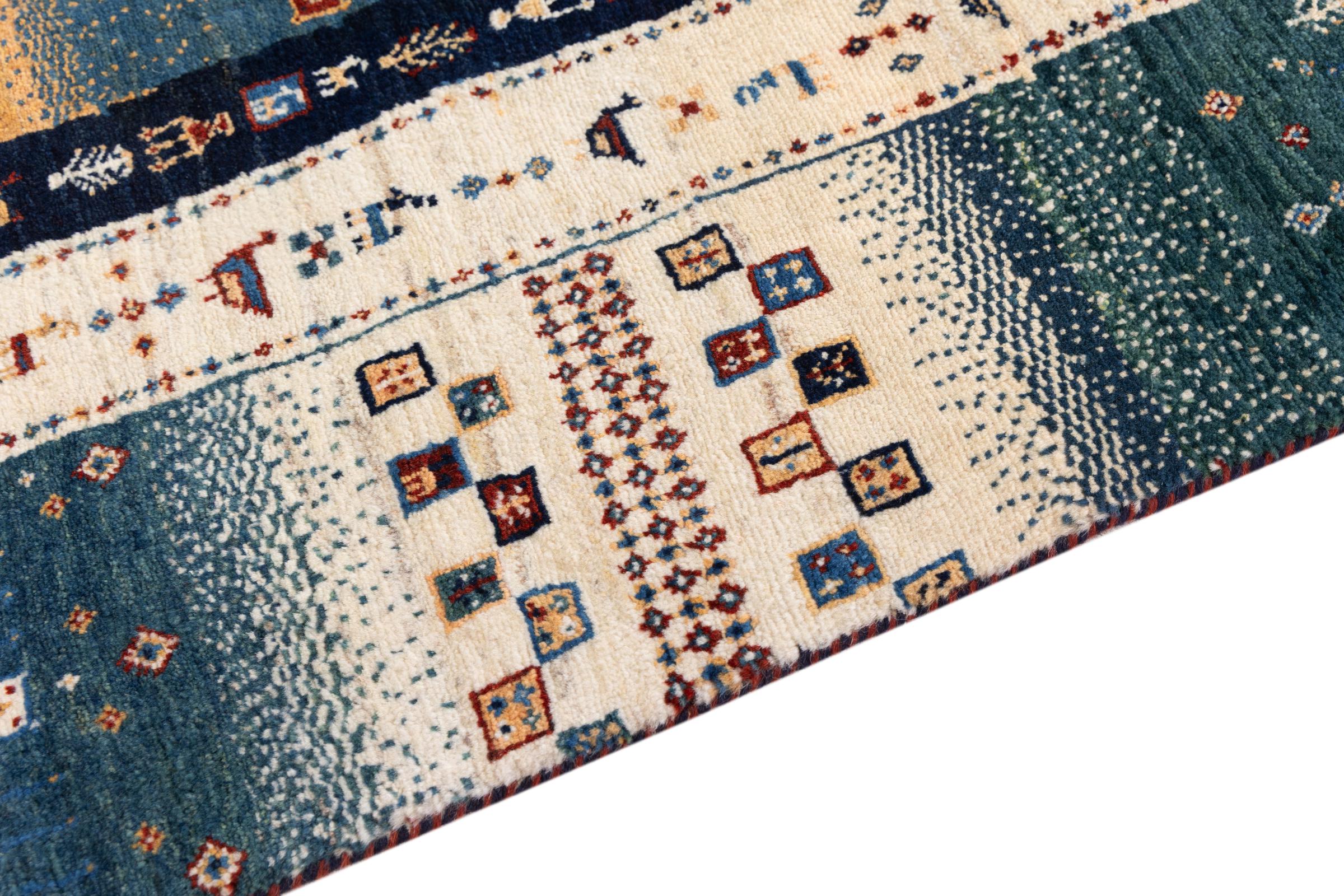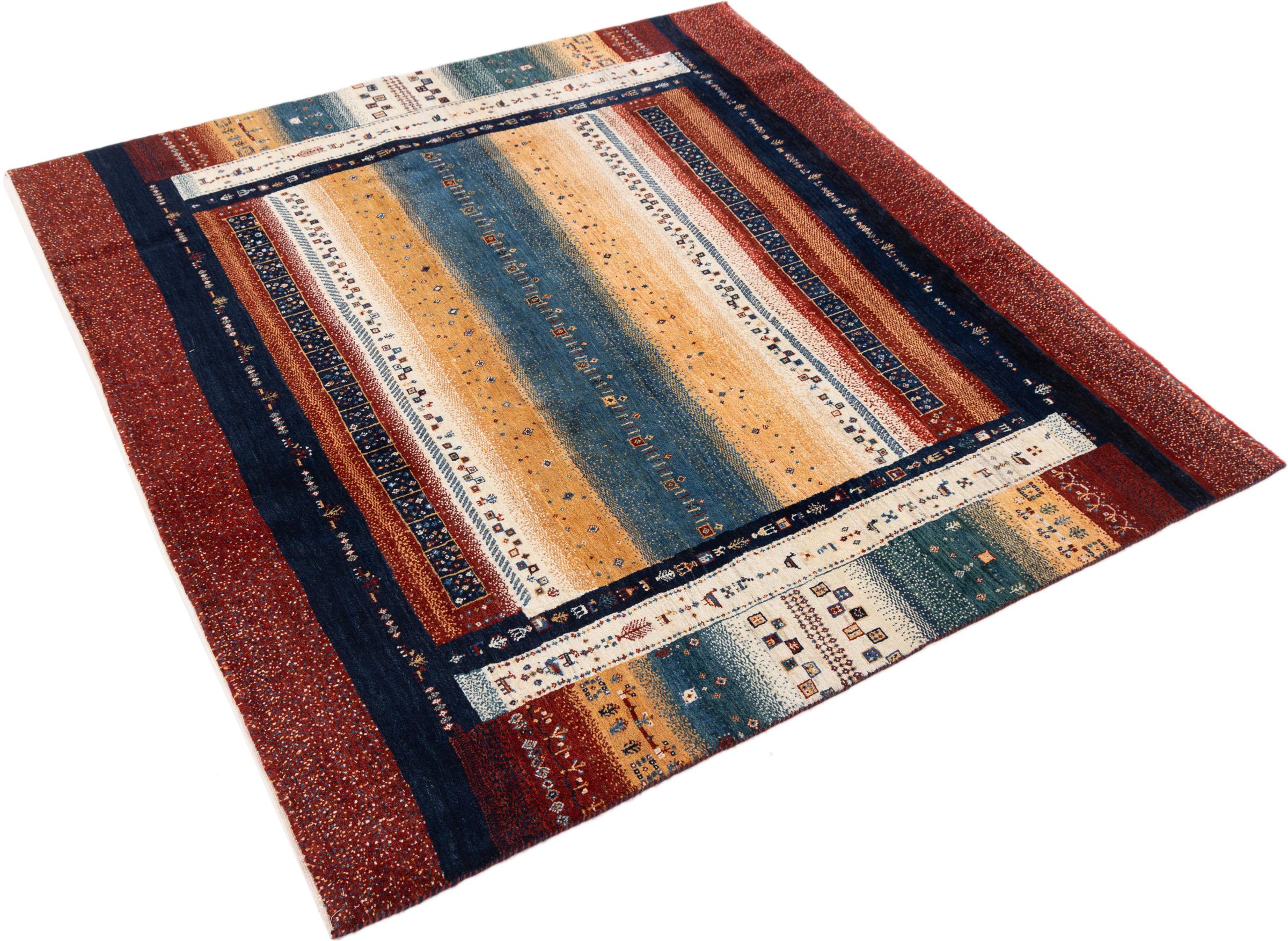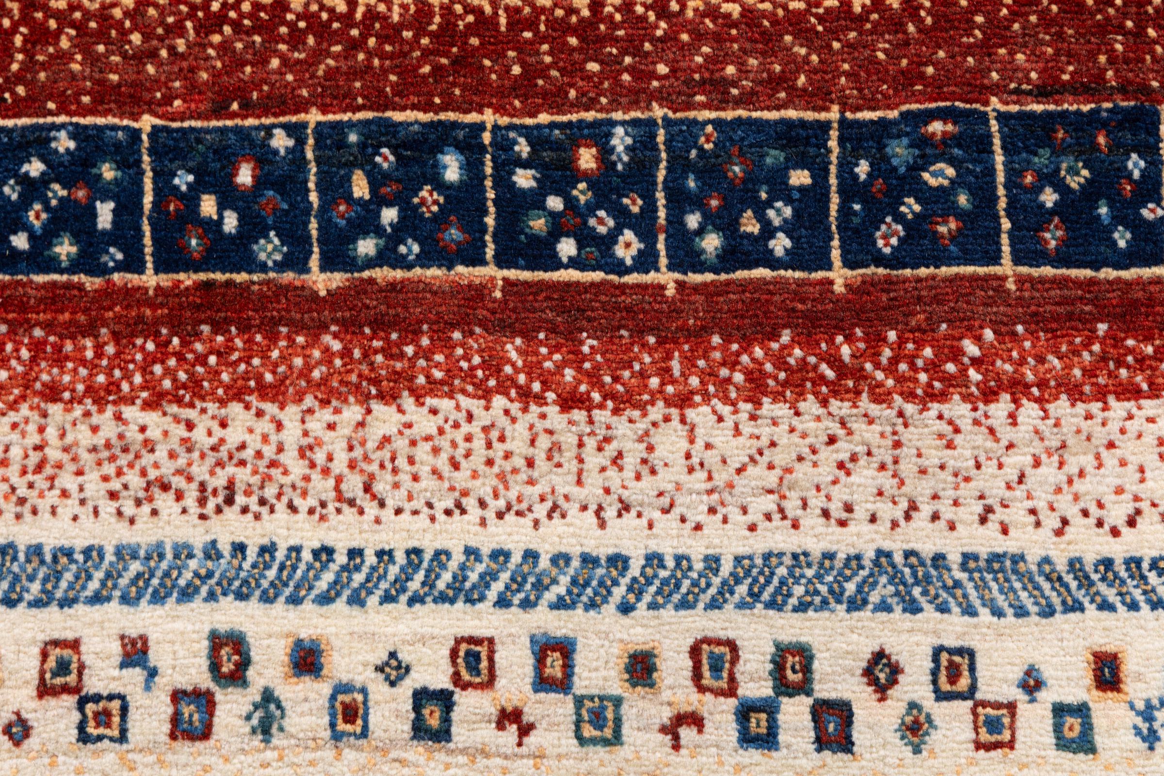 Αυτό το όμορφο χαλί είναι περσικό χαλί Gabbeh και είναι ένα από τα ποιοτικότερα χαλιά Gabbeh. Τα χαλιά δένονται από νομάδες ή ημινομάδες στο Ιράν σύμφωνα με την παραδοσιακή χειροτεχνία. Τα απλά μοτίβα και τα σχέδια είναι κυρίως εμπνευσμένα από το άμεσο περιβάλλον των νομάδων. Για παράδειγμα, καμήλες, δέντρα ή θάμνοι μπορούν να βρεθούν στα παραδοσιακά χαλιά. Τα περσικά χαλιά Gabbeh κατασκευάζονται από μαλλί από κοπάδια προβάτων που εκτρέφονται τοπικά. Ως εκ τούτου, το μαλλί ως επί το πλείστον εξακολουθεί να κλώνεται με το χέρι. Κάθε ένα από αυτά τα ανατολίτικα χαλιά ενσαρκώνει έναν μοναδικό χαρακτήρα αιώνων πολιτισμού.