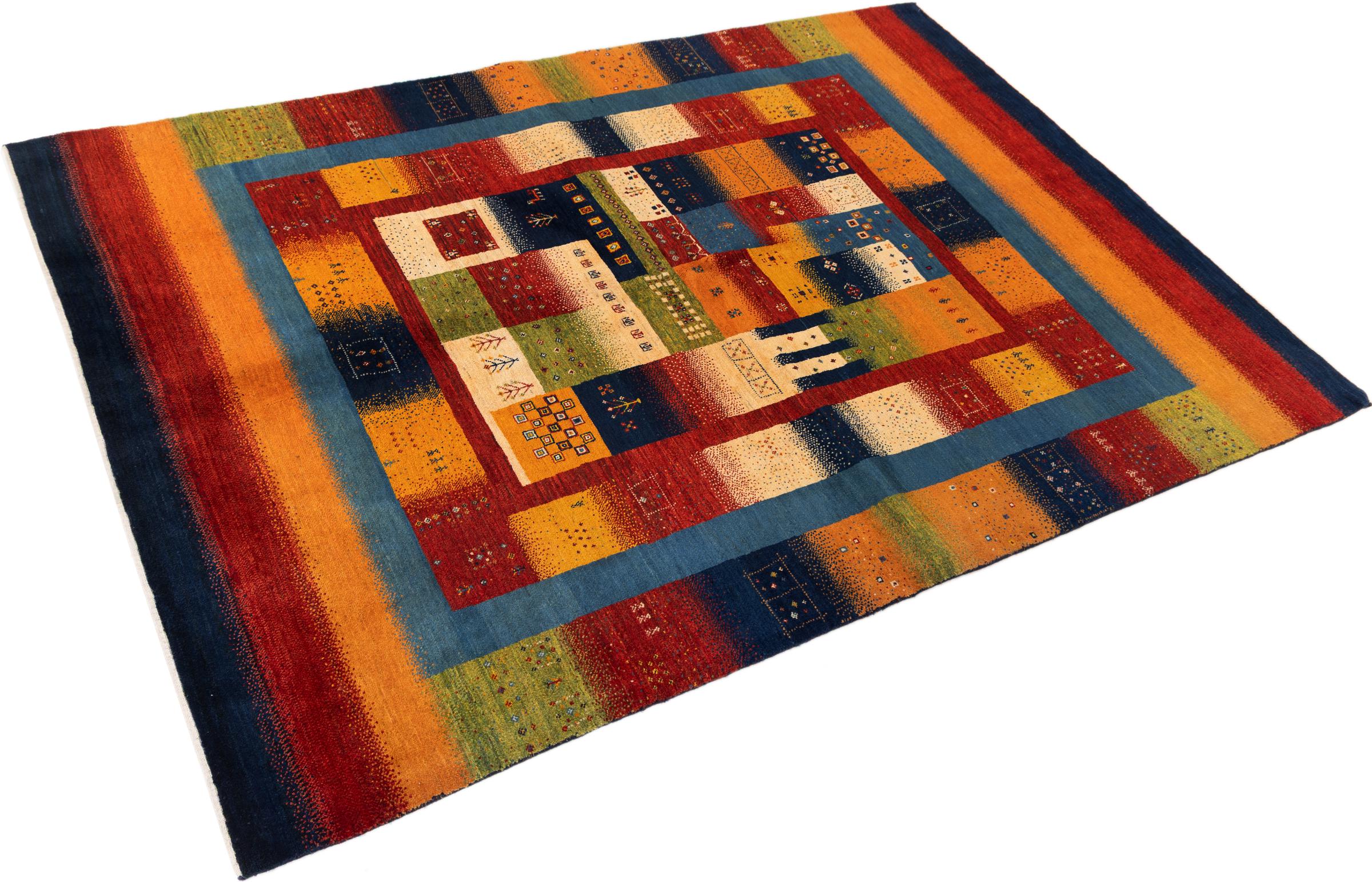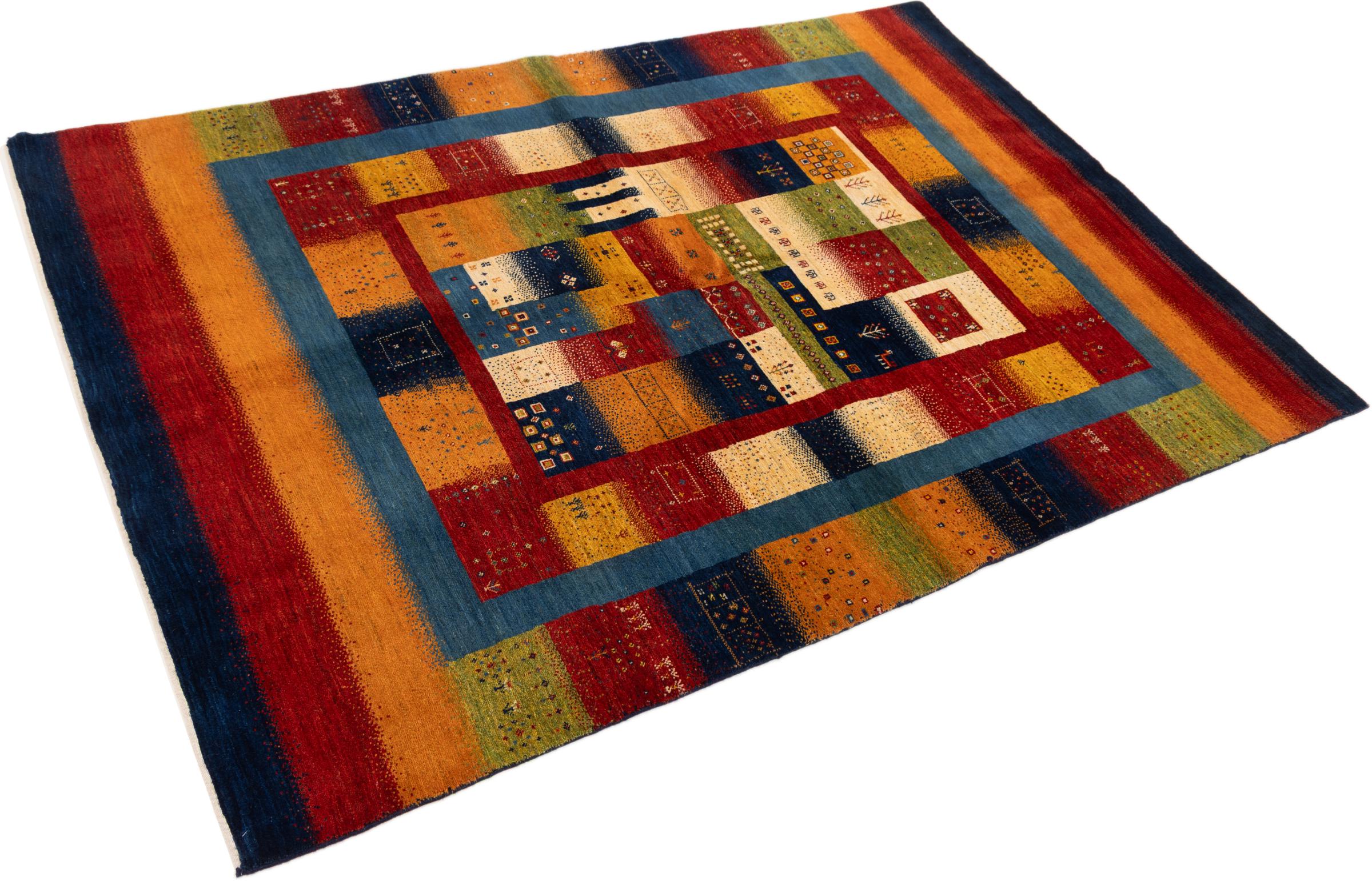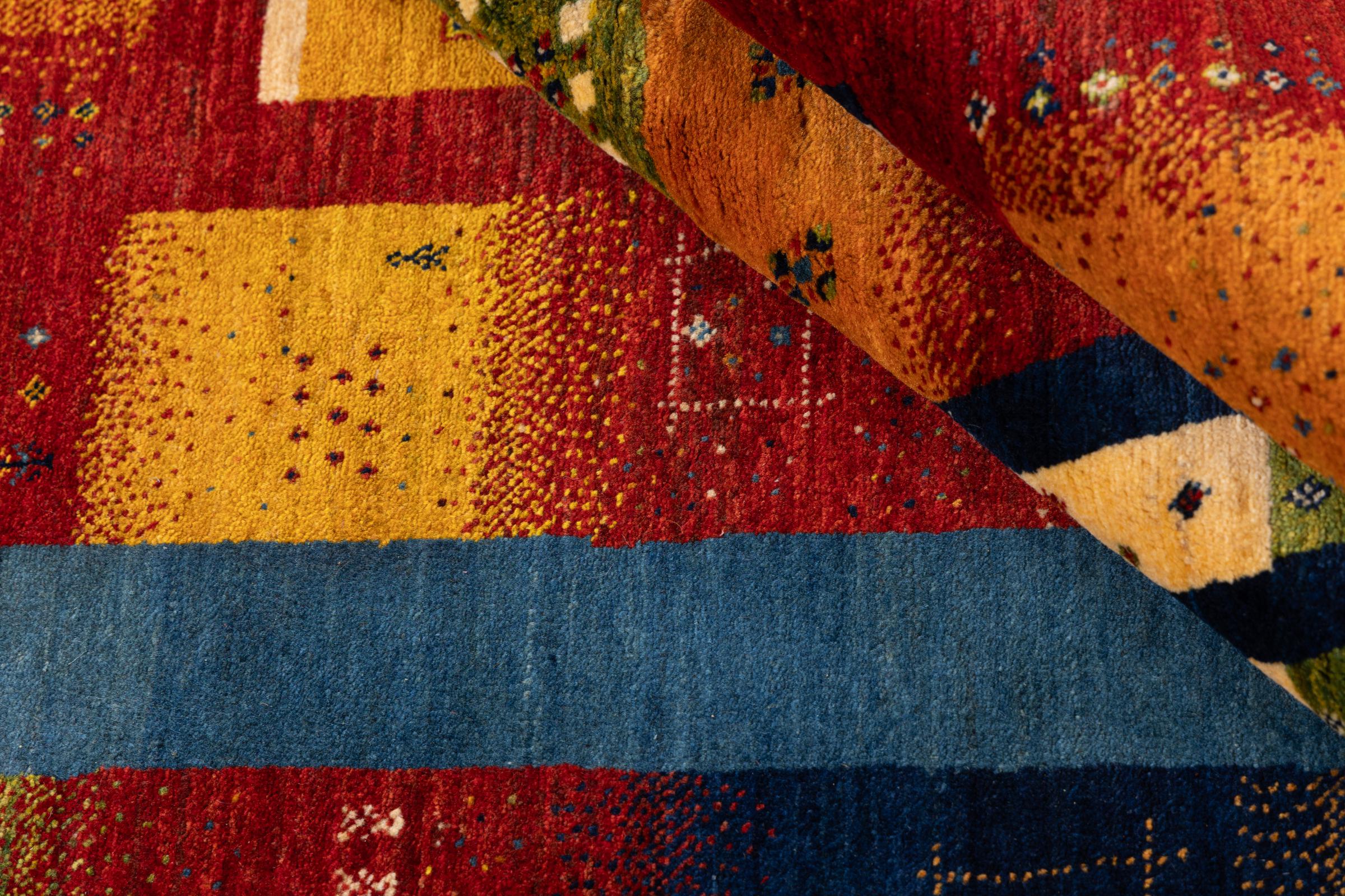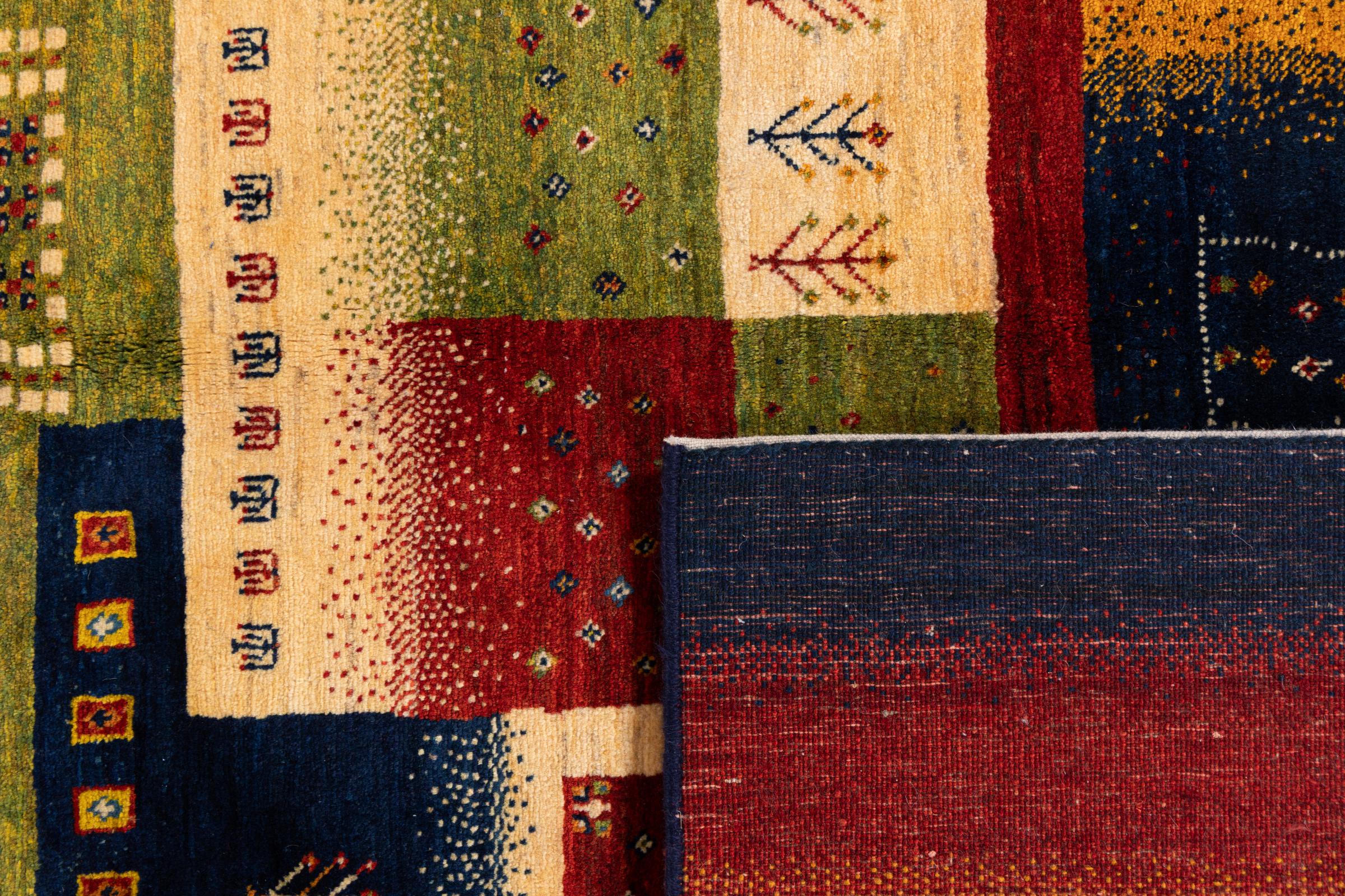 Αυτό το όμορφο χαλί είναι περσικό χαλί Gabbeh και είναι ένα από τα ποιοτικότερα χαλιά Gabbeh. Τα χαλιά δένονται από νομάδες ή ημινομάδες στο Ιράν σύμφωνα με την παραδοσιακή χειροτεχνία. Τα απλά μοτίβα και τα σχέδια είναι κυρίως εμπνευσμένα από το άμεσο περιβάλλον των νομάδων. Για παράδειγμα, καμήλες, δέντρα ή θάμνοι μπορούν να βρεθούν στα παραδοσιακά χαλιά. Τα περσικά χαλιά Gabbeh κατασκευάζονται από μαλλί από κοπάδια προβάτων που εκτρέφονται τοπικά. Ως εκ τούτου, το μαλλί ως επί το πλείστον εξακολουθεί να κλώνεται με το χέρι. Κάθε ένα από αυτά τα ανατολίτικα χαλιά ενσαρκώνει έναν μοναδικό χαρακτήρα αιώνων πολιτισμού.