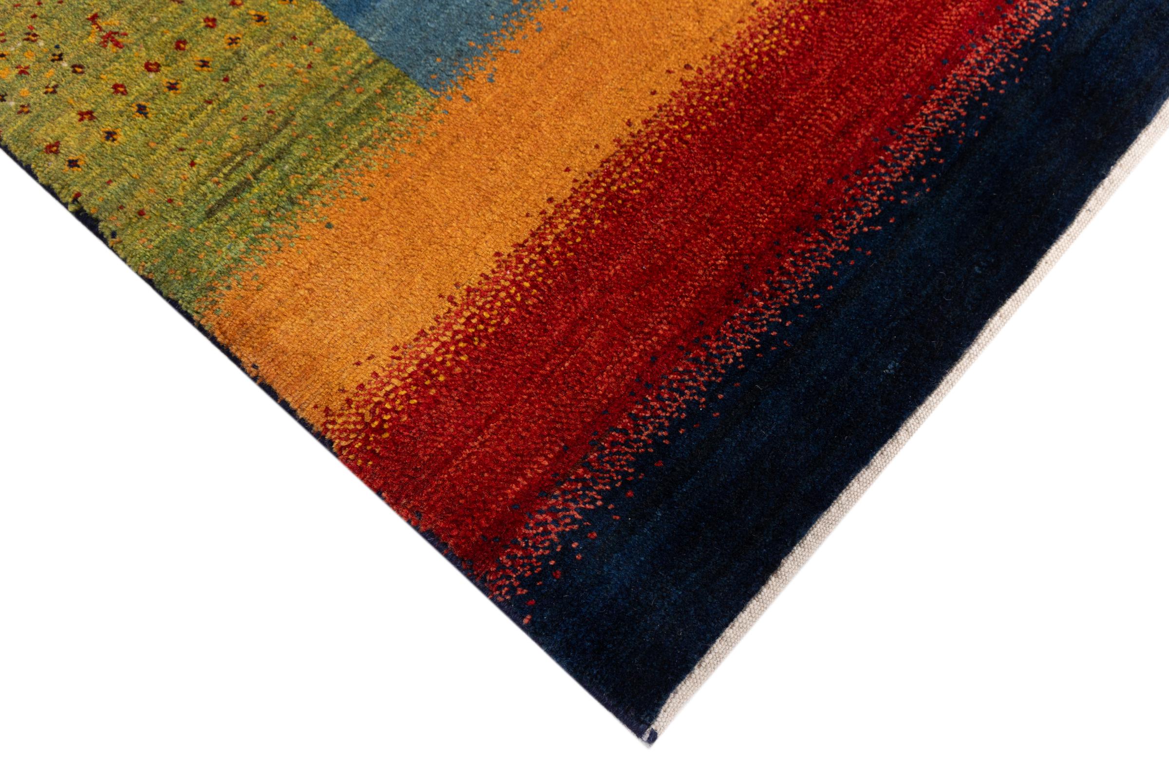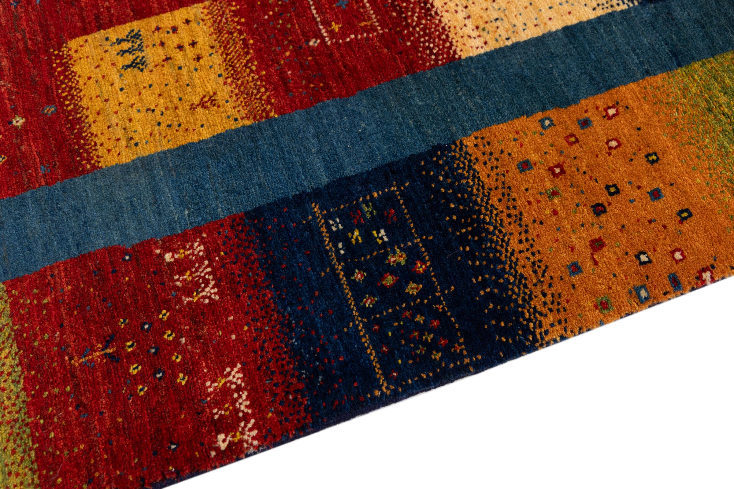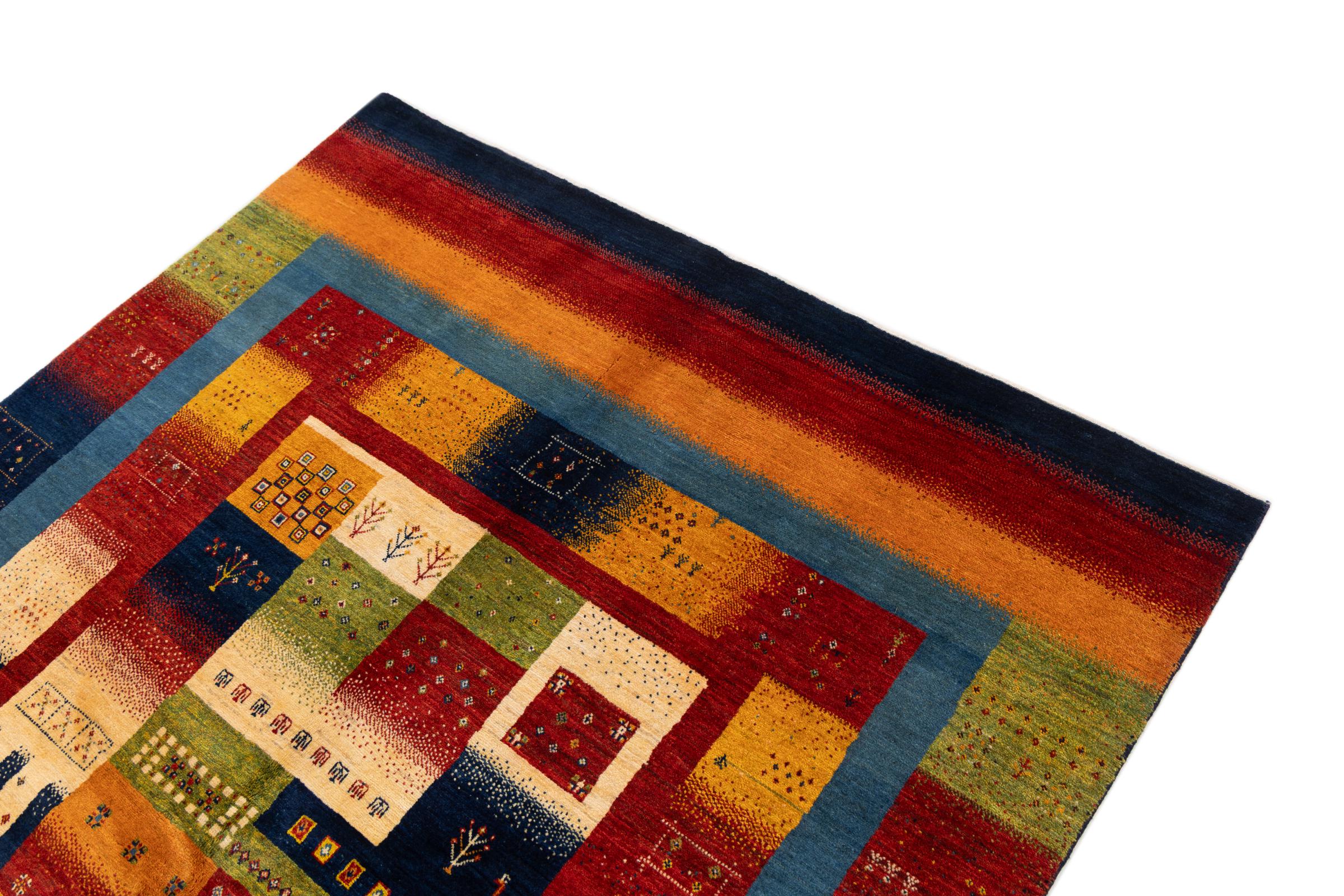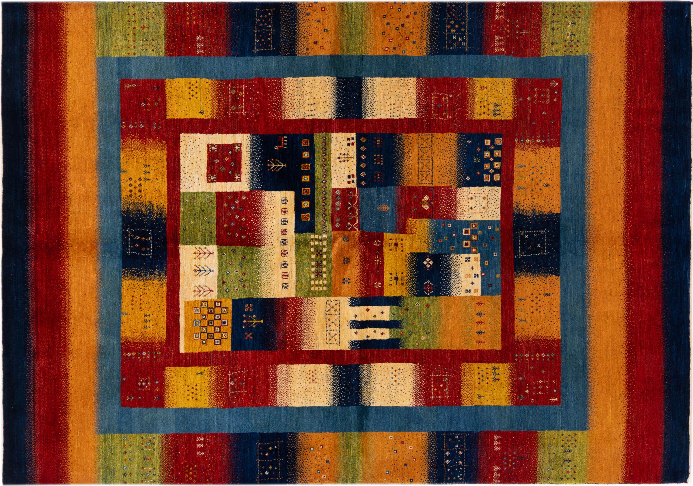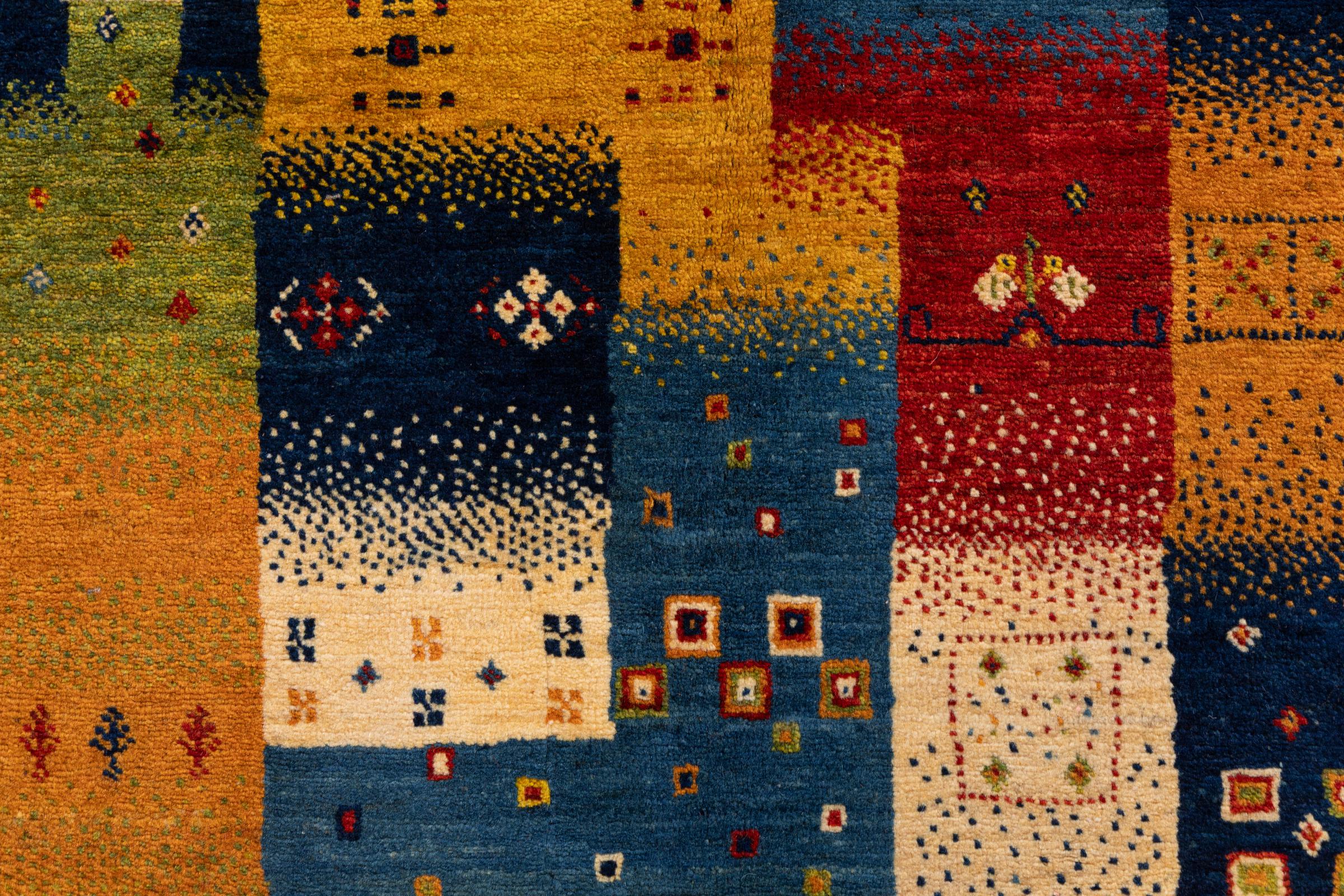 Αυτό το όμορφο χαλί είναι περσικό χαλί Gabbeh και είναι ένα από τα ποιοτικότερα χαλιά Gabbeh. Τα χαλιά δένονται από νομάδες ή ημινομάδες στο Ιράν σύμφωνα με την παραδοσιακή χειροτεχνία. Τα απλά μοτίβα και τα σχέδια είναι κυρίως εμπνευσμένα από το άμεσο περιβάλλον των νομάδων. Για παράδειγμα, καμήλες, δέντρα ή θάμνοι μπορούν να βρεθούν στα παραδοσιακά χαλιά. Τα περσικά χαλιά Gabbeh κατασκευάζονται από μαλλί από κοπάδια προβάτων που εκτρέφονται τοπικά. Ως εκ τούτου, το μαλλί ως επί το πλείστον εξακολουθεί να κλώνεται με το χέρι. Κάθε ένα από αυτά τα ανατολίτικα χαλιά ενσαρκώνει έναν μοναδικό χαρακτήρα αιώνων πολιτισμού.