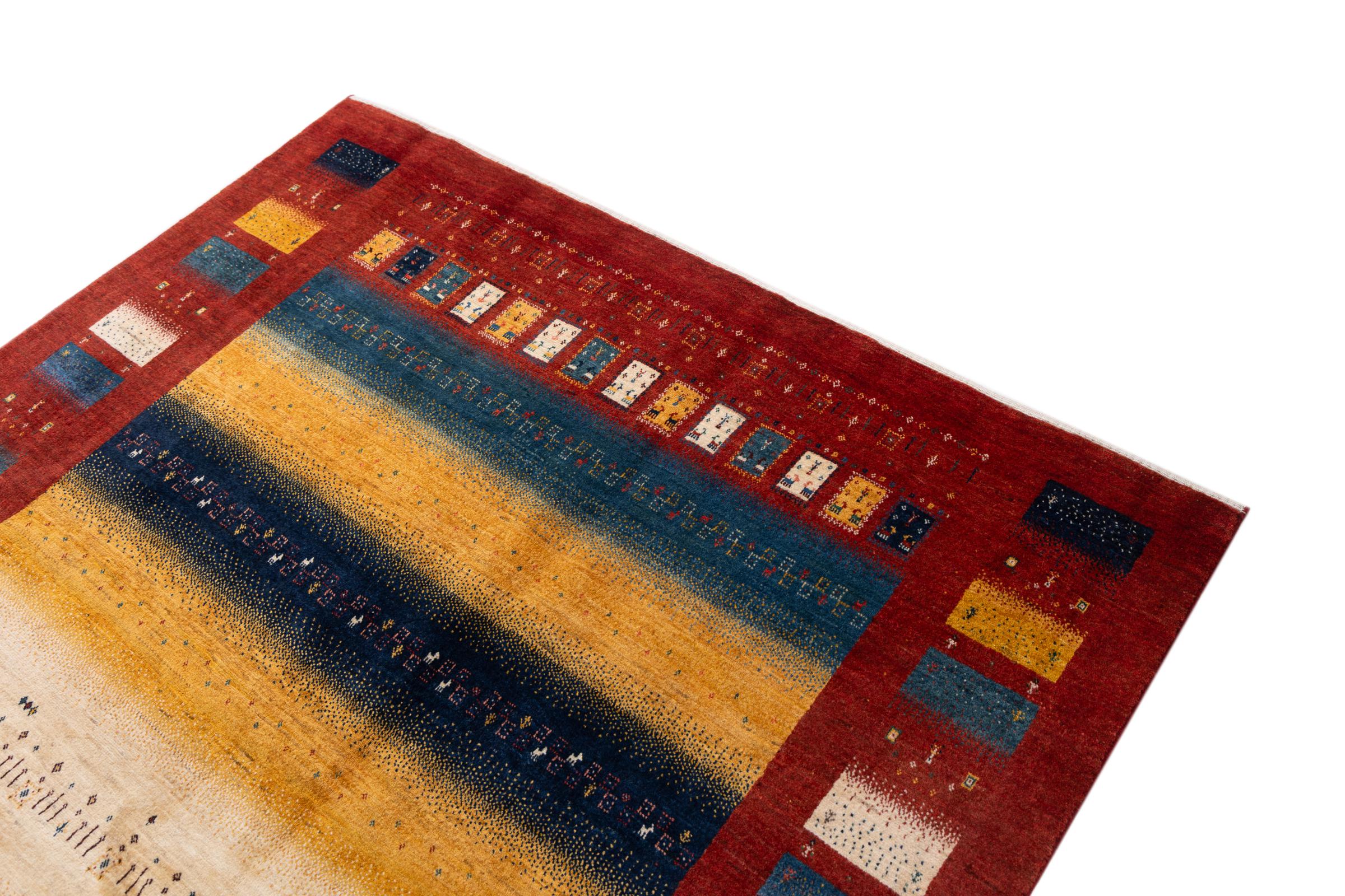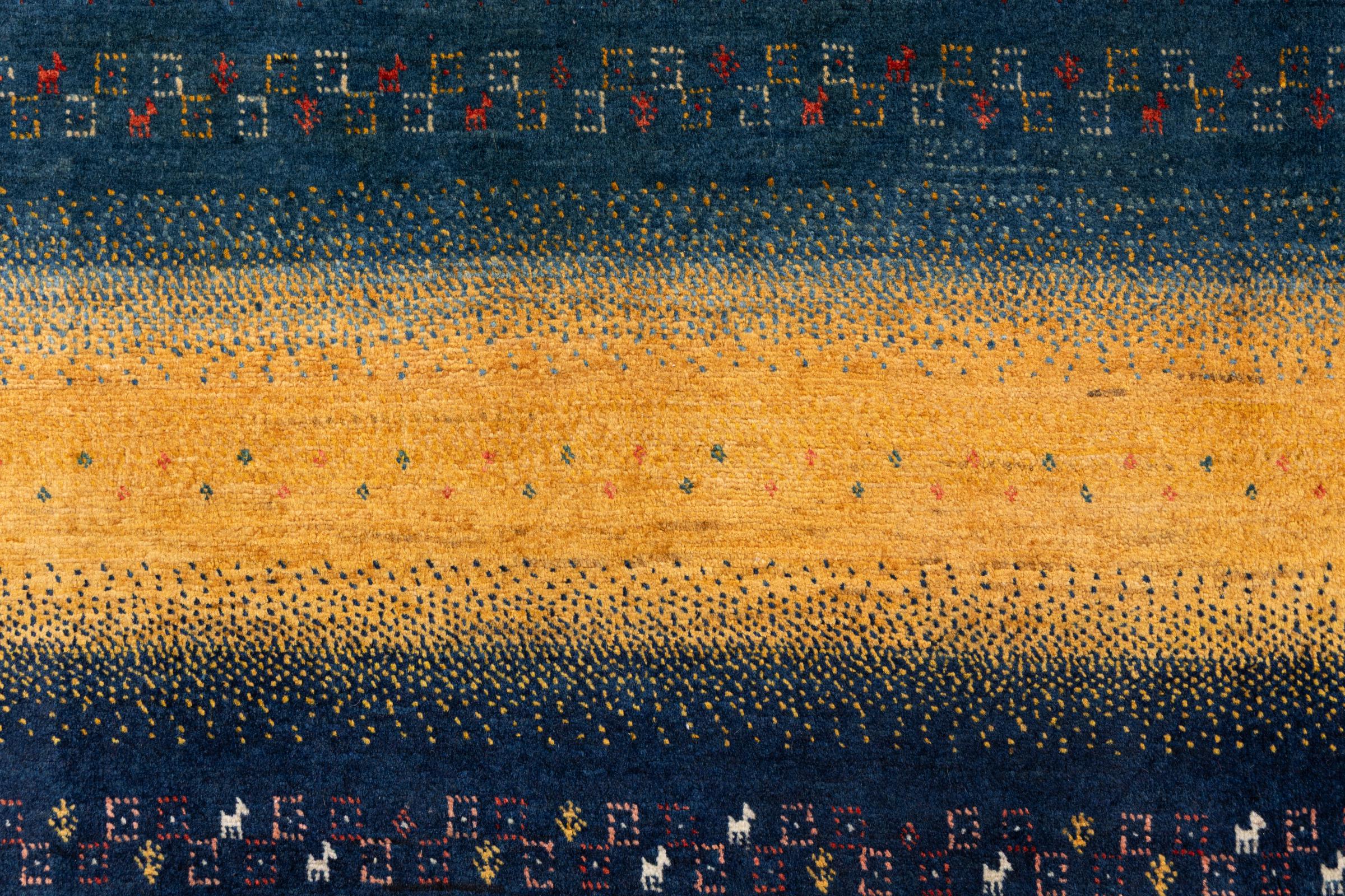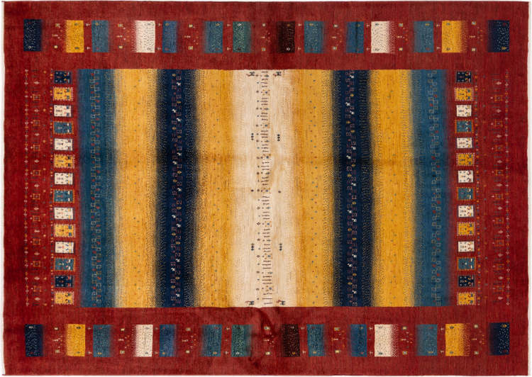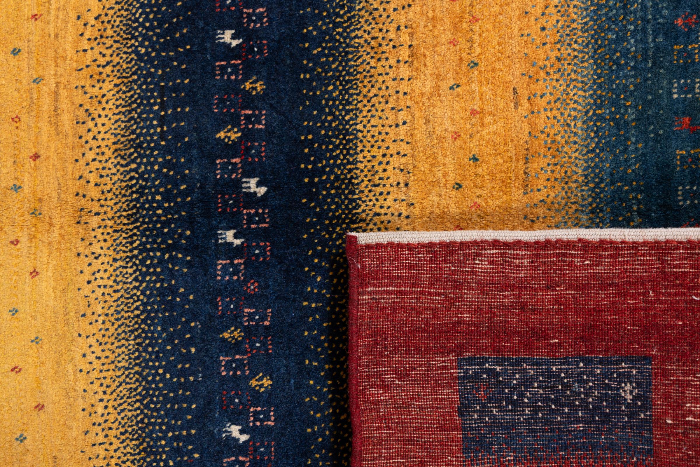 Αυτό το όμορφο χαλί είναι περσικό χαλί Gabbeh και είναι ένα από τα ποιοτικότερα χαλιά Gabbeh. Τα χαλιά δένονται από νομάδες ή ημινομάδες στο Ιράν σύμφωνα με την παραδοσιακή χειροτεχνία. Τα απλά μοτίβα και τα σχέδια είναι κυρίως εμπνευσμένα από το άμεσο περιβάλλον των νομάδων. Για παράδειγμα, καμήλες, δέντρα ή θάμνοι μπορούν να βρεθούν στα παραδοσιακά χαλιά. Τα περσικά χαλιά Gabbeh κατασκευάζονται από μαλλί από κοπάδια προβάτων που εκτρέφονται τοπικά. Ως εκ τούτου, το μαλλί ως επί το πλείστον εξακολουθεί να κλώνεται με το χέρι. Κάθε ένα από αυτά τα ανατολίτικα χαλιά ενσαρκώνει έναν μοναδικό χαρακτήρα αιώνων πολιτισμού.