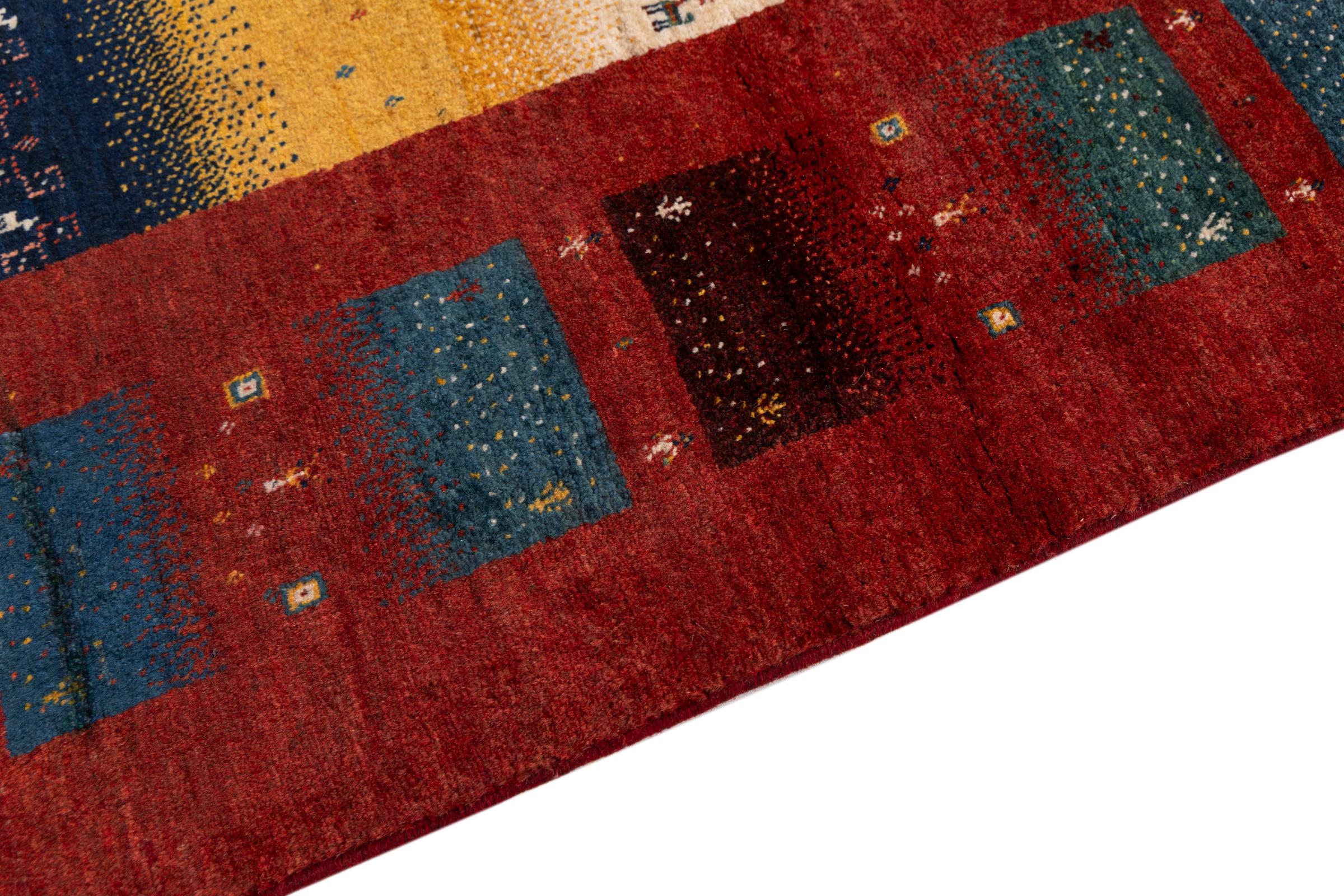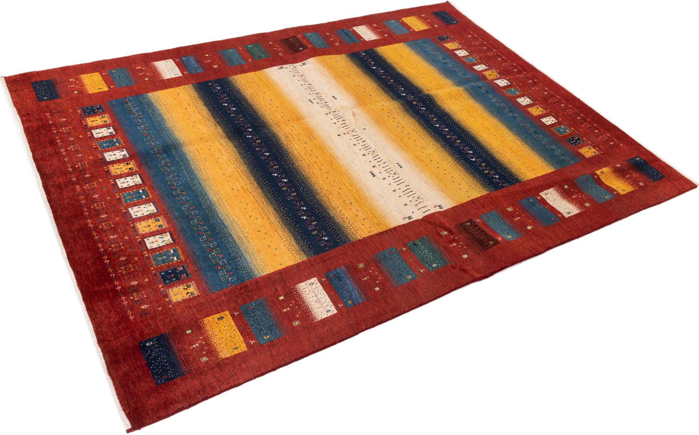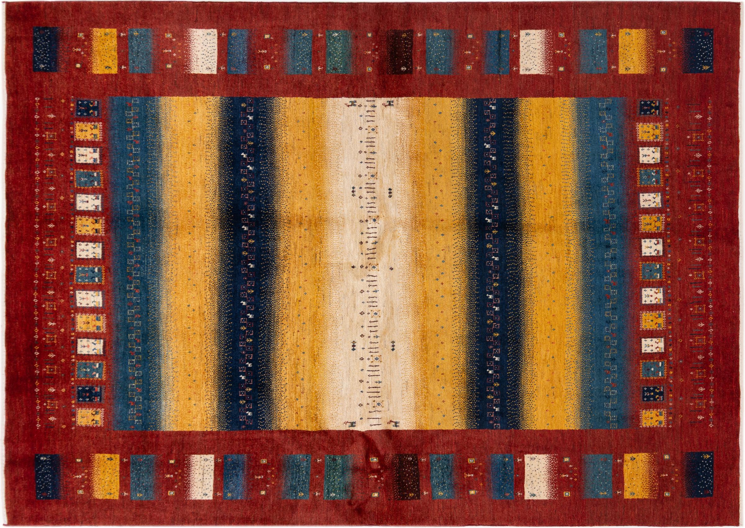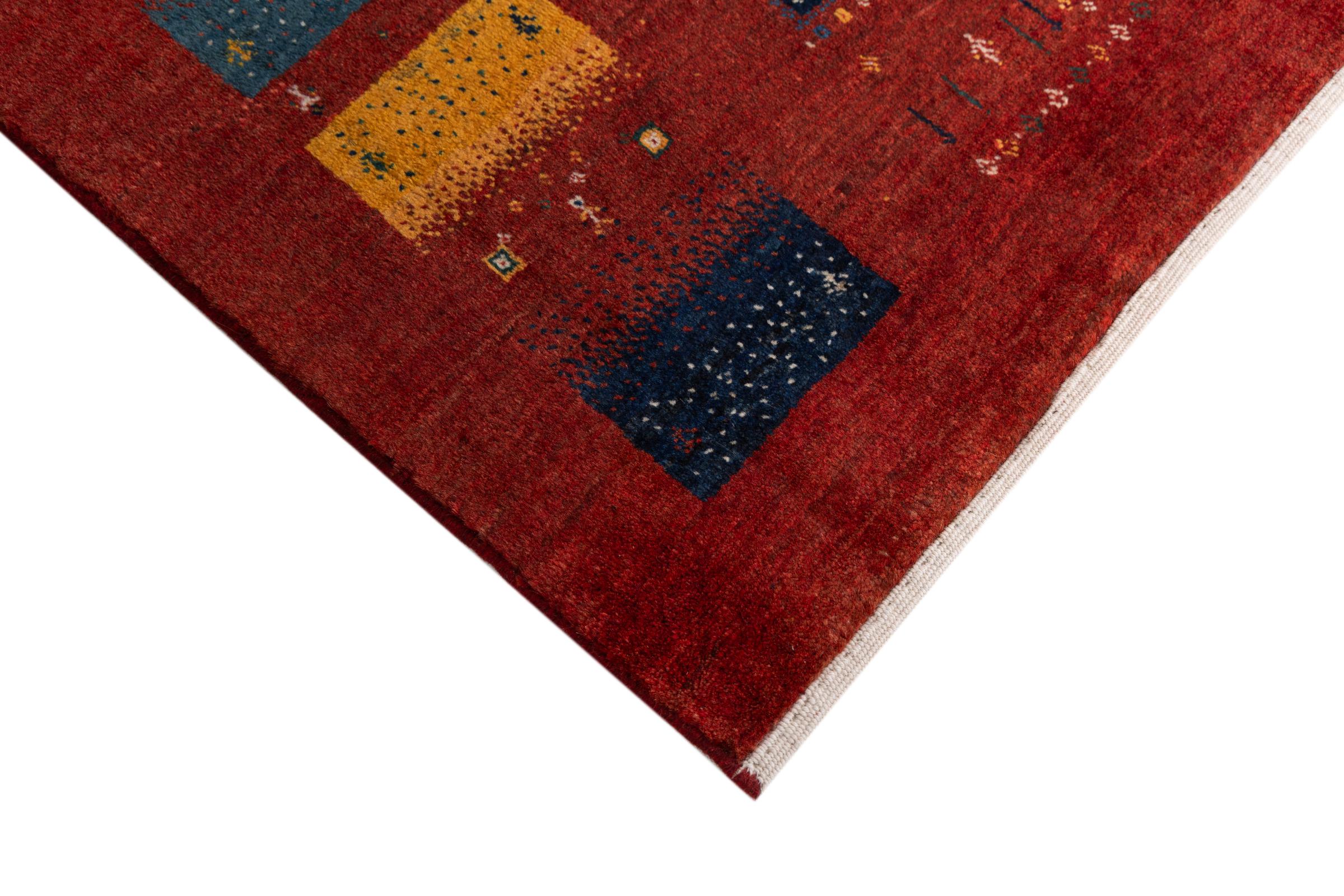Αυτό το όμορφο χαλί είναι περσικό χαλί Gabbeh και είναι ένα από τα ποιοτικότερα χαλιά Gabbeh. Τα χαλιά δένονται από νομάδες ή ημινομάδες στο Ιράν σύμφωνα με την παραδοσιακή χειροτεχνία. Τα απλά μοτίβα και τα σχέδια είναι κυρίως εμπνευσμένα από το άμεσο περιβάλλον των νομάδων. Για παράδειγμα, καμήλες, δέντρα ή θάμνοι μπορούν να βρεθούν στα παραδοσιακά χαλιά. Τα περσικά χαλιά Gabbeh κατασκευάζονται από μαλλί από κοπάδια προβάτων που εκτρέφονται τοπικά. Ως εκ τούτου, το μαλλί ως επί το πλείστον εξακολουθεί να κλώνεται με το χέρι. Κάθε ένα από αυτά τα ανατολίτικα χαλιά ενσαρκώνει έναν μοναδικό χαρακτήρα αιώνων πολιτισμού.