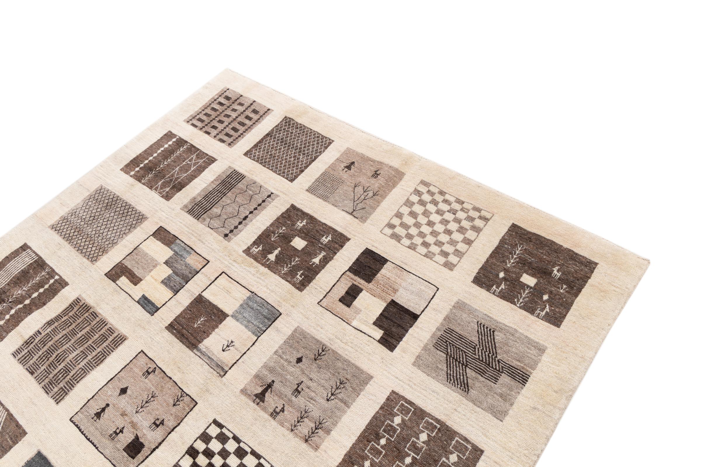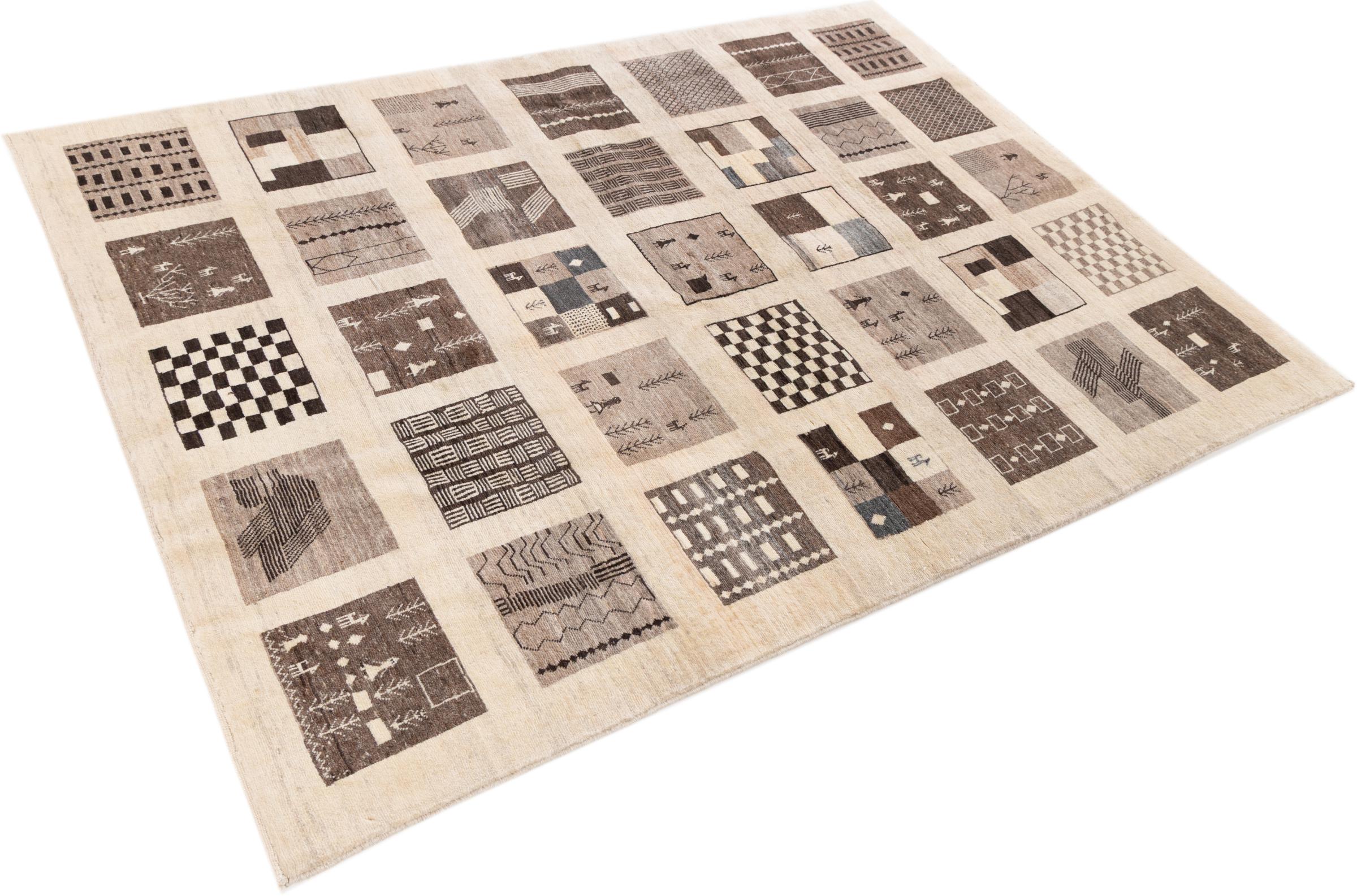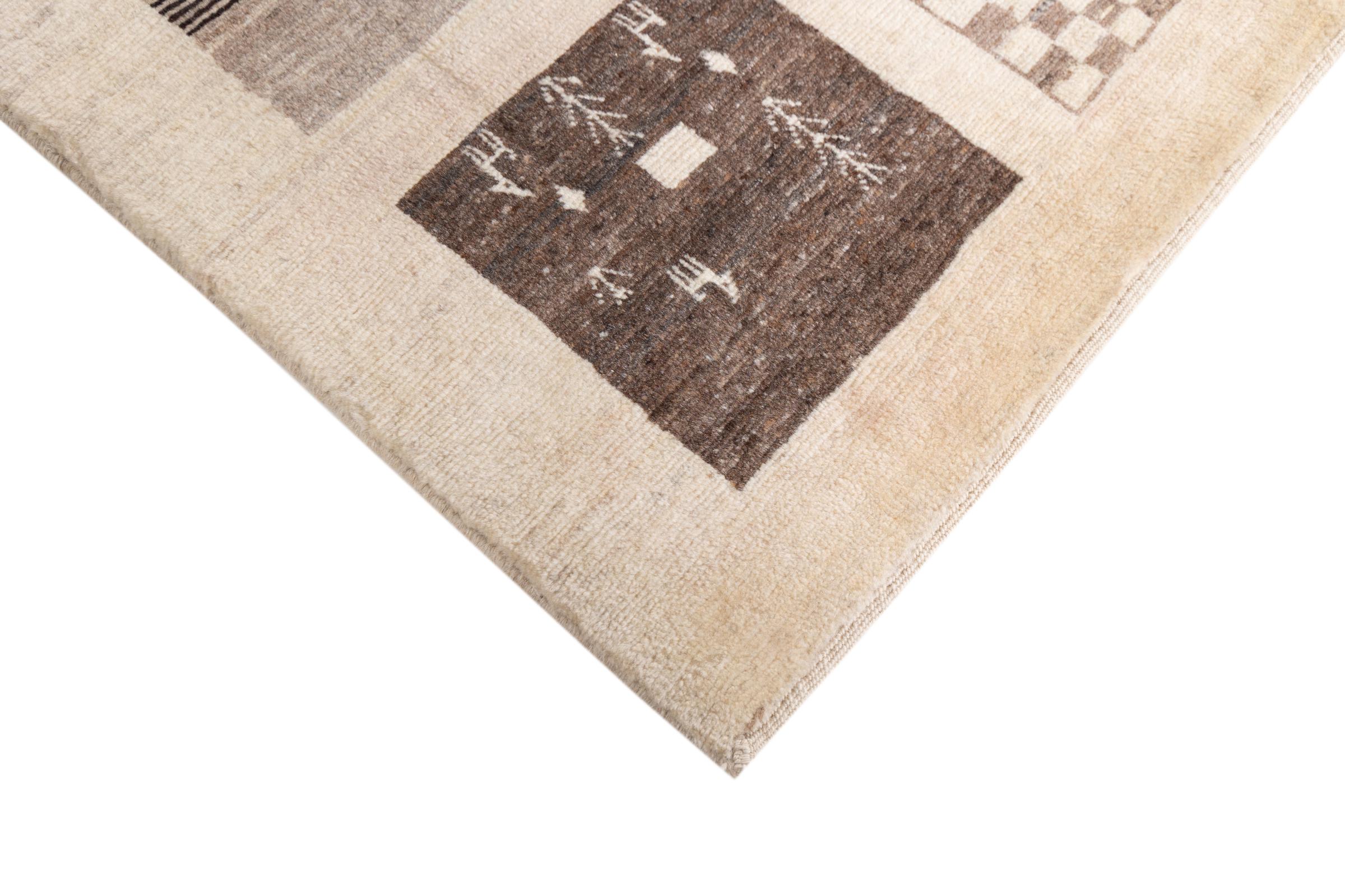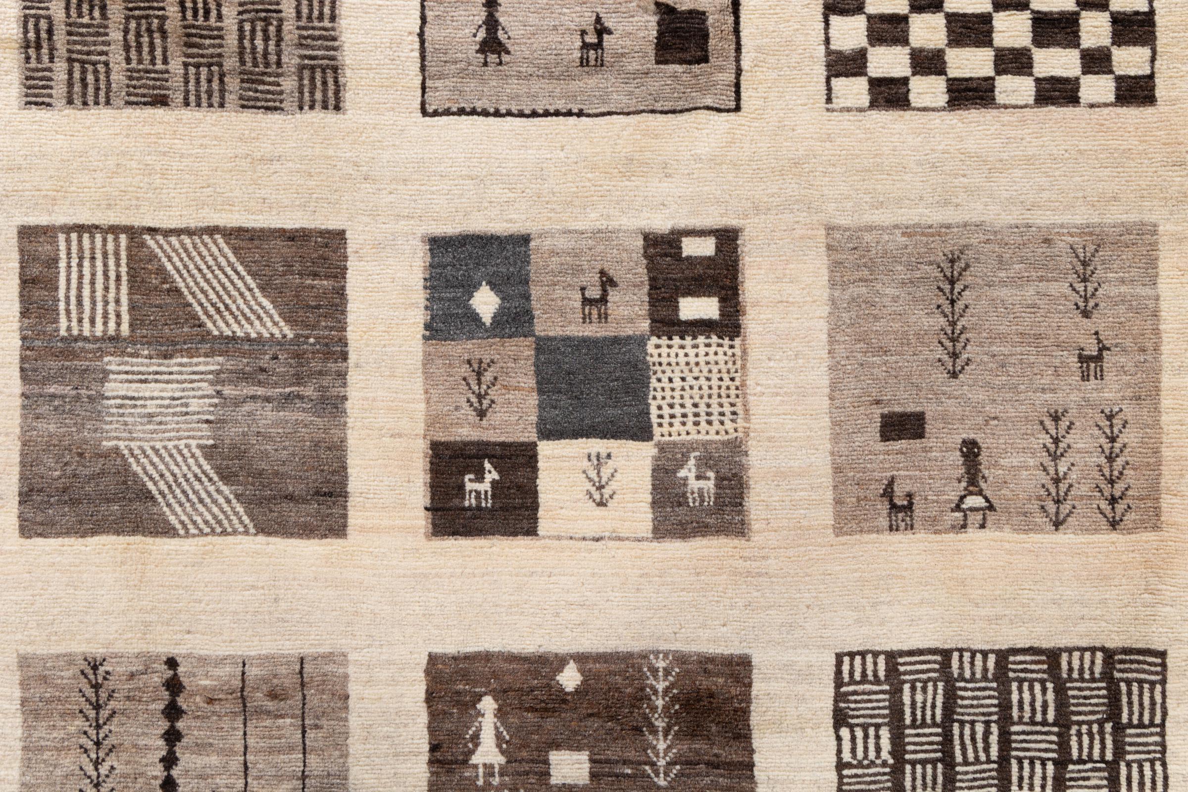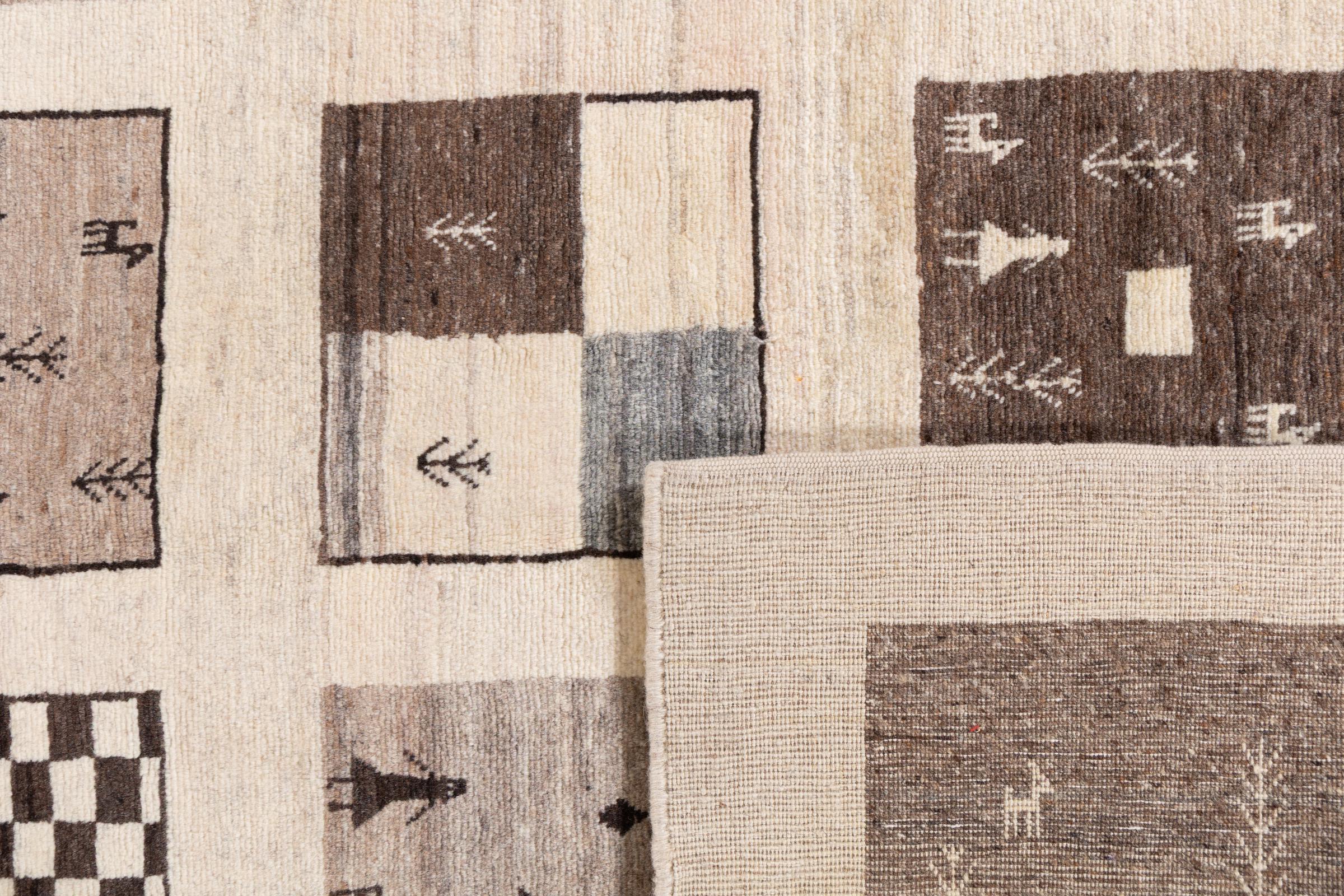 Αυτό το όμορφο χαλί είναι περσικό χαλί Gabbeh και είναι ένα από τα ποιοτικότερα χαλιά Gabbeh. Τα χαλιά δένονται από νομάδες ή ημινομάδες στο Ιράν σύμφωνα με την παραδοσιακή χειροτεχνία. Τα απλά μοτίβα και τα σχέδια είναι κυρίως εμπνευσμένα από το άμεσο περιβάλλον των νομάδων. Για παράδειγμα, καμήλες, δέντρα ή θάμνοι μπορούν να βρεθούν στα παραδοσιακά χαλιά. Τα περσικά χαλιά Gabbeh κατασκευάζονται από μαλλί από κοπάδια προβάτων που εκτρέφονται τοπικά. Ως εκ τούτου, το μαλλί ως επί το πλείστον εξακολουθεί να κλώνεται με το χέρι. Κάθε ένα από αυτά τα ανατολίτικα χαλιά ενσαρκώνει έναν μοναδικό χαρακτήρα αιώνων πολιτισμού.
