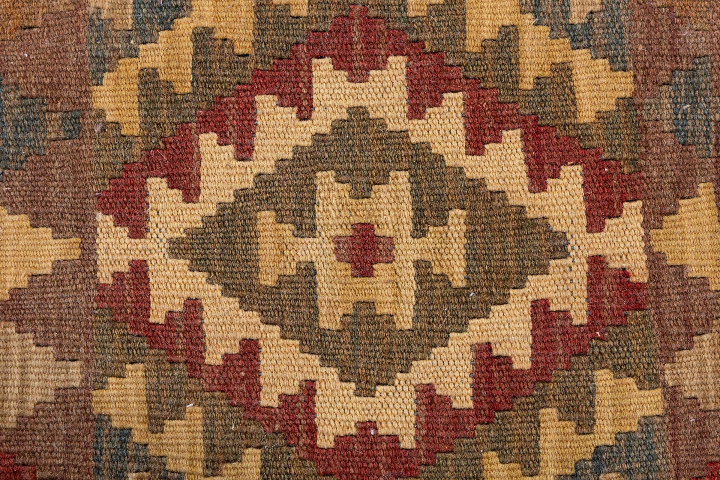 Αυτό το χαλί είναι χειροποίητο ως επίπεδη ύφανση σε αργαλειό. Τα επίπεδα ύφανση είναι χαλιά που δεν έχουν πέλος. Όπως υπόσχεται το όνομα, αυτά τα χαλιά είναι υφαντά και όχι δεμένα με κόμπους. Αυτό έχει ως αποτέλεσμα ένα επίπεδο χαλί με ανάγλυφη επιφάνεια. Τα flatweaves δεν είναι τόσο μαλακά και συνήθως πιο λεπτά από τα χαλιά με κόμπους. Ταυτόχρονα, είναι πολύ λιγότερο πολύπλοκα στην κατασκευή τους και μπορούν συνήθως να τοποθετηθούν και από τις δύο πλευρές (εμπρός και πίσω). Τα σχέδια τους είναι συνήθως γεωμετρικά, κάτι που οφείλεται στην ύφανση.
