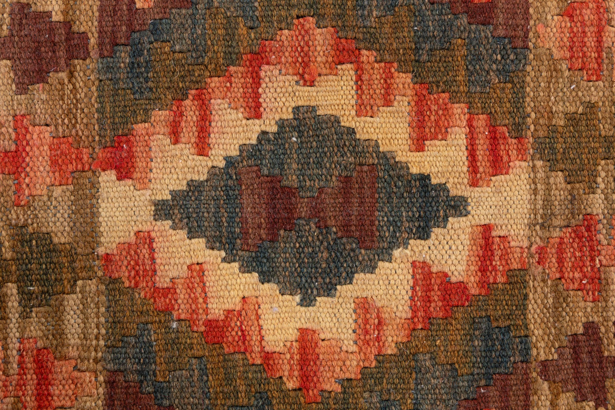 Αυτό το χαλί είναι χειροποίητο ως επίπεδη ύφανση σε αργαλειό. Τα επίπεδα ύφανση είναι χαλιά που δεν έχουν πέλος. Όπως υπόσχεται το όνομα, αυτά τα χαλιά είναι υφαντά και όχι δεμένα με κόμπους. Αυτό έχει ως αποτέλεσμα ένα επίπεδο χαλί με ανάγλυφη επιφάνεια. Τα flatweaves δεν είναι τόσο μαλακά και συνήθως πιο λεπτά από τα χαλιά με κόμπους. Ταυτόχρονα, είναι πολύ λιγότερο πολύπλοκα στην κατασκευή τους και μπορούν συνήθως να τοποθετηθούν και από τις δύο πλευρές (εμπρός και πίσω). Τα σχέδια τους είναι συνήθως γεωμετρικά, κάτι που οφείλεται στην ύφανση.