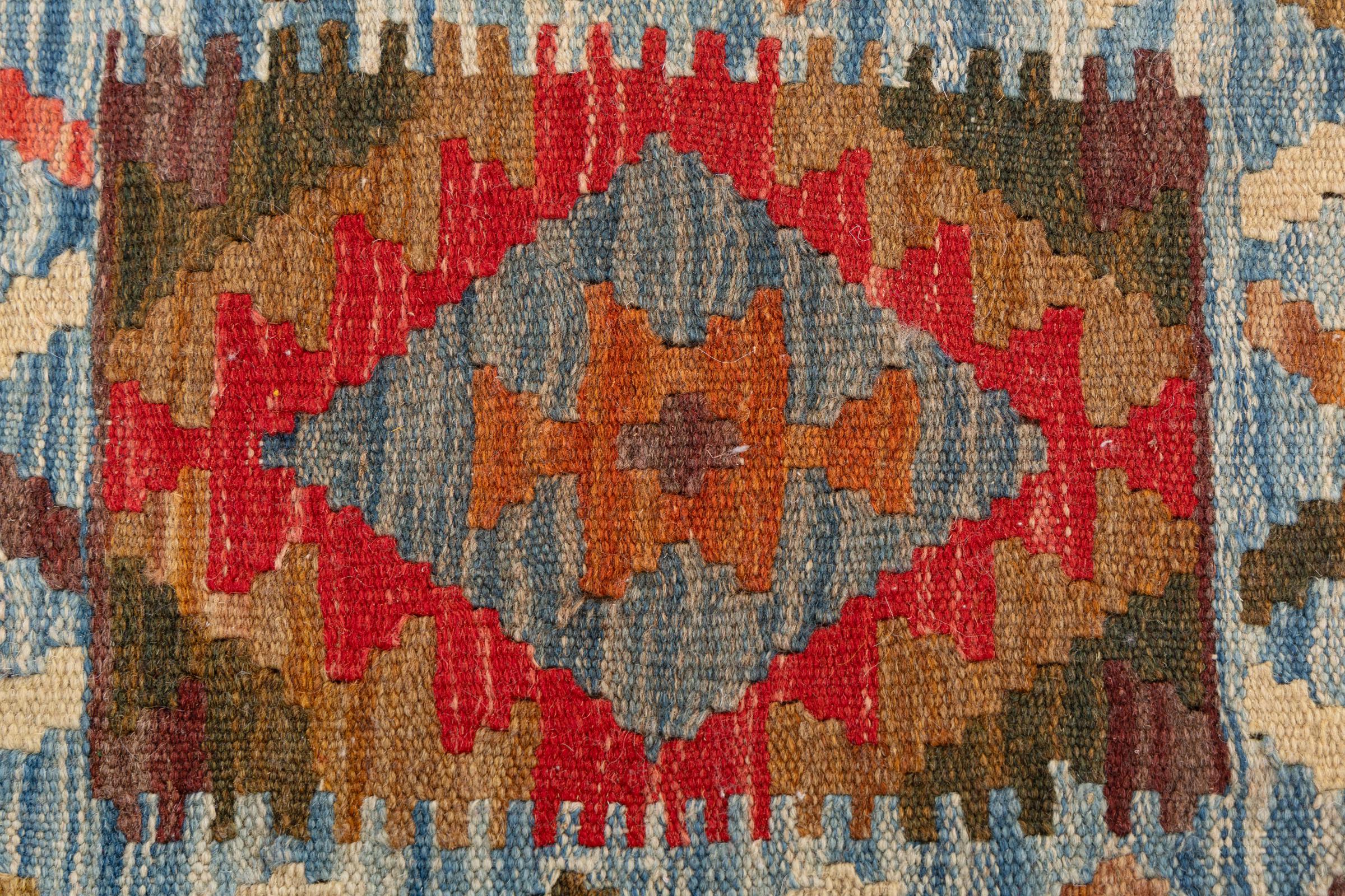 Αυτό το χαλί είναι χειροποίητο ως επίπεδη ύφανση σε αργαλειό. Τα επίπεδα ύφανση είναι χαλιά που δεν έχουν πέλος. Όπως υπόσχεται το όνομα, αυτά τα χαλιά είναι υφαντά και όχι δεμένα με κόμπους. Αυτό έχει ως αποτέλεσμα ένα επίπεδο χαλί με ανάγλυφη επιφάνεια. Τα flatweaves δεν είναι τόσο μαλακά και συνήθως πιο λεπτά από τα χαλιά με κόμπους. Ταυτόχρονα, είναι πολύ λιγότερο πολύπλοκα στην κατασκευή τους και μπορούν συνήθως να τοποθετηθούν και από τις δύο πλευρές (εμπρός και πίσω). Τα σχέδια τους είναι συνήθως γεωμετρικά, κάτι που οφείλεται στην ύφανση.