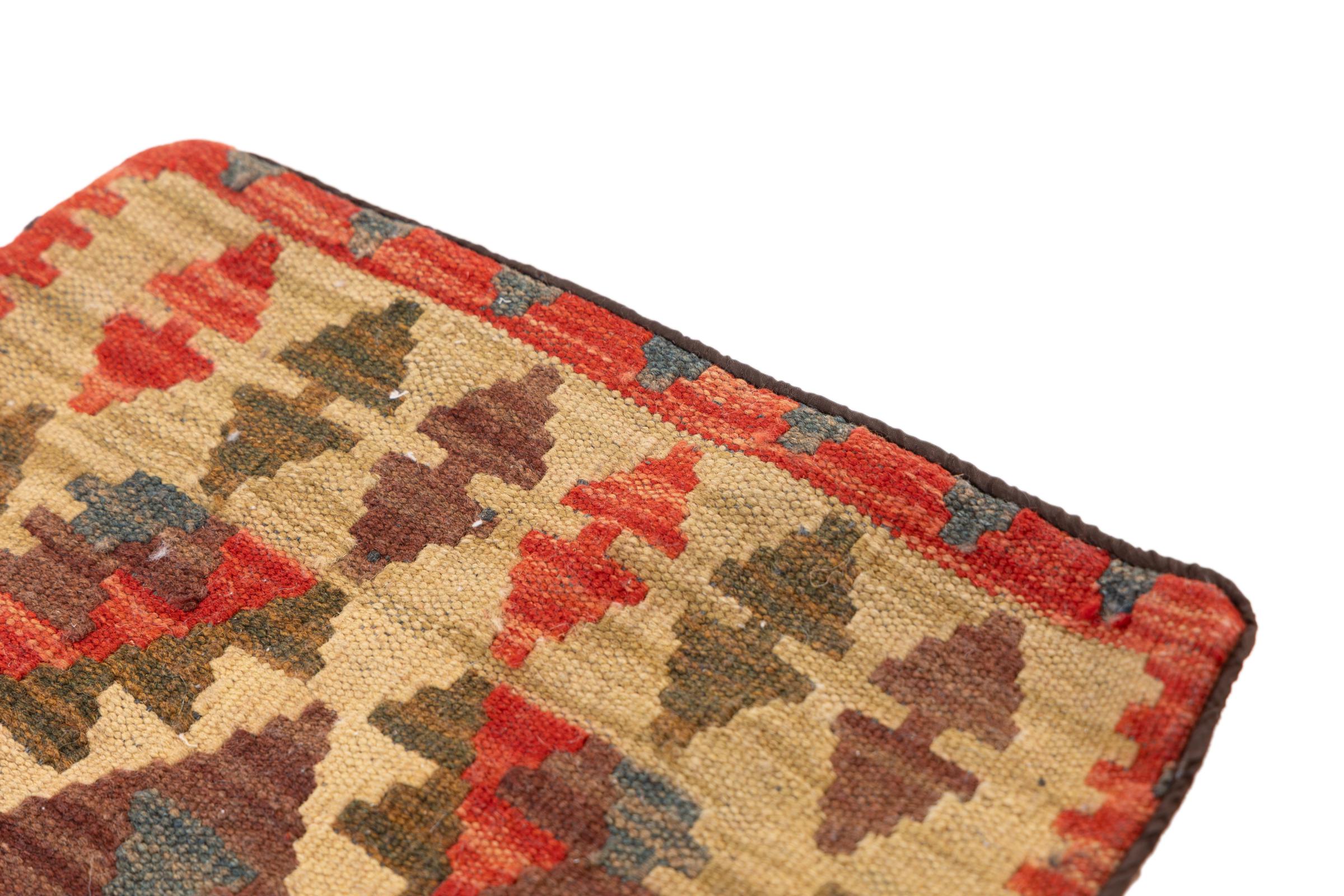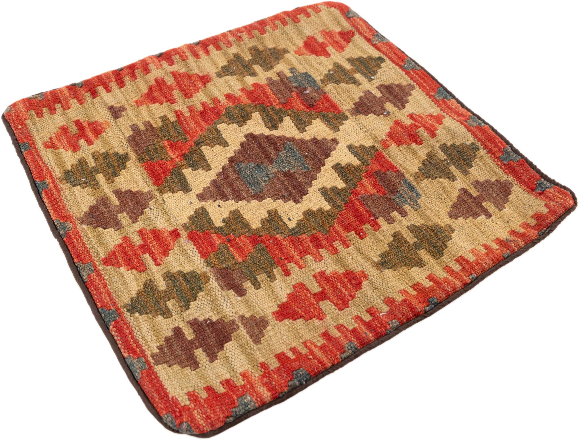 Νούμερο χαλιού: 17039002215 Μέγεθος: 45x42 cm Πάχος: περίπου 5 mm Επεξεργασία: Χειροποίητη ύφανση σορός: Μαλλί στημόνι: Βαμβάκι Καταγωγή: Αφγανιστάν Ηλικία: καινούργιο Βάρος: περίπου 1 kg Γνωστός και ως Kissen, Kelim Kissen Στο απόθεμα: Mοναδικός - Μόνο 1 σε απόθεμα
