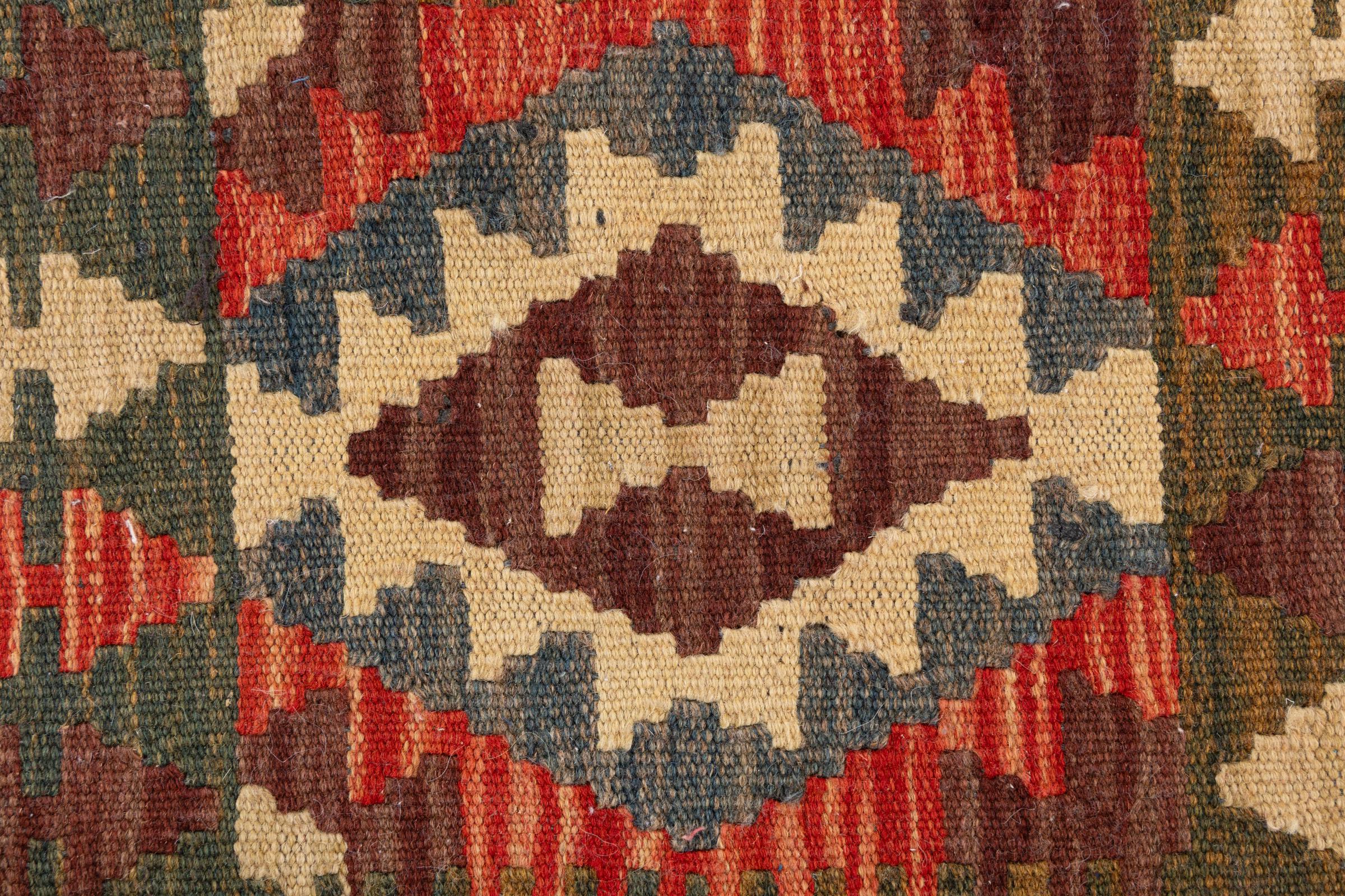 Αυτό το χαλί είναι χειροποίητο ως επίπεδη ύφανση σε αργαλειό. Τα επίπεδα ύφανση είναι χαλιά που δεν έχουν πέλος. Όπως υπόσχεται το όνομα, αυτά τα χαλιά είναι υφαντά και όχι δεμένα με κόμπους. Αυτό έχει ως αποτέλεσμα ένα επίπεδο χαλί με ανάγλυφη επιφάνεια. Τα flatweaves δεν είναι τόσο μαλακά και συνήθως πιο λεπτά από τα χαλιά με κόμπους. Ταυτόχρονα, είναι πολύ λιγότερο πολύπλοκα στην κατασκευή τους και μπορούν συνήθως να τοποθετηθούν και από τις δύο πλευρές (εμπρός και πίσω). Τα σχέδια τους είναι συνήθως γεωμετρικά, κάτι που οφείλεται στην ύφανση.