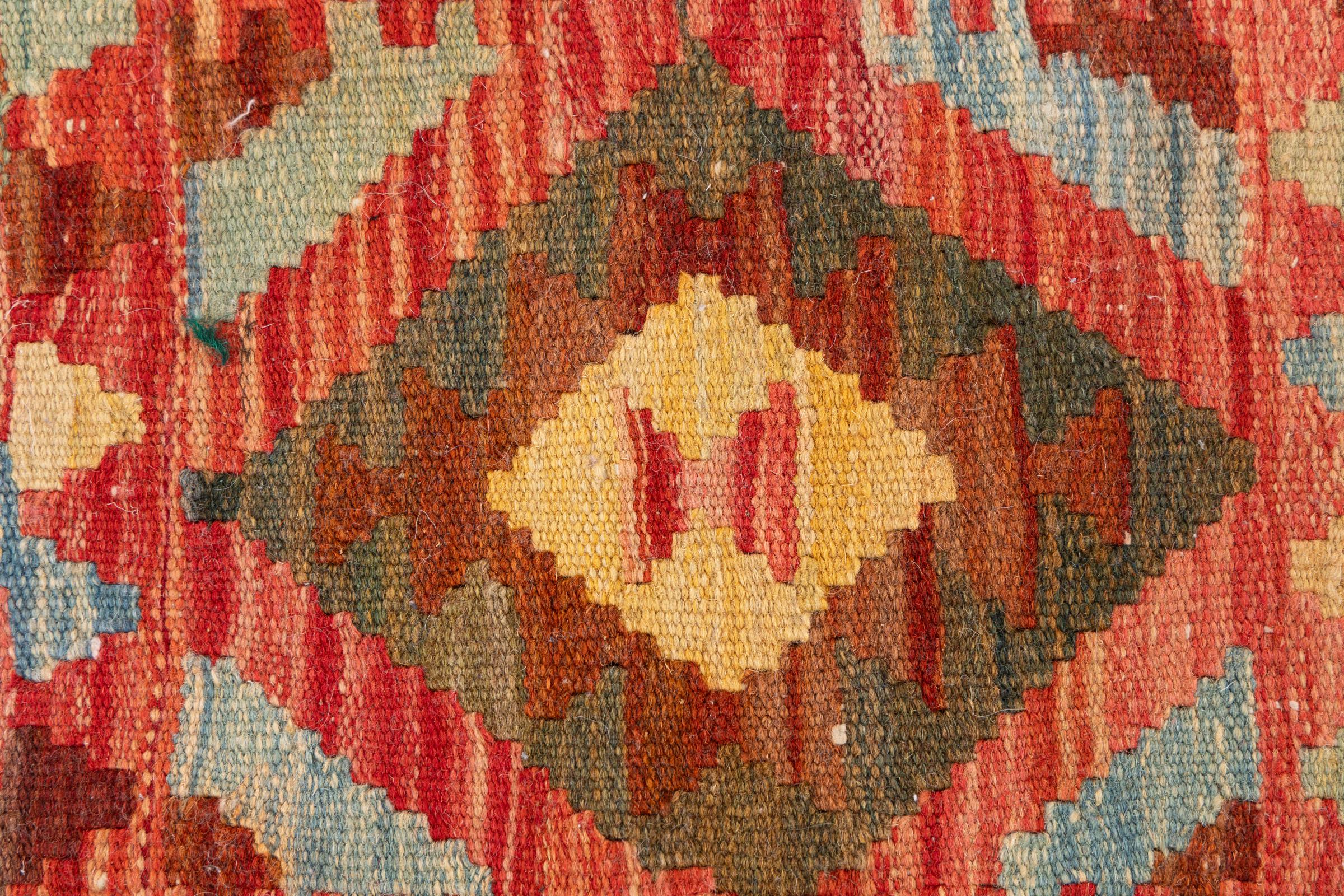 Αυτό το χαλί είναι χειροποίητο ως επίπεδη ύφανση σε αργαλειό. Τα επίπεδα ύφανση είναι χαλιά που δεν έχουν πέλος. Όπως υπόσχεται το όνομα, αυτά τα χαλιά είναι υφαντά και όχι δεμένα με κόμπους. Αυτό έχει ως αποτέλεσμα ένα επίπεδο χαλί με ανάγλυφη επιφάνεια. Τα flatweaves δεν είναι τόσο μαλακά και συνήθως πιο λεπτά από τα χαλιά με κόμπους. Ταυτόχρονα, είναι πολύ λιγότερο πολύπλοκα στην κατασκευή τους και μπορούν συνήθως να τοποθετηθούν και από τις δύο πλευρές (εμπρός και πίσω). Τα σχέδια τους είναι συνήθως γεωμετρικά, κάτι που οφείλεται στην ύφανση.