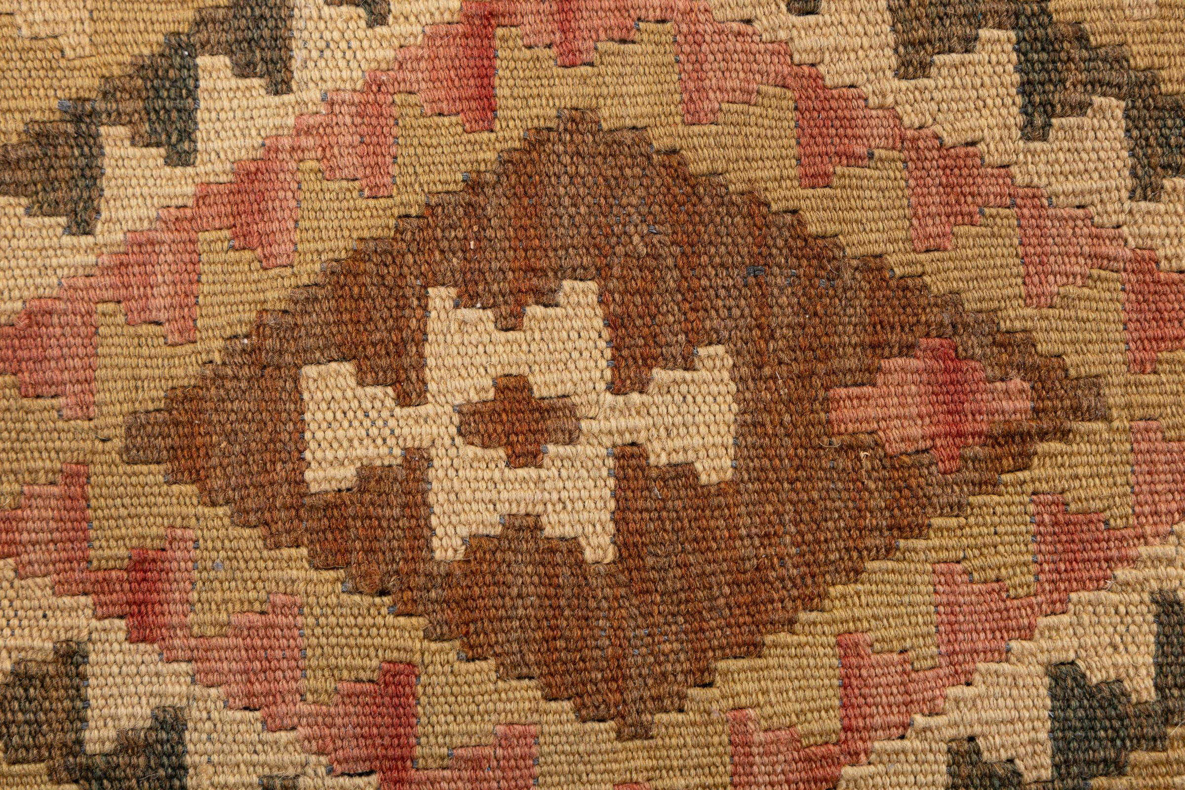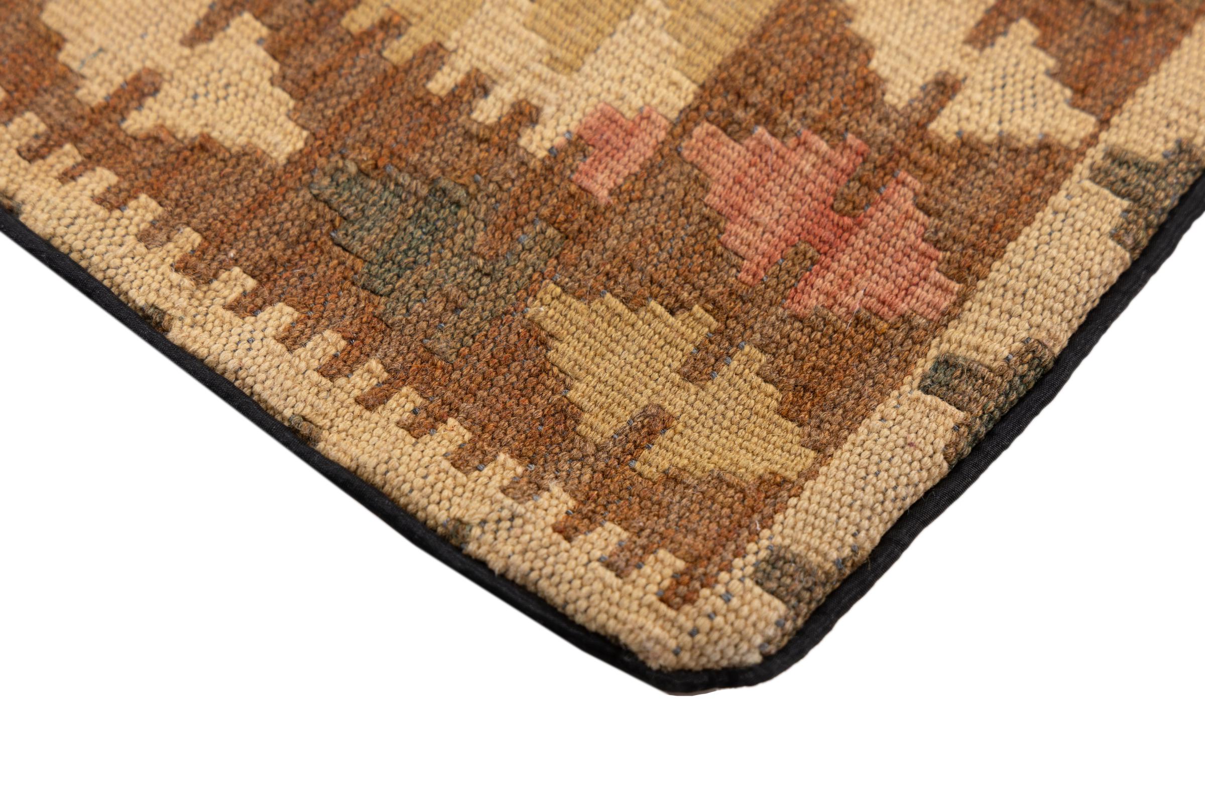 Αυτό το χαλί είναι χειροποίητο ως επίπεδη ύφανση σε αργαλειό. Τα επίπεδα ύφανση είναι χαλιά που δεν έχουν πέλος. Όπως υπόσχεται το όνομα, αυτά τα χαλιά είναι υφαντά και όχι δεμένα με κόμπους. Αυτό έχει ως αποτέλεσμα ένα επίπεδο χαλί με ανάγλυφη επιφάνεια. Τα flatweaves δεν είναι τόσο μαλακά και συνήθως πιο λεπτά από τα χαλιά με κόμπους. Ταυτόχρονα, είναι πολύ λιγότερο πολύπλοκα στην κατασκευή τους και μπορούν συνήθως να τοποθετηθούν και από τις δύο πλευρές (εμπρός και πίσω). Τα σχέδια τους είναι συνήθως γεωμετρικά, κάτι που οφείλεται στην ύφανση.