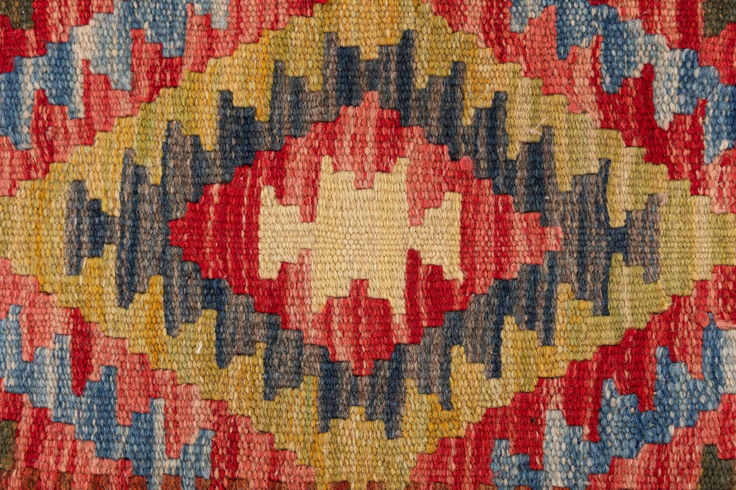 Αυτό το χαλί είναι χειροποίητο ως επίπεδη ύφανση σε αργαλειό. Τα επίπεδα ύφανση είναι χαλιά που δεν έχουν πέλος. Όπως υπόσχεται το όνομα, αυτά τα χαλιά είναι υφαντά και όχι δεμένα με κόμπους. Αυτό έχει ως αποτέλεσμα ένα επίπεδο χαλί με ανάγλυφη επιφάνεια. Τα flatweaves δεν είναι τόσο μαλακά και συνήθως πιο λεπτά από τα χαλιά με κόμπους. Ταυτόχρονα, είναι πολύ λιγότερο πολύπλοκα στην κατασκευή τους και μπορούν συνήθως να τοποθετηθούν και από τις δύο πλευρές (εμπρός και πίσω). Τα σχέδια τους είναι συνήθως γεωμετρικά, κάτι που οφείλεται στην ύφανση.