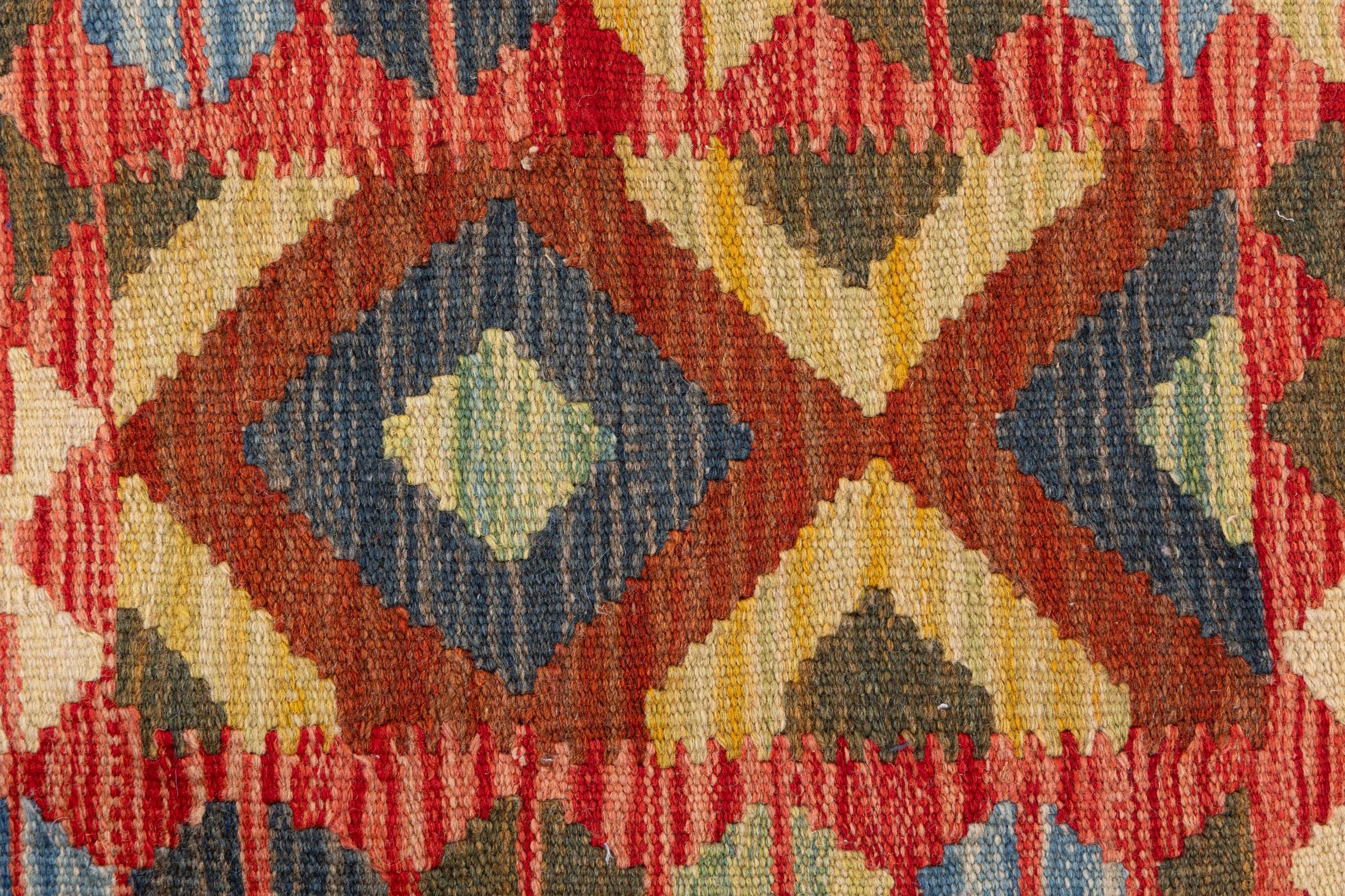 Αυτό το χαλί είναι χειροποίητο ως επίπεδη ύφανση σε αργαλειό. Τα επίπεδα ύφανση είναι χαλιά που δεν έχουν πέλος. Όπως υπόσχεται το όνομα, αυτά τα χαλιά είναι υφαντά και όχι δεμένα με κόμπους. Αυτό έχει ως αποτέλεσμα ένα επίπεδο χαλί με ανάγλυφη επιφάνεια. Τα flatweaves δεν είναι τόσο μαλακά και συνήθως πιο λεπτά από τα χαλιά με κόμπους. Ταυτόχρονα, είναι πολύ λιγότερο πολύπλοκα στην κατασκευή τους και μπορούν συνήθως να τοποθετηθούν και από τις δύο πλευρές (εμπρός και πίσω). Τα σχέδια τους είναι συνήθως γεωμετρικά, κάτι που οφείλεται στην ύφανση.