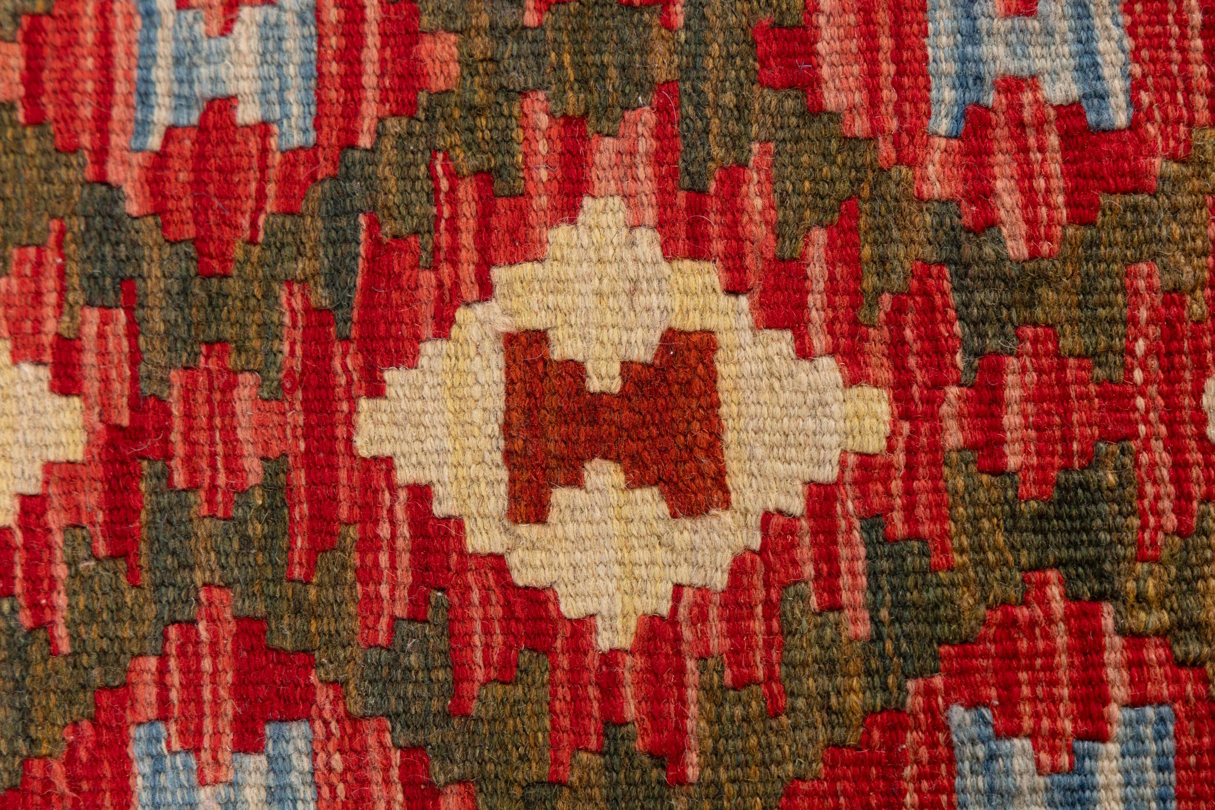 Αυτό το χαλί είναι χειροποίητο ως επίπεδη ύφανση σε αργαλειό. Τα επίπεδα ύφανση είναι χαλιά που δεν έχουν πέλος. Όπως υπόσχεται το όνομα, αυτά τα χαλιά είναι υφαντά και όχι δεμένα με κόμπους. Αυτό έχει ως αποτέλεσμα ένα επίπεδο χαλί με ανάγλυφη επιφάνεια. Τα flatweaves δεν είναι τόσο μαλακά και συνήθως πιο λεπτά από τα χαλιά με κόμπους. Ταυτόχρονα, είναι πολύ λιγότερο πολύπλοκα στην κατασκευή τους και μπορούν συνήθως να τοποθετηθούν και από τις δύο πλευρές (εμπρός και πίσω). Τα σχέδια τους είναι συνήθως γεωμετρικά, κάτι που οφείλεται στην ύφανση.