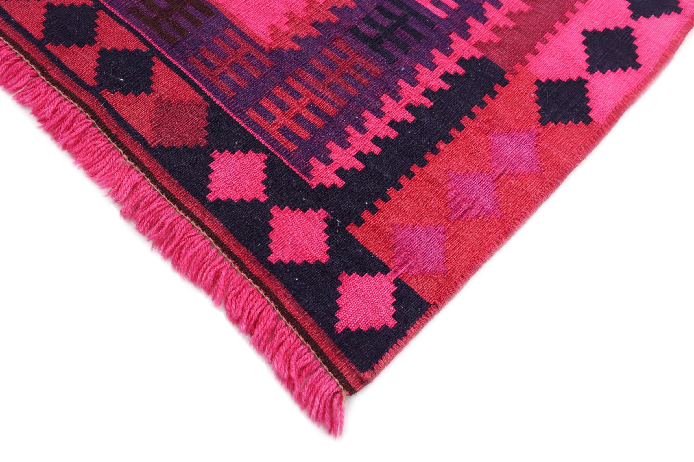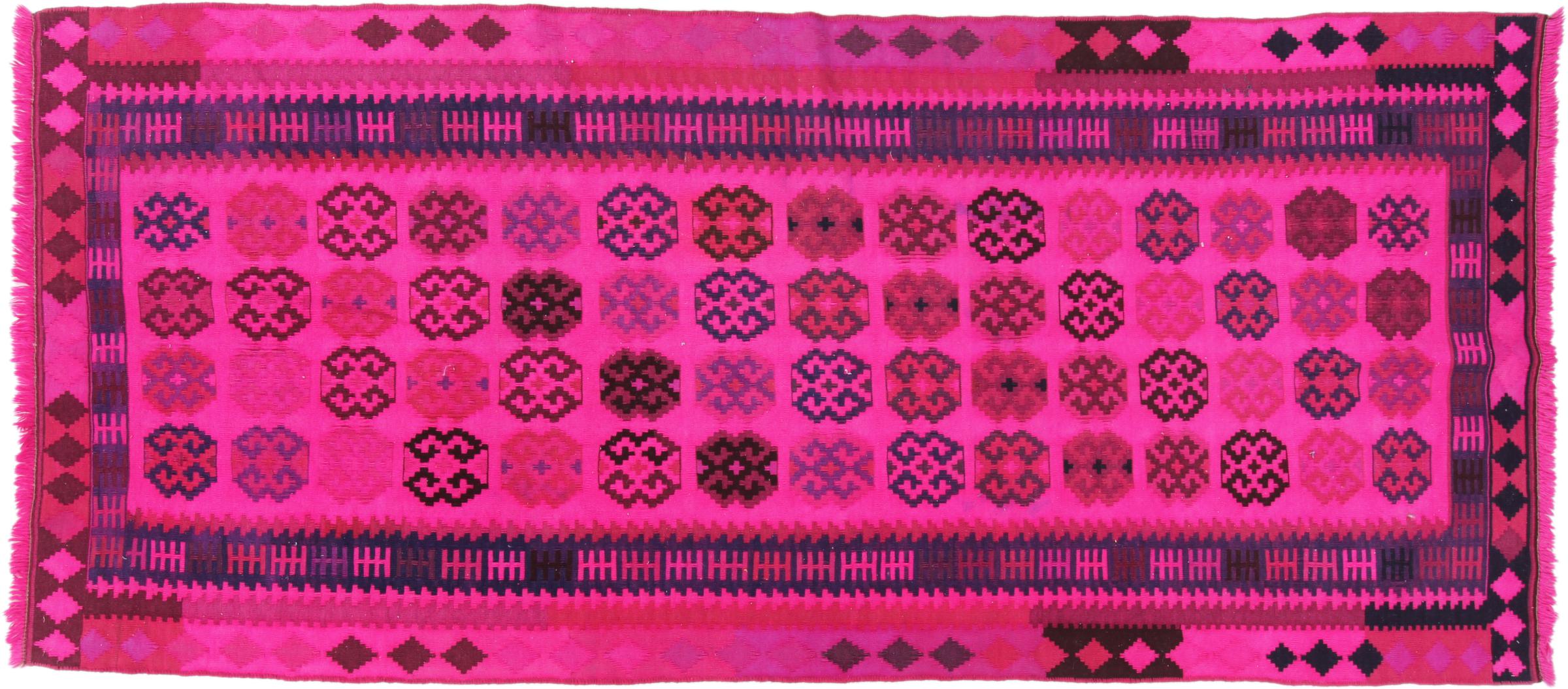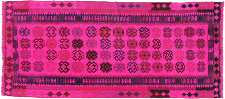 Αυτό το χαλί είναι χειροποίητο ως επίπεδη ύφανση σε αργαλειό. Τα επίπεδα ύφανση είναι χαλιά που δεν έχουν πέλος. Όπως υπόσχεται το όνομα, αυτά τα χαλιά είναι υφαντά και όχι δεμένα με κόμπους. Αυτό έχει ως αποτέλεσμα ένα επίπεδο χαλί με ανάγλυφη επιφάνεια. Τα flatweaves δεν είναι τόσο μαλακά και συνήθως πιο λεπτά από τα χαλιά με κόμπους. Ταυτόχρονα, είναι πολύ λιγότερο πολύπλοκα στην κατασκευή τους και μπορούν συνήθως να τοποθετηθούν και από τις δύο πλευρές (εμπρός και πίσω). Τα σχέδια τους είναι συνήθως γεωμετρικά, κάτι που οφείλεται στην ύφανση.