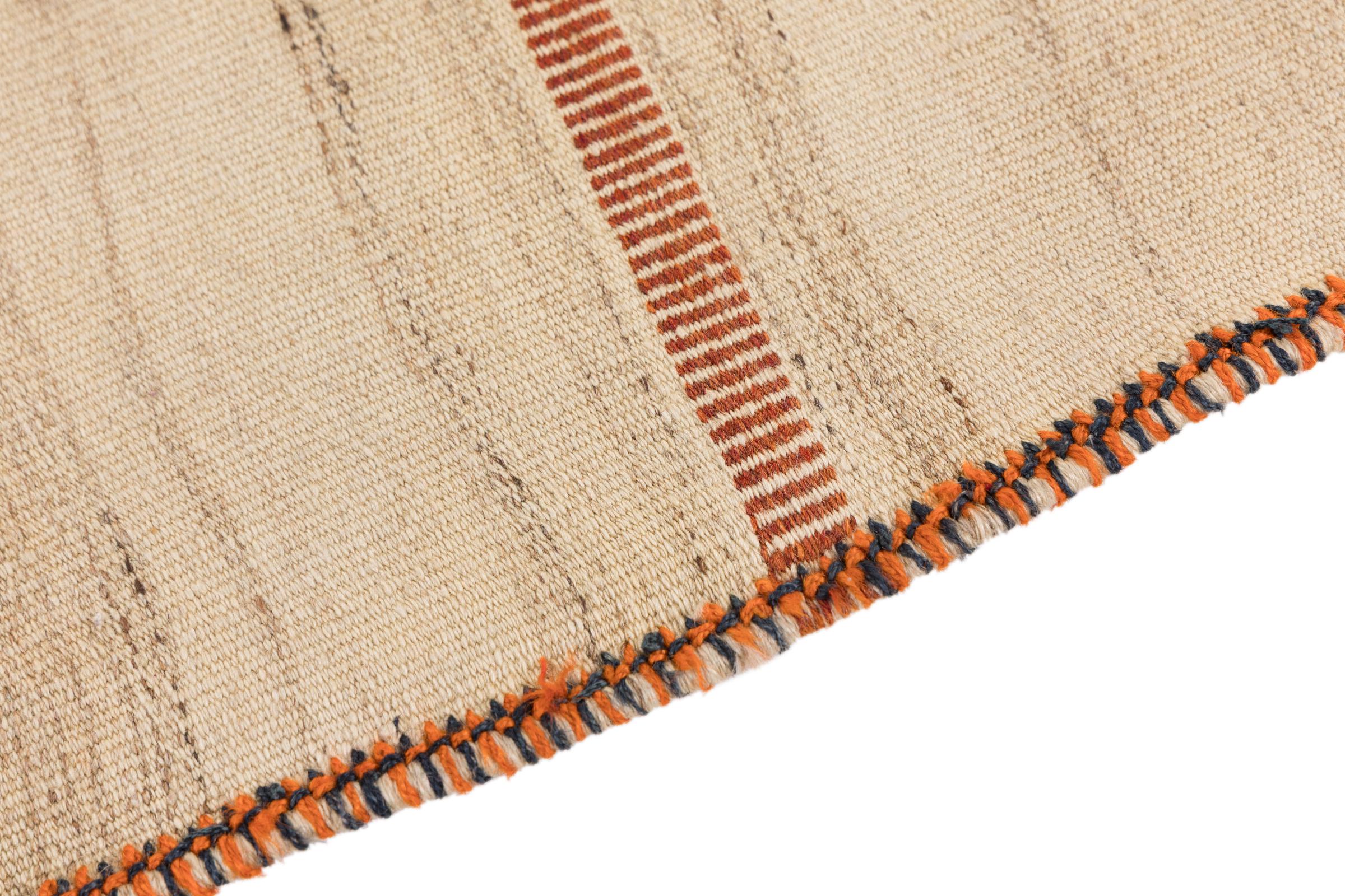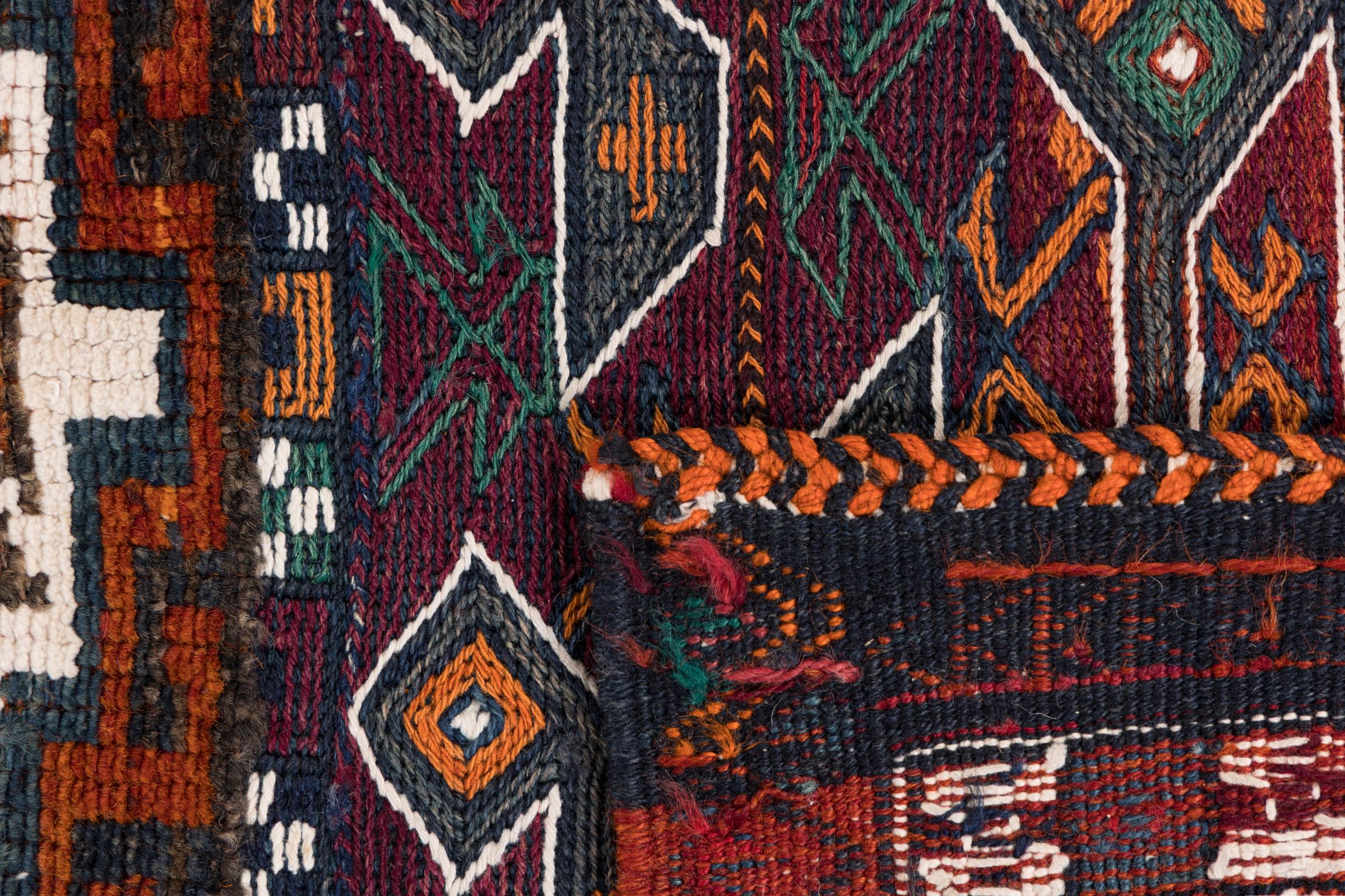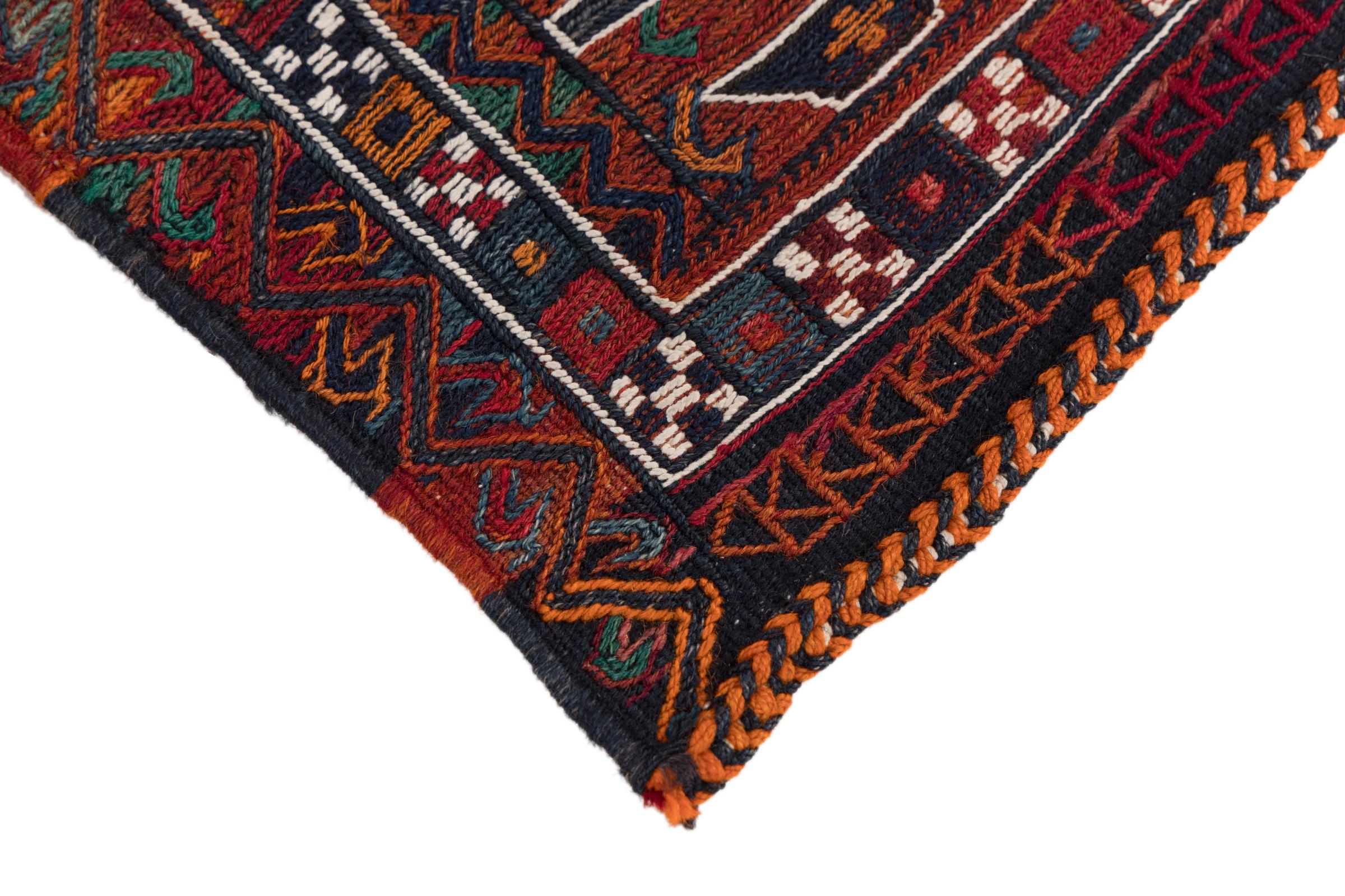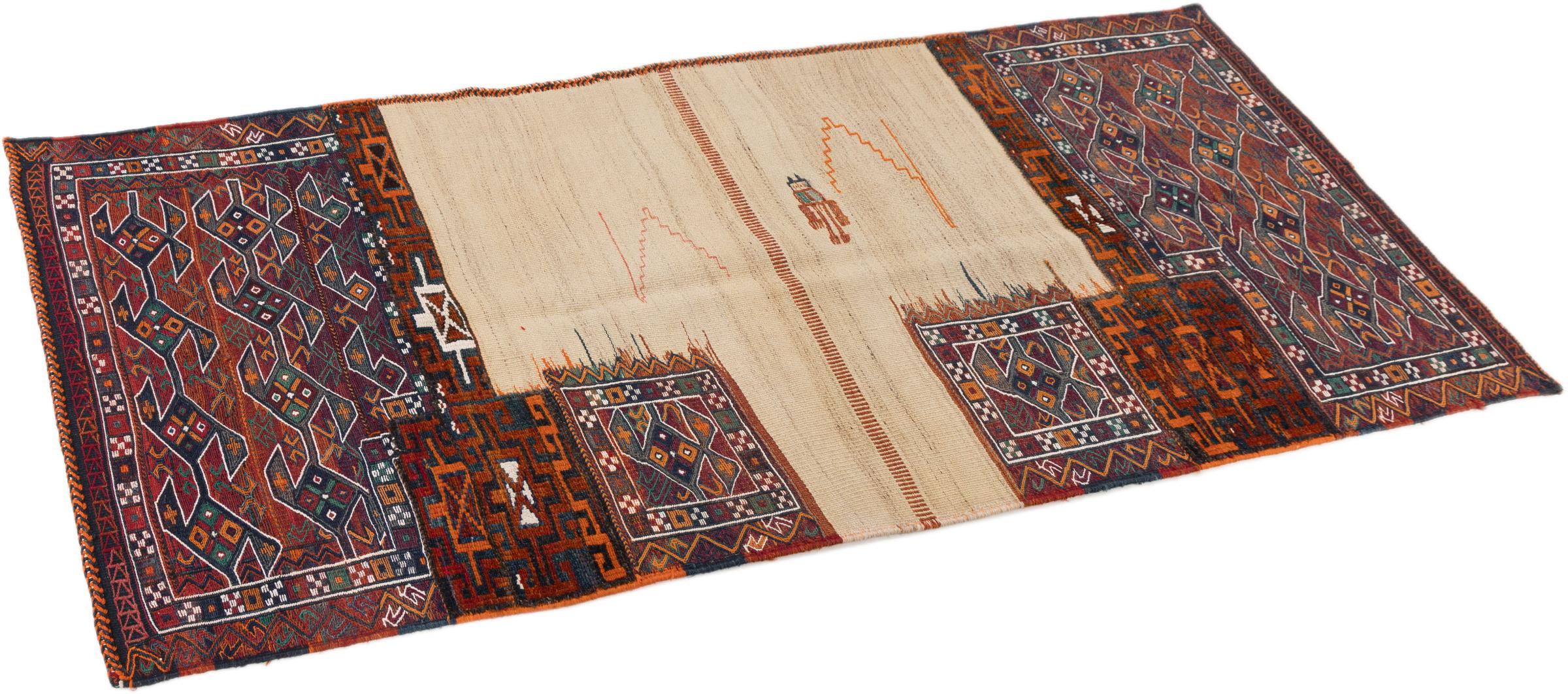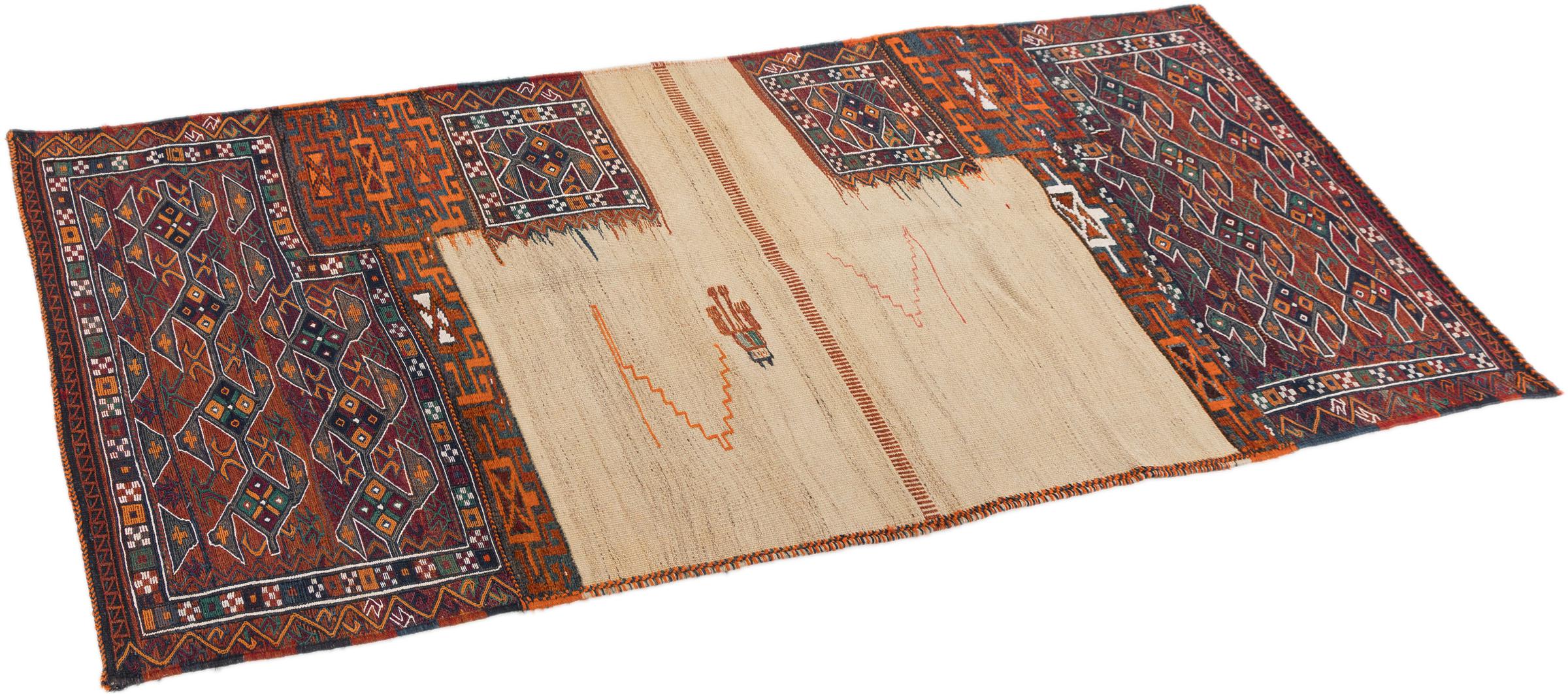 Αυτό το χαλί είναι χειροποίητο ως επίπεδη ύφανση σε αργαλειό. Τα επίπεδα ύφανση είναι χαλιά που δεν έχουν πέλος. Όπως υπόσχεται το όνομα, αυτά τα χαλιά είναι υφαντά και όχι δεμένα με κόμπους. Αυτό έχει ως αποτέλεσμα ένα επίπεδο χαλί με ανάγλυφη επιφάνεια. Τα flatweaves δεν είναι τόσο μαλακά και συνήθως πιο λεπτά από τα χαλιά με κόμπους. Ταυτόχρονα, είναι πολύ λιγότερο πολύπλοκα στην κατασκευή τους και μπορούν συνήθως να τοποθετηθούν και από τις δύο πλευρές (εμπρός και πίσω). Τα σχέδια τους είναι συνήθως γεωμετρικά, κάτι που οφείλεται στην ύφανση.