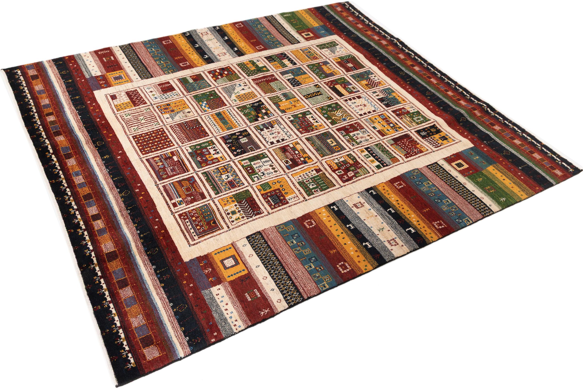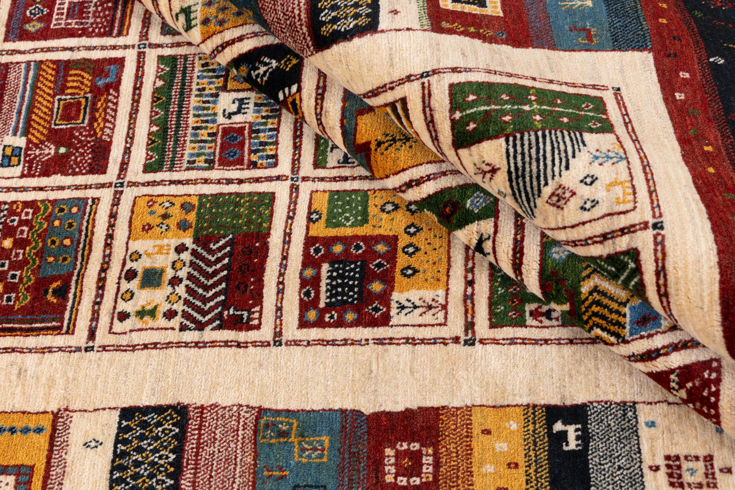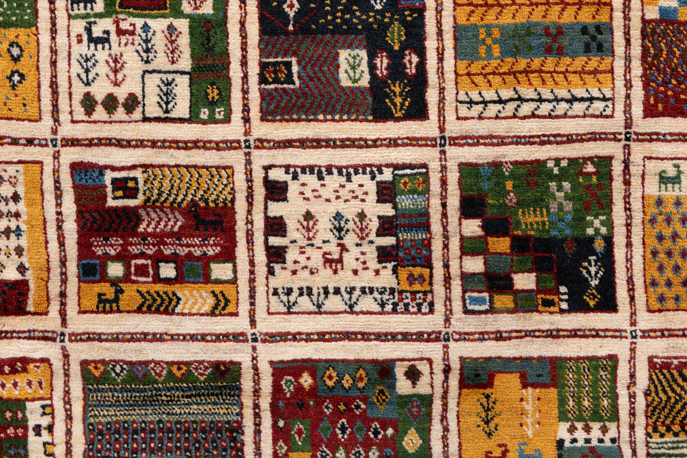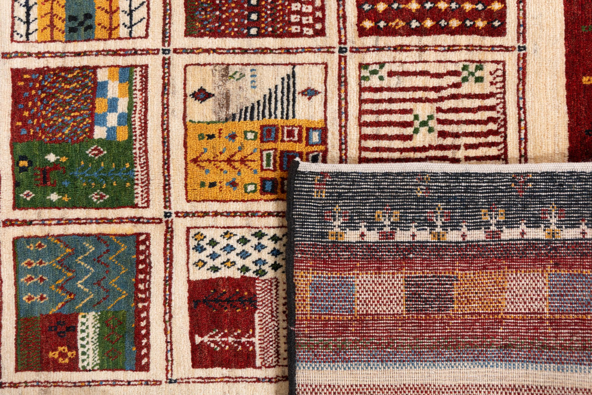 Αυτό το όμορφο χαλί είναι περσικό χαλί Gabbeh και είναι ένα από τα ποιοτικότερα χαλιά Gabbeh. Τα χαλιά δένονται από νομάδες ή ημινομάδες στο Ιράν σύμφωνα με την παραδοσιακή χειροτεχνία. Τα απλά μοτίβα και τα σχέδια είναι κυρίως εμπνευσμένα από το άμεσο περιβάλλον των νομάδων. Για παράδειγμα, καμήλες, δέντρα ή θάμνοι μπορούν να βρεθούν στα παραδοσιακά χαλιά. Τα περσικά χαλιά Gabbeh κατασκευάζονται από μαλλί από κοπάδια προβάτων που εκτρέφονται τοπικά. Ως εκ τούτου, το μαλλί ως επί το πλείστον εξακολουθεί να κλώνεται με το χέρι. Κάθε ένα από αυτά τα ανατολίτικα χαλιά ενσαρκώνει έναν μοναδικό χαρακτήρα αιώνων πολιτισμού.