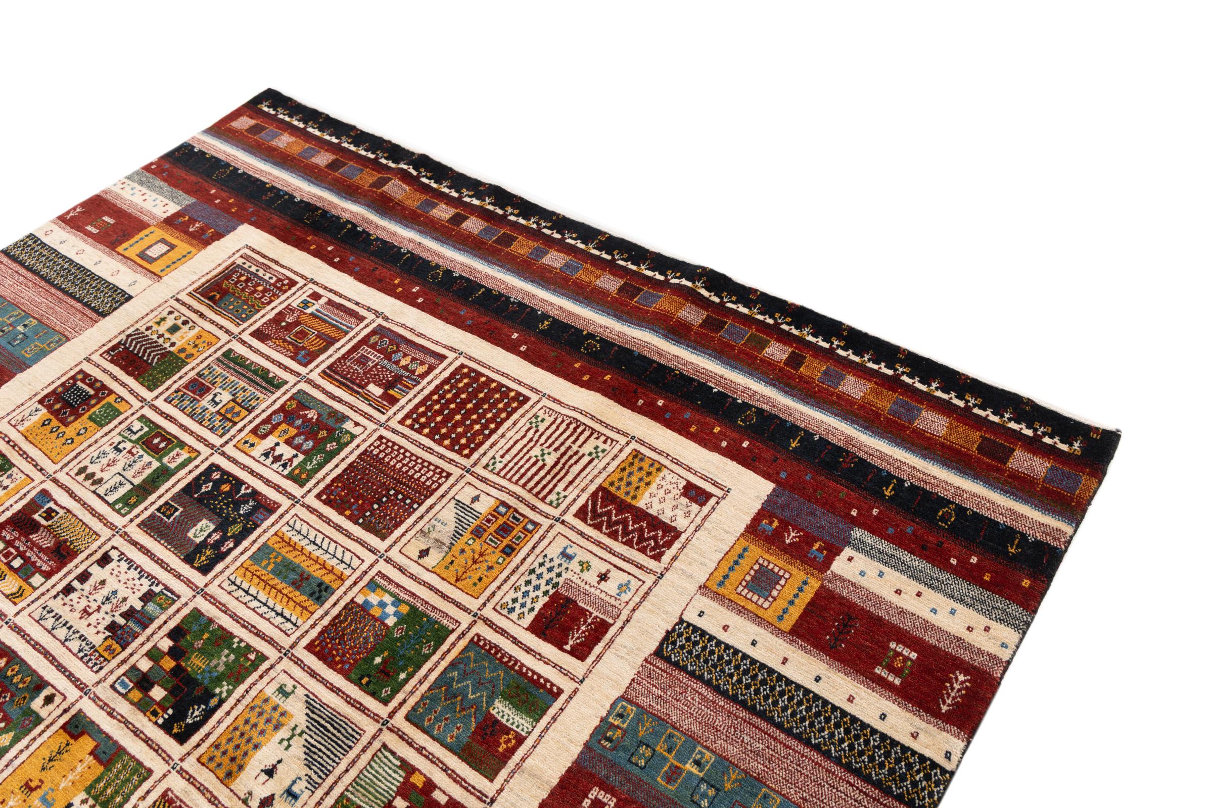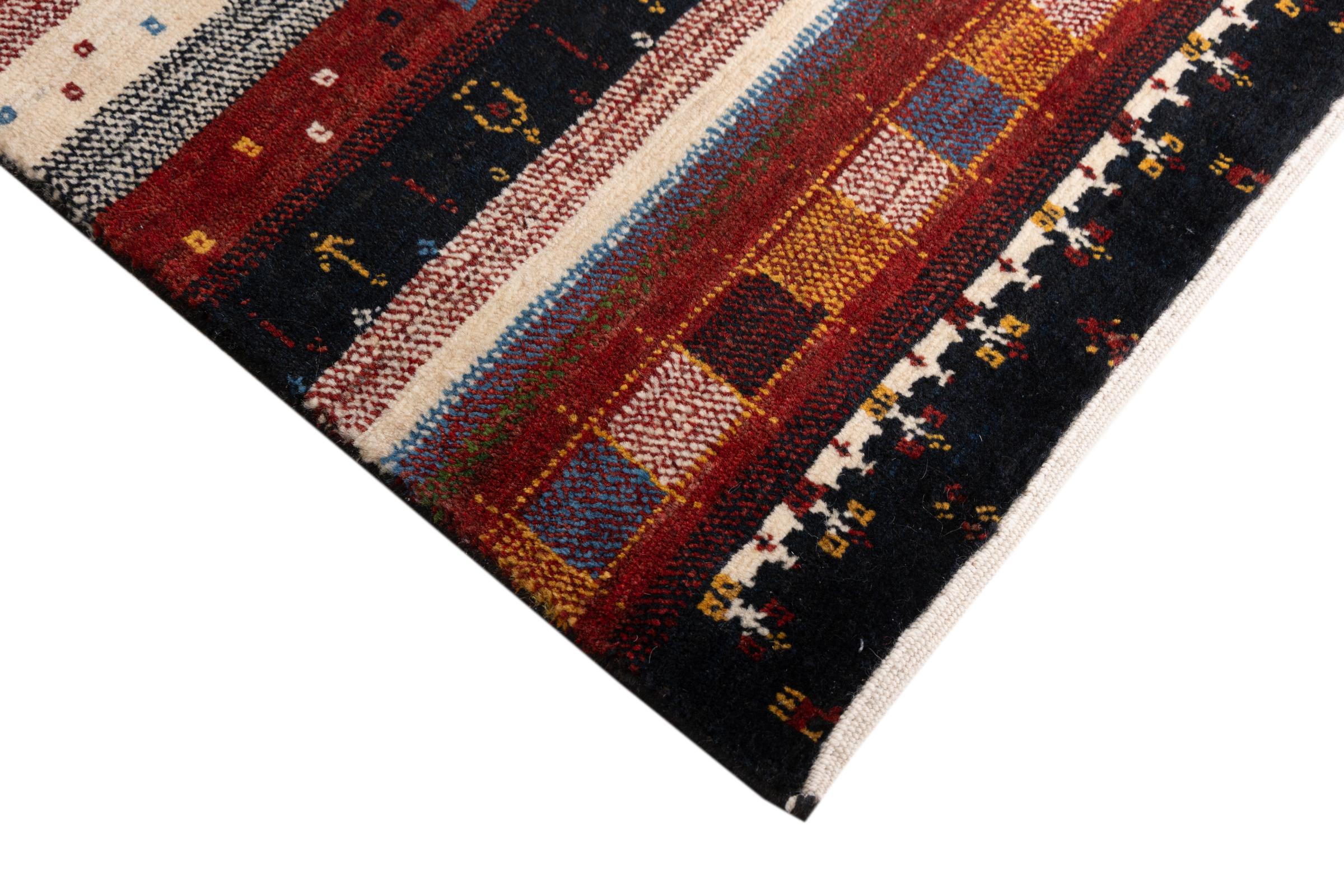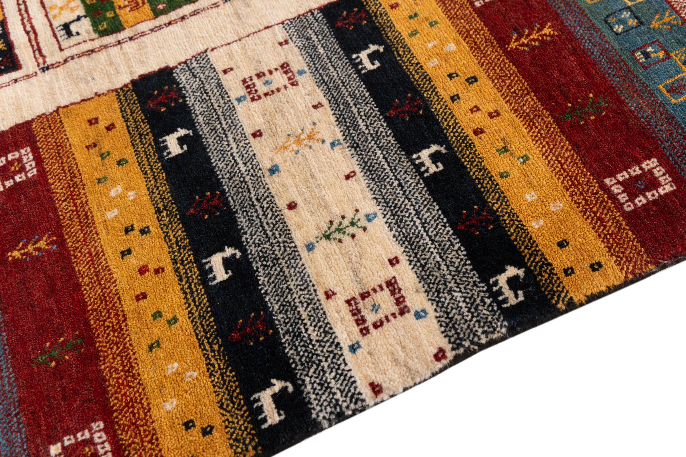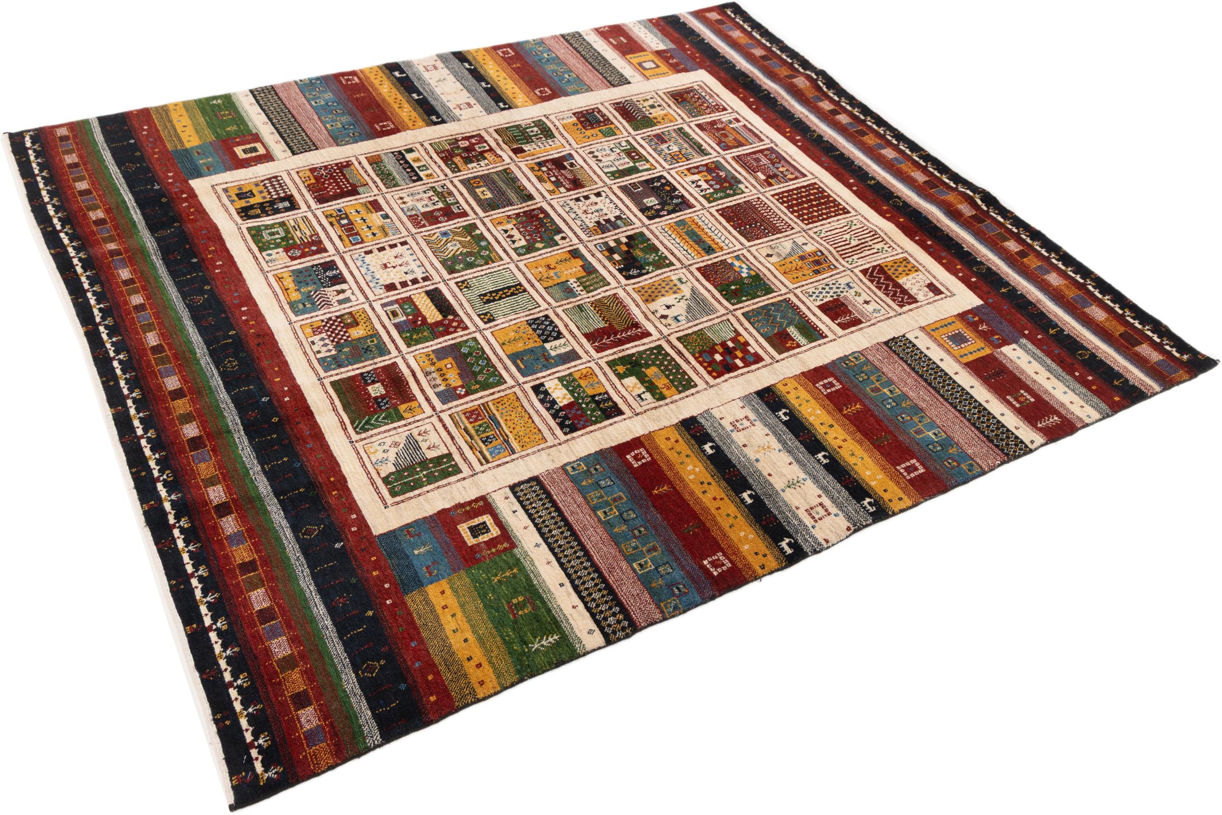 Αυτό το όμορφο χαλί είναι περσικό χαλί Gabbeh και είναι ένα από τα ποιοτικότερα χαλιά Gabbeh. Τα χαλιά δένονται από νομάδες ή ημινομάδες στο Ιράν σύμφωνα με την παραδοσιακή χειροτεχνία. Τα απλά μοτίβα και τα σχέδια είναι κυρίως εμπνευσμένα από το άμεσο περιβάλλον των νομάδων. Για παράδειγμα, καμήλες, δέντρα ή θάμνοι μπορούν να βρεθούν στα παραδοσιακά χαλιά. Τα περσικά χαλιά Gabbeh κατασκευάζονται από μαλλί από κοπάδια προβάτων που εκτρέφονται τοπικά. Ως εκ τούτου, το μαλλί ως επί το πλείστον εξακολουθεί να κλώνεται με το χέρι. Κάθε ένα από αυτά τα ανατολίτικα χαλιά ενσαρκώνει έναν μοναδικό χαρακτήρα αιώνων πολιτισμού.