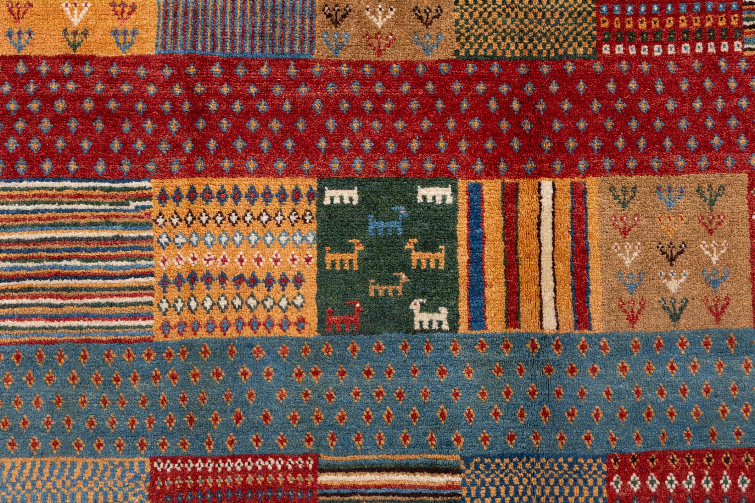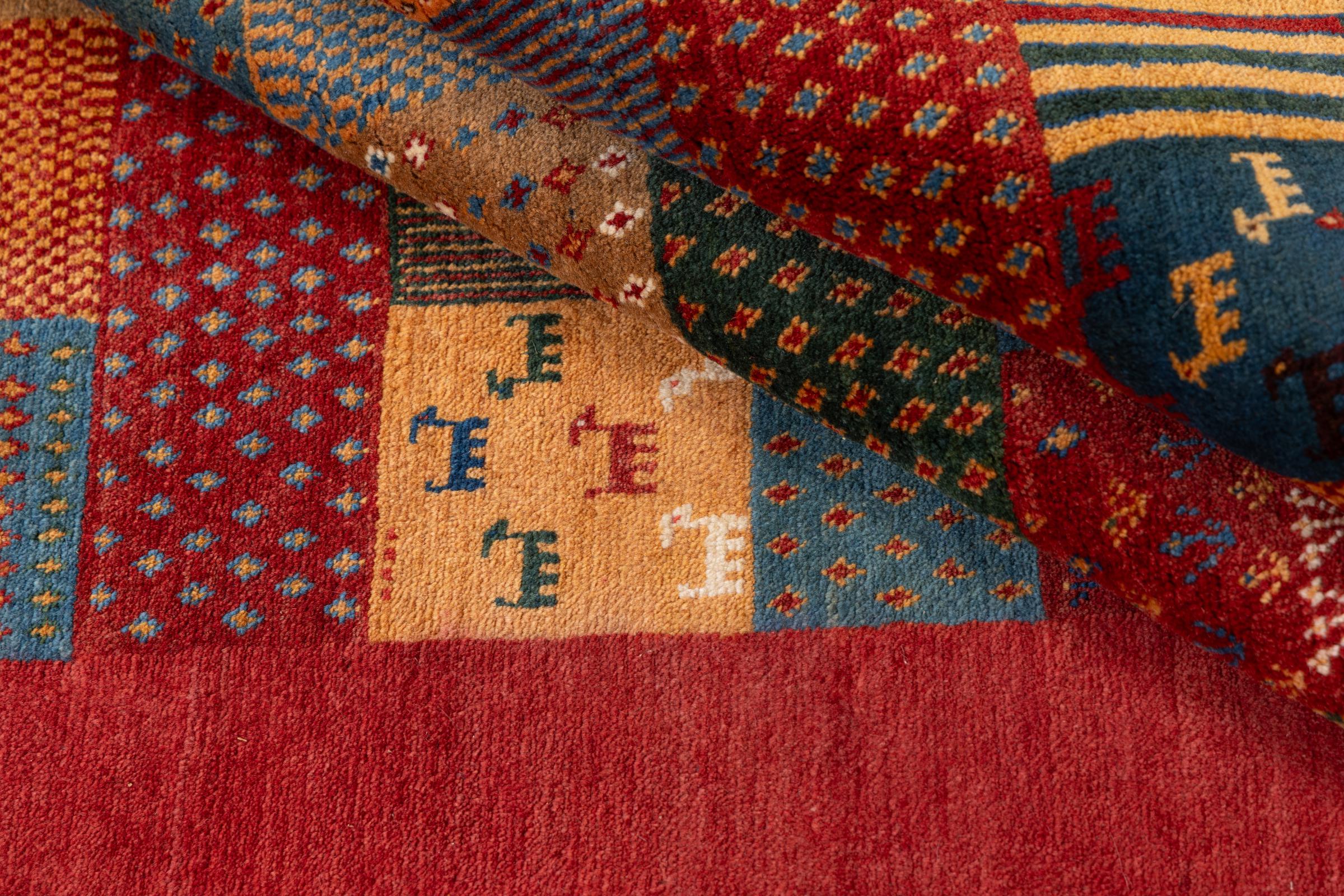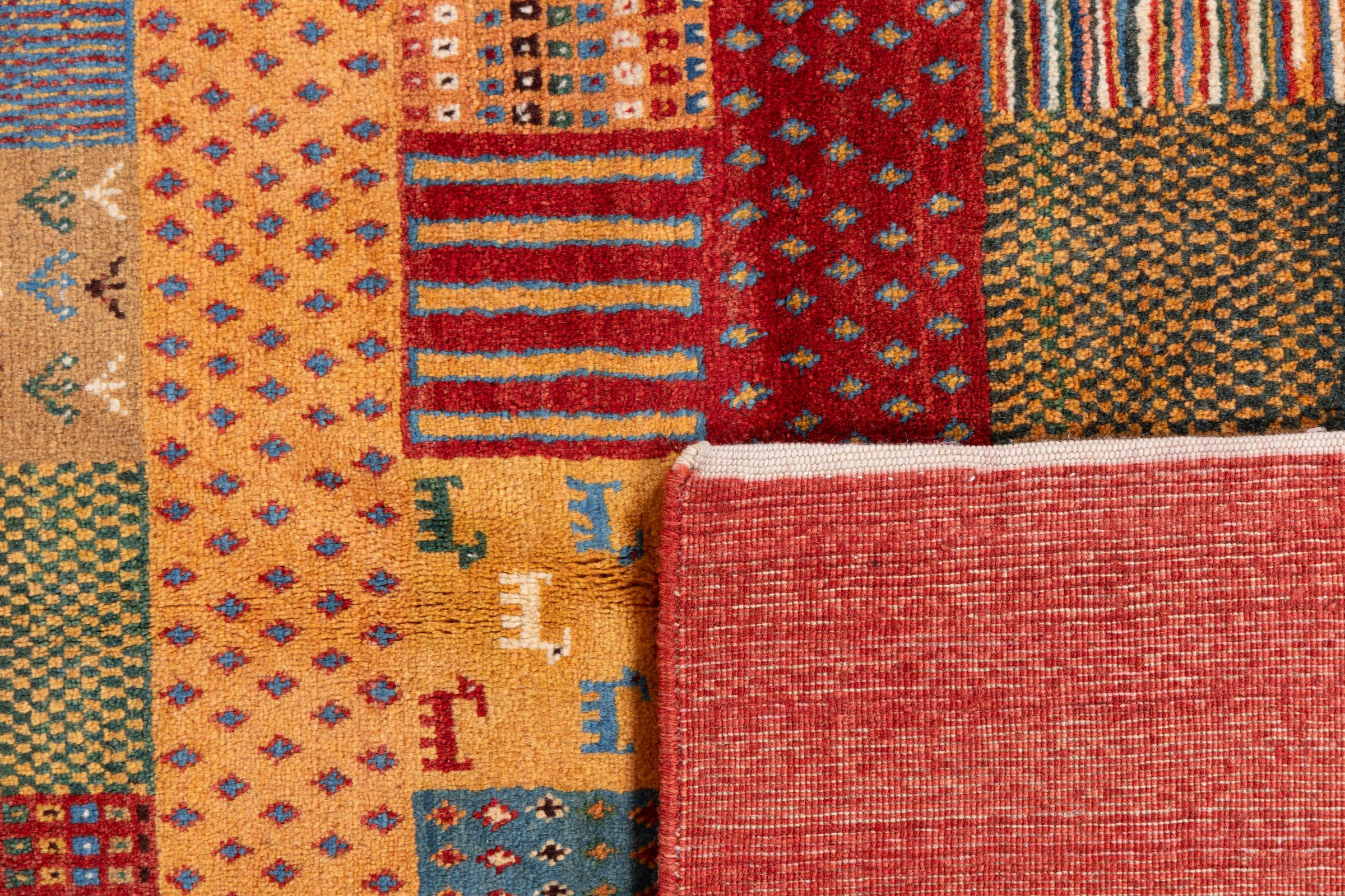 Αυτό το όμορφο χαλί είναι περσικό χαλί Gabbeh και είναι ένα από τα ποιοτικότερα χαλιά Gabbeh. Τα χαλιά δένονται από νομάδες ή ημινομάδες στο Ιράν σύμφωνα με την παραδοσιακή χειροτεχνία. Τα απλά μοτίβα και τα σχέδια είναι κυρίως εμπνευσμένα από το άμεσο περιβάλλον των νομάδων. Για παράδειγμα, καμήλες, δέντρα ή θάμνοι μπορούν να βρεθούν στα παραδοσιακά χαλιά. Τα περσικά χαλιά Gabbeh κατασκευάζονται από μαλλί από κοπάδια προβάτων που εκτρέφονται τοπικά. Ως εκ τούτου, το μαλλί ως επί το πλείστον εξακολουθεί να κλώνεται με το χέρι. Κάθε ένα από αυτά τα ανατολίτικα χαλιά ενσαρκώνει έναν μοναδικό χαρακτήρα αιώνων πολιτισμού.