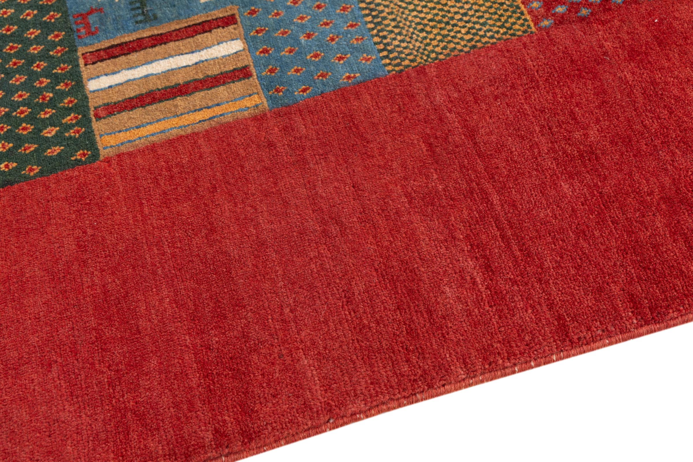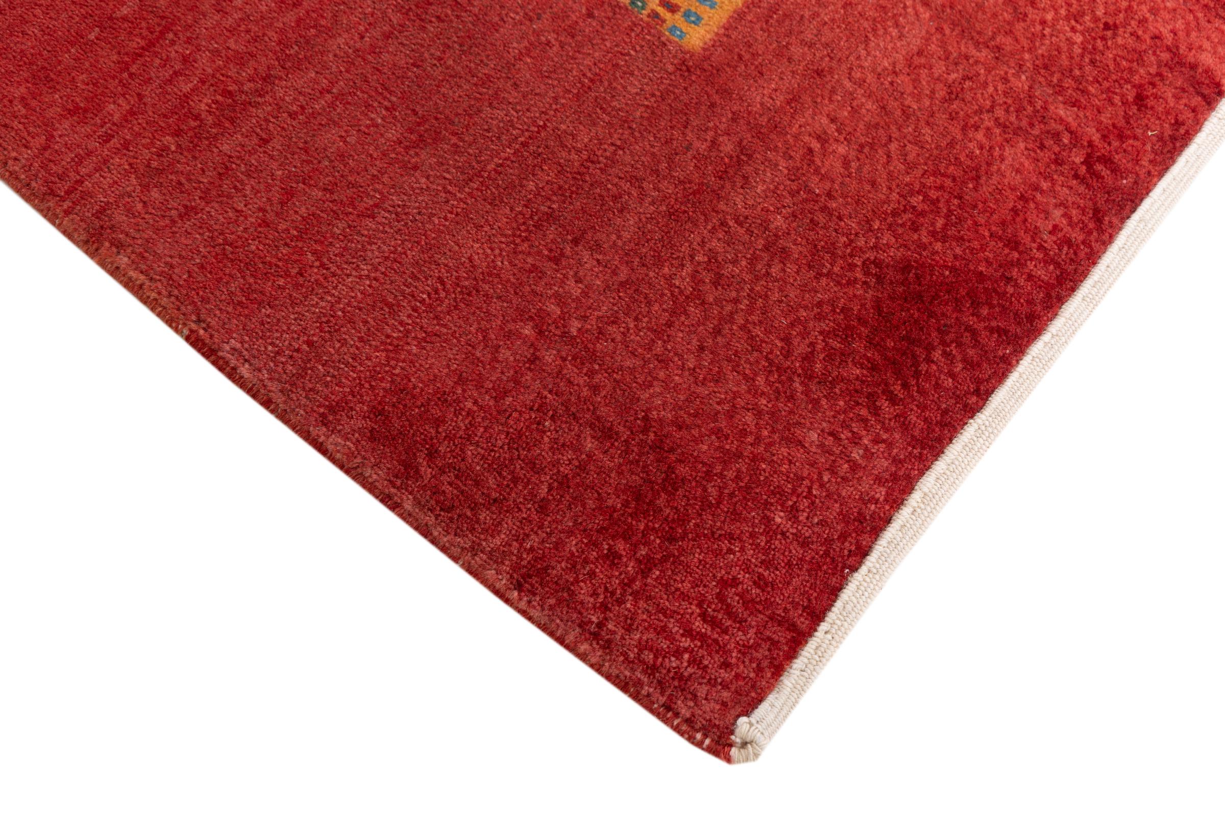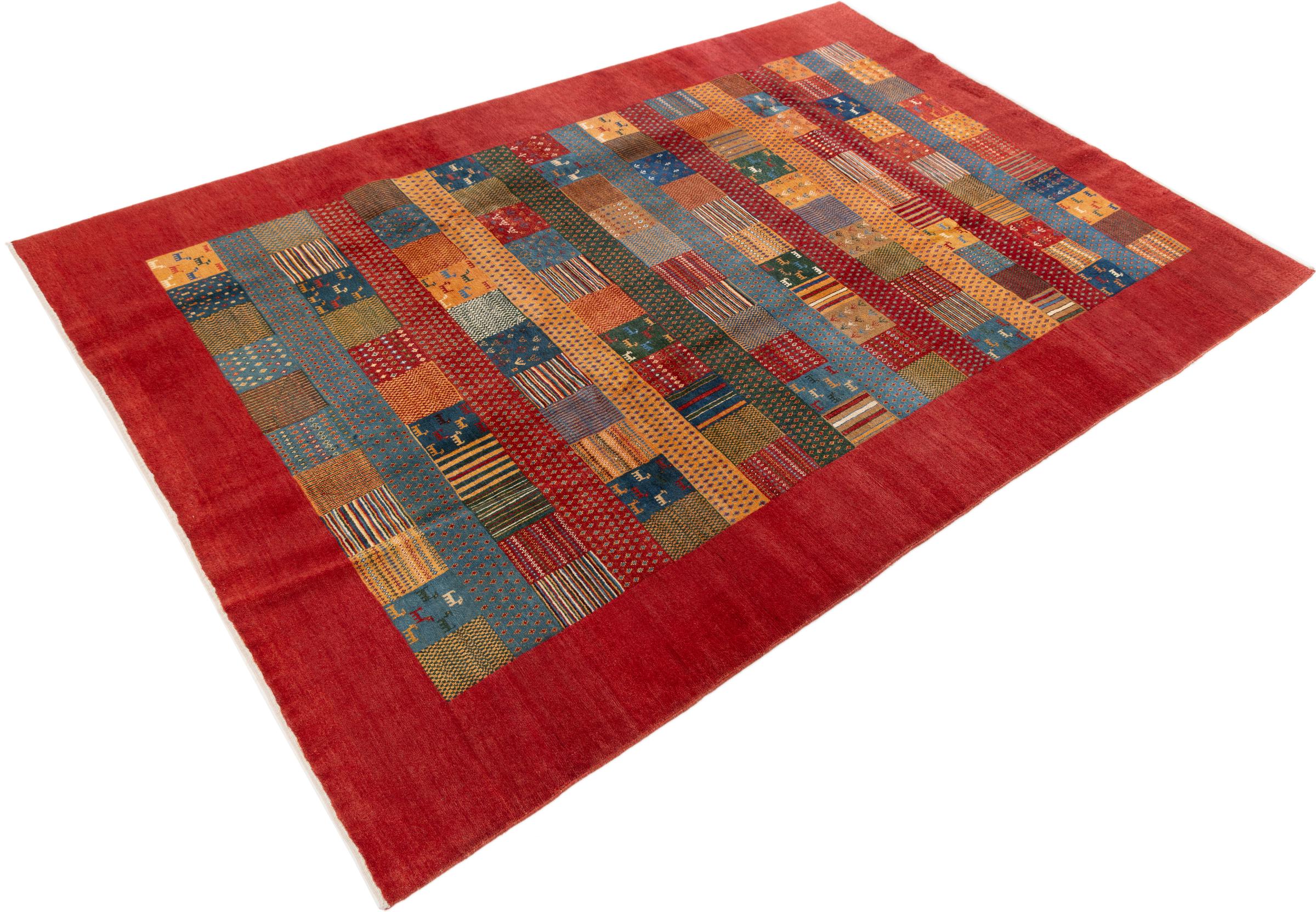 Αυτό το όμορφο χαλί είναι περσικό χαλί Gabbeh και είναι ένα από τα ποιοτικότερα χαλιά Gabbeh. Τα χαλιά δένονται από νομάδες ή ημινομάδες στο Ιράν σύμφωνα με την παραδοσιακή χειροτεχνία. Τα απλά μοτίβα και τα σχέδια είναι κυρίως εμπνευσμένα από το άμεσο περιβάλλον των νομάδων. Για παράδειγμα, καμήλες, δέντρα ή θάμνοι μπορούν να βρεθούν στα παραδοσιακά χαλιά. Τα περσικά χαλιά Gabbeh κατασκευάζονται από μαλλί από κοπάδια προβάτων που εκτρέφονται τοπικά. Ως εκ τούτου, το μαλλί ως επί το πλείστον εξακολουθεί να κλώνεται με το χέρι. Κάθε ένα από αυτά τα ανατολίτικα χαλιά ενσαρκώνει έναν μοναδικό χαρακτήρα αιώνων πολιτισμού.
