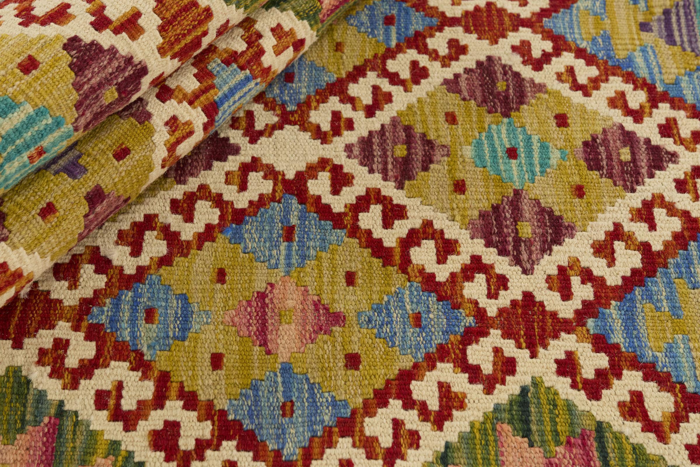 Αυτό το χειροποίητο κιλίμι Αφγανιστάν είναι όμορφο χάρη στα πολύπλευρα χρώματα και το τυπικό μοτίβο. Έγινε χειροποίητη ύφανση στο Αφγανιστάν από 100% μαλλί προβάτου. Είναι αναμφίβολα πιο στιβαρό και ανθεκτικό από τα χαλιά μηχανής. Επιπλέον, αυτό το κιλίμι έχει τον δικό του χαρακτήρα. Ένα μοναδικό κομμάτι για εσάς και το σπίτι σας που δεν θα βρείτε ποτέ ξανά.