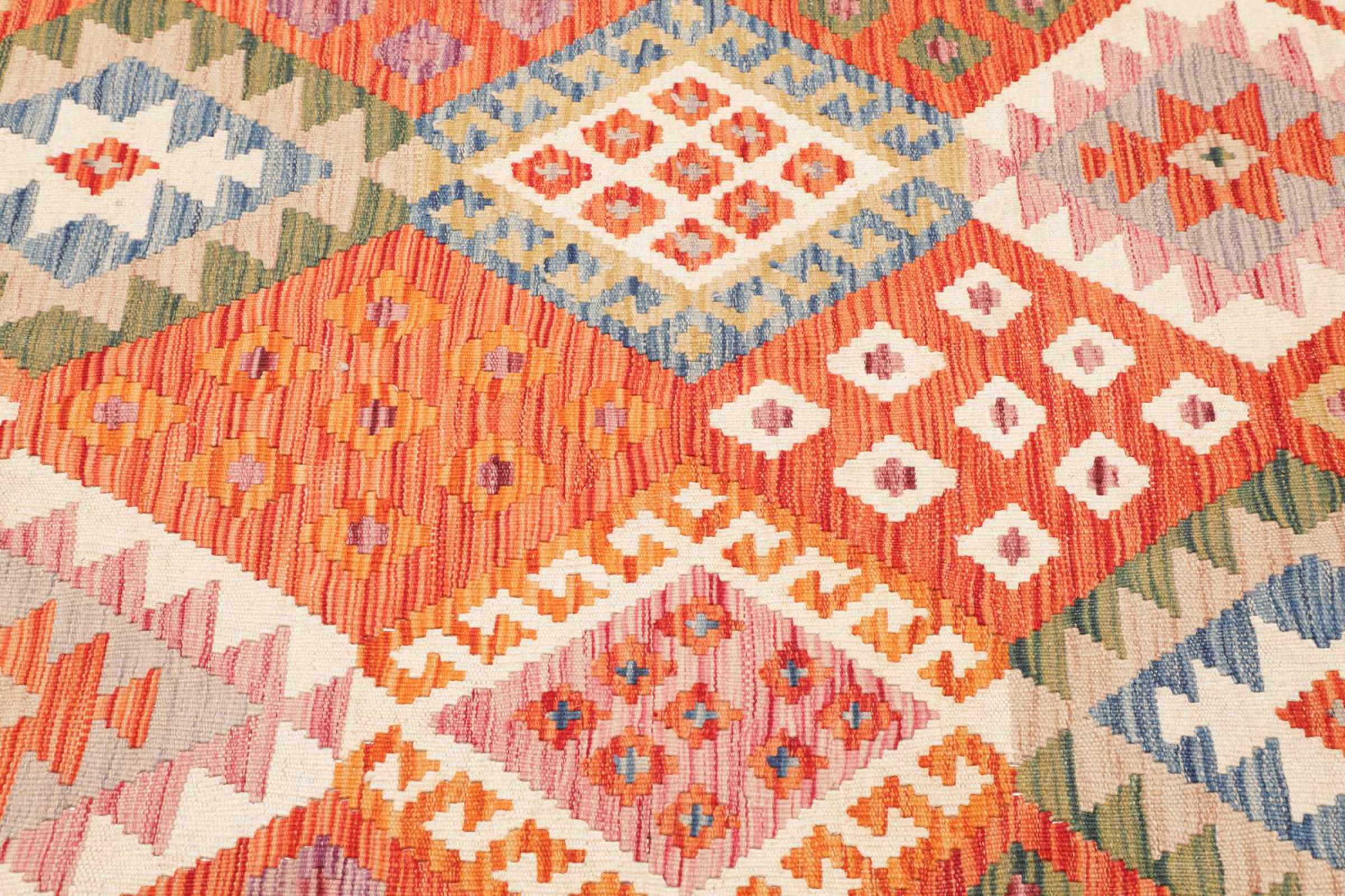 Αυτό το χειροποίητο κιλίμι Αφγανιστάν είναι όμορφο χάρη στα πολύπλευρα χρώματα και το τυπικό μοτίβο. Έγινε χειροποίητη ύφανση στο Αφγανιστάν από 100% μαλλί προβάτου. Είναι αναμφίβολα πιο στιβαρό και ανθεκτικό από τα χαλιά μηχανής. Επιπλέον, αυτό το κιλίμι έχει τον δικό του χαρακτήρα. Ένα μοναδικό κομμάτι για εσάς και το σπίτι σας που δεν θα βρείτε ποτέ ξανά.