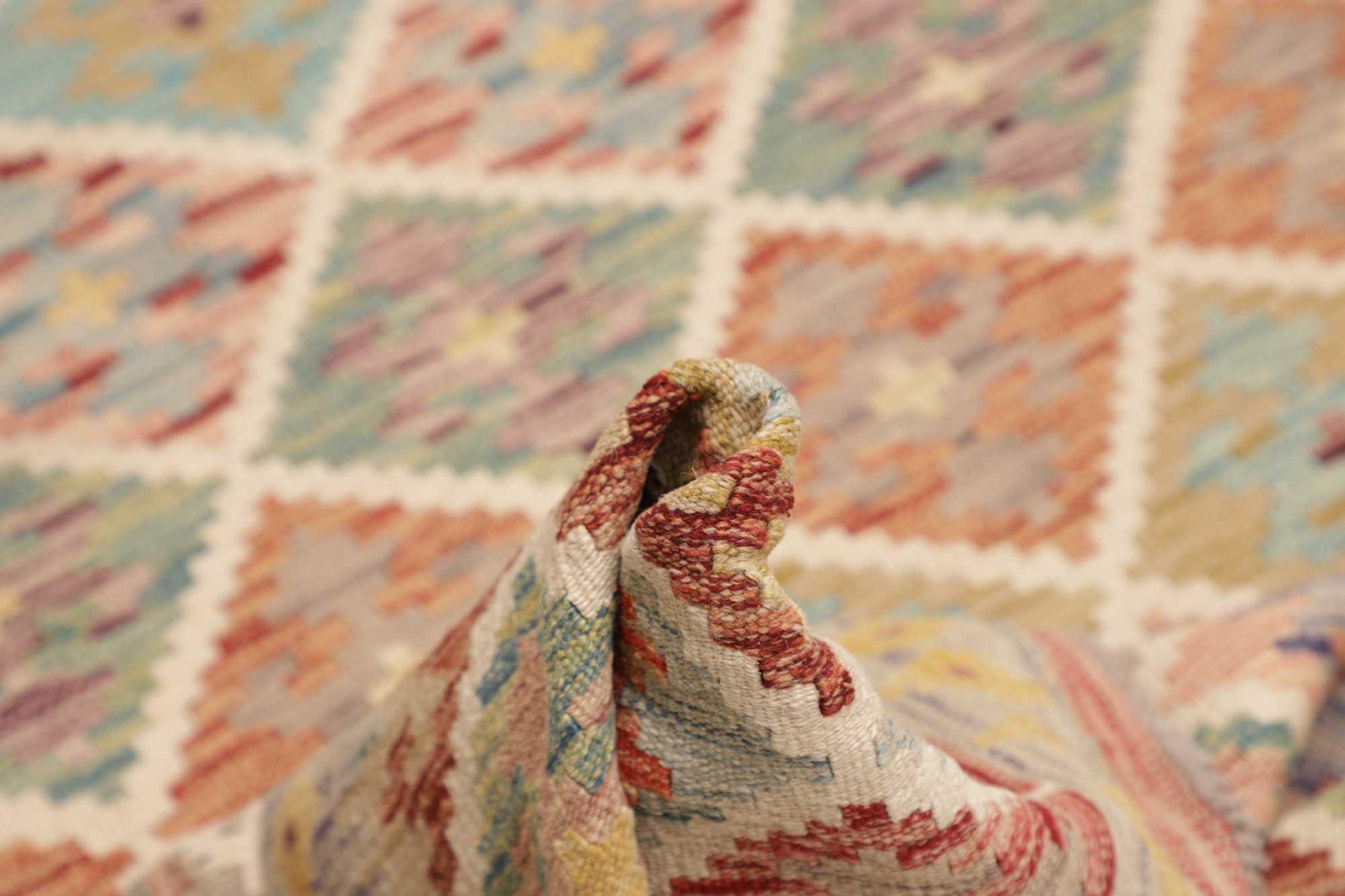 Αυτό το χειροποίητο κιλίμι Αφγανιστάν είναι όμορφο χάρη στα πολύπλευρα χρώματα και το τυπικό μοτίβο. Έγινε χειροποίητη ύφανση στο Αφγανιστάν από 100% μαλλί προβάτου. Είναι αναμφίβολα πιο στιβαρό και ανθεκτικό από τα χαλιά μηχανής. Επιπλέον, αυτό το κιλίμι έχει τον δικό του χαρακτήρα. Ένα μοναδικό κομμάτι για εσάς και το σπίτι σας που δεν θα βρείτε ποτέ ξανά.