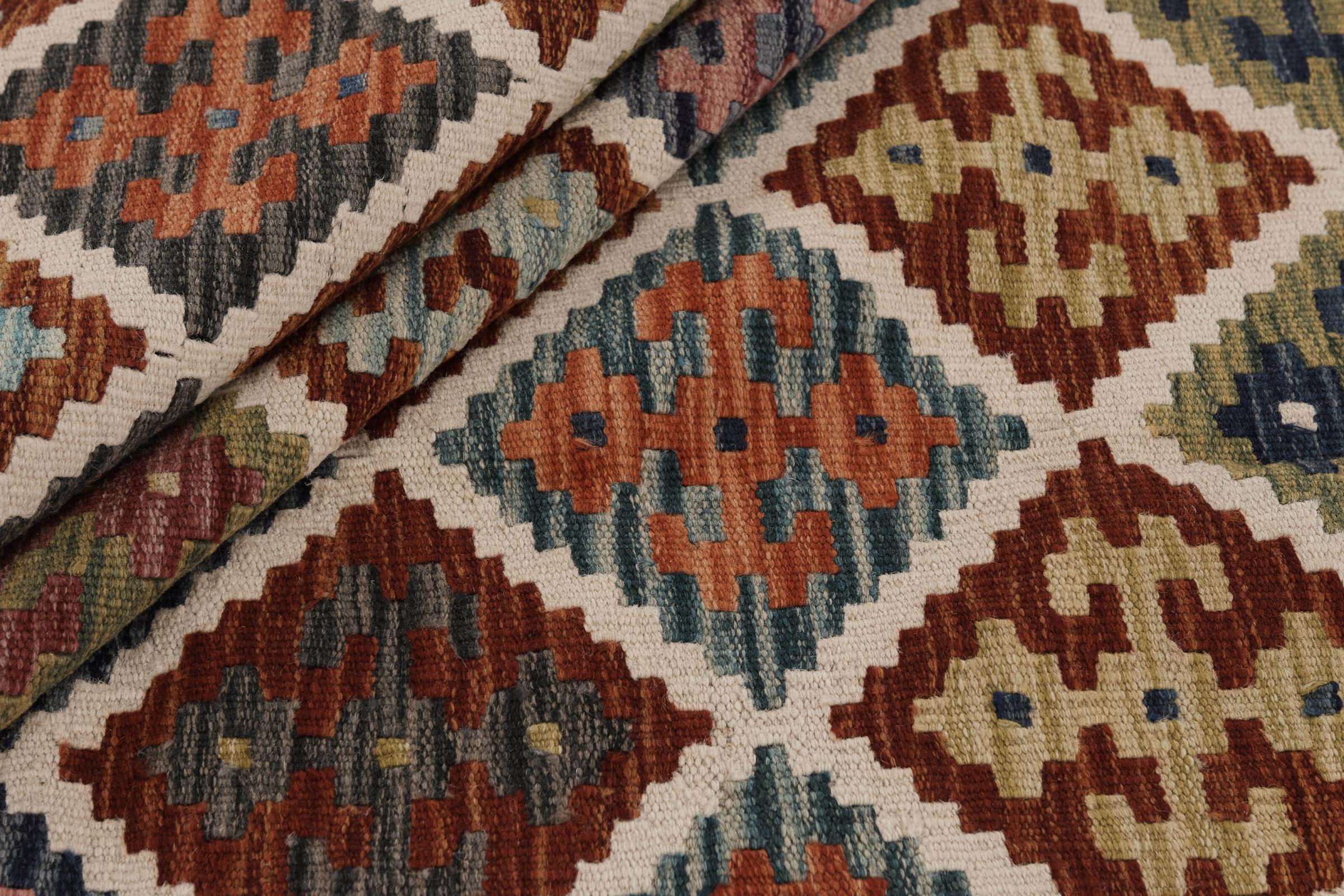 Αυτό το χειροποίητο κιλίμι Αφγανιστάν είναι όμορφο χάρη στα πολύπλευρα χρώματα και το τυπικό μοτίβο. Έγινε χειροποίητη ύφανση στο Αφγανιστάν από 100% μαλλί προβάτου. Είναι αναμφίβολα πιο στιβαρό και ανθεκτικό από τα χαλιά μηχανής. Επιπλέον, αυτό το κιλίμι έχει τον δικό του χαρακτήρα. Ένα μοναδικό κομμάτι για εσάς και το σπίτι σας που δεν θα βρείτε ποτέ ξανά.