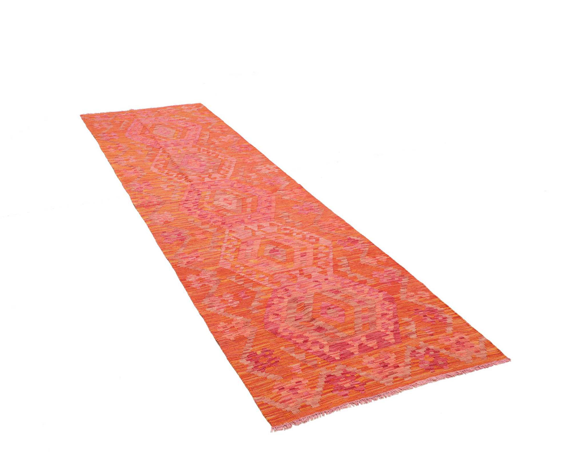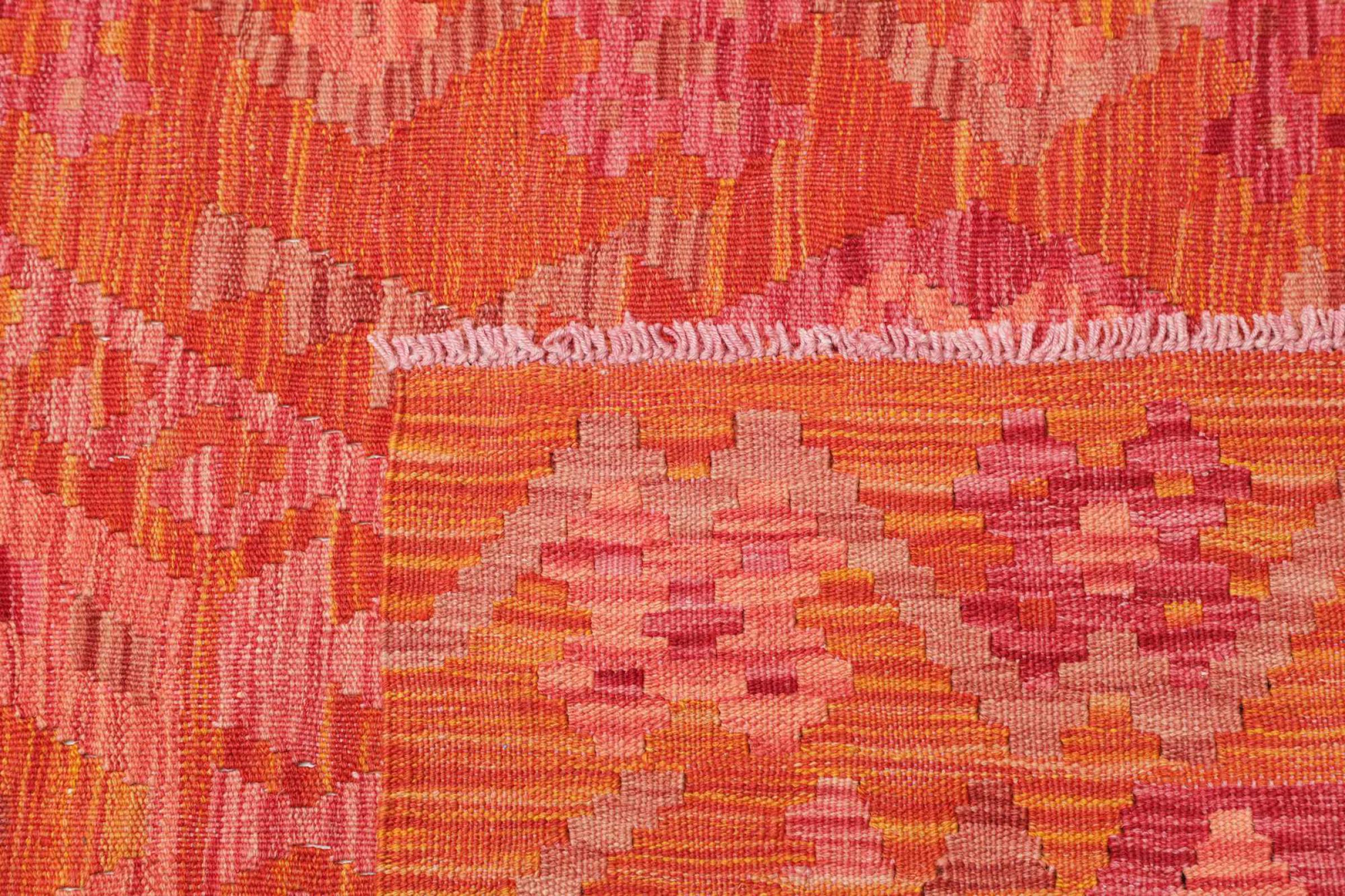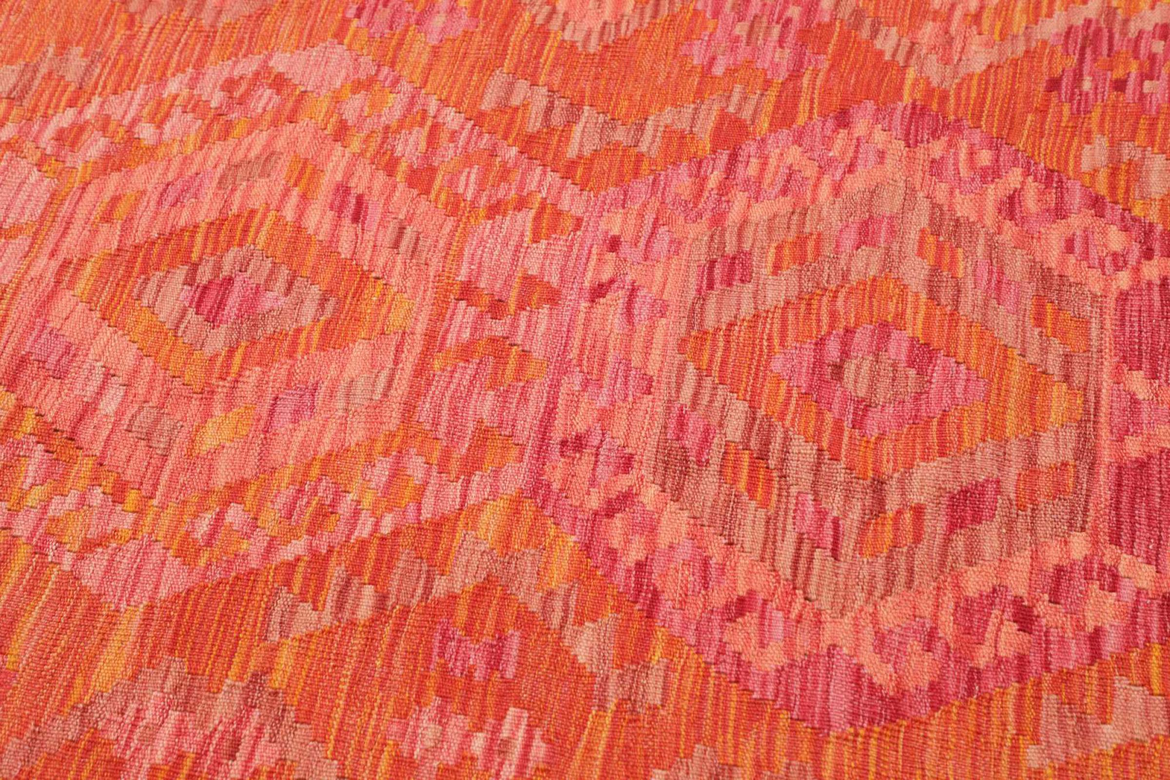 Αυτό το χαλί είναι χειροποίητο ως επίπεδη ύφανση σε αργαλειό. Τα επίπεδα ύφανση είναι χαλιά που δεν έχουν πέλος. Όπως υπόσχεται το όνομα, αυτά τα χαλιά είναι υφαντά και όχι δεμένα με κόμπους. Αυτό έχει ως αποτέλεσμα ένα επίπεδο χαλί με ανάγλυφη επιφάνεια. Τα flatweaves δεν είναι τόσο μαλακά και συνήθως πιο λεπτά από τα χαλιά με κόμπους. Ταυτόχρονα, είναι πολύ λιγότερο πολύπλοκα στην κατασκευή τους και μπορούν συνήθως να τοποθετηθούν και από τις δύο πλευρές (εμπρός και πίσω). Τα σχέδια τους είναι συνήθως γεωμετρικά, κάτι που οφείλεται στην ύφανση.