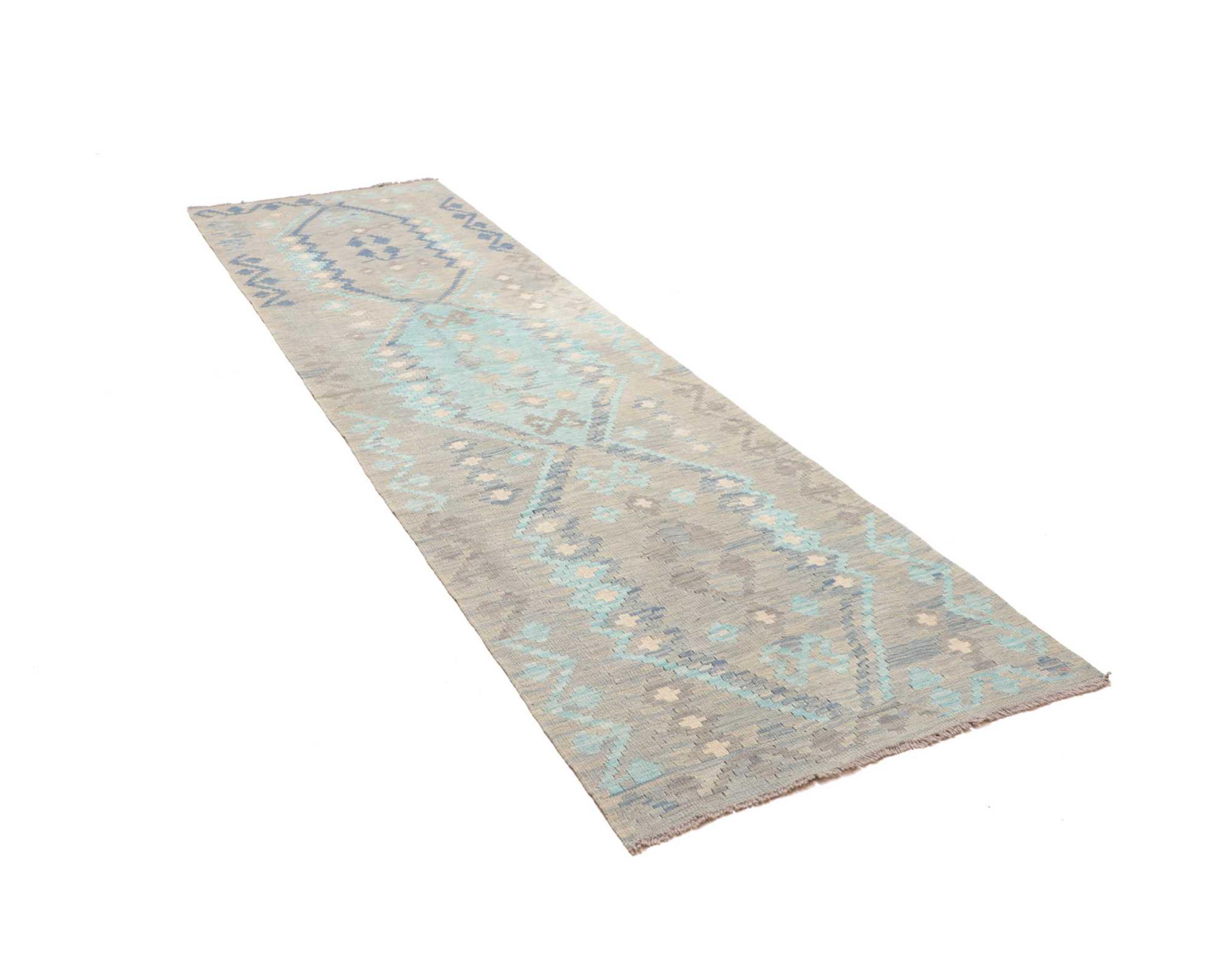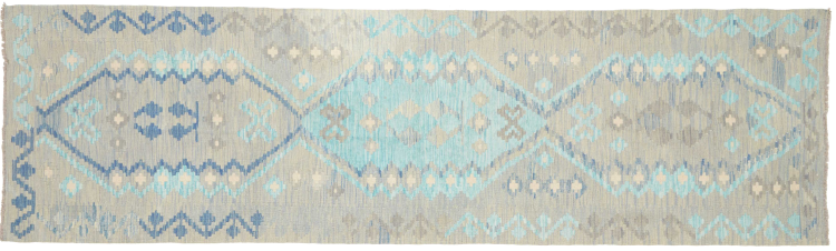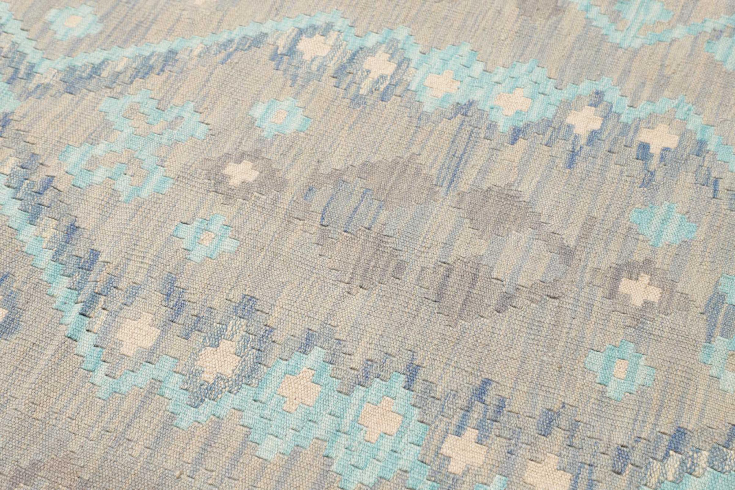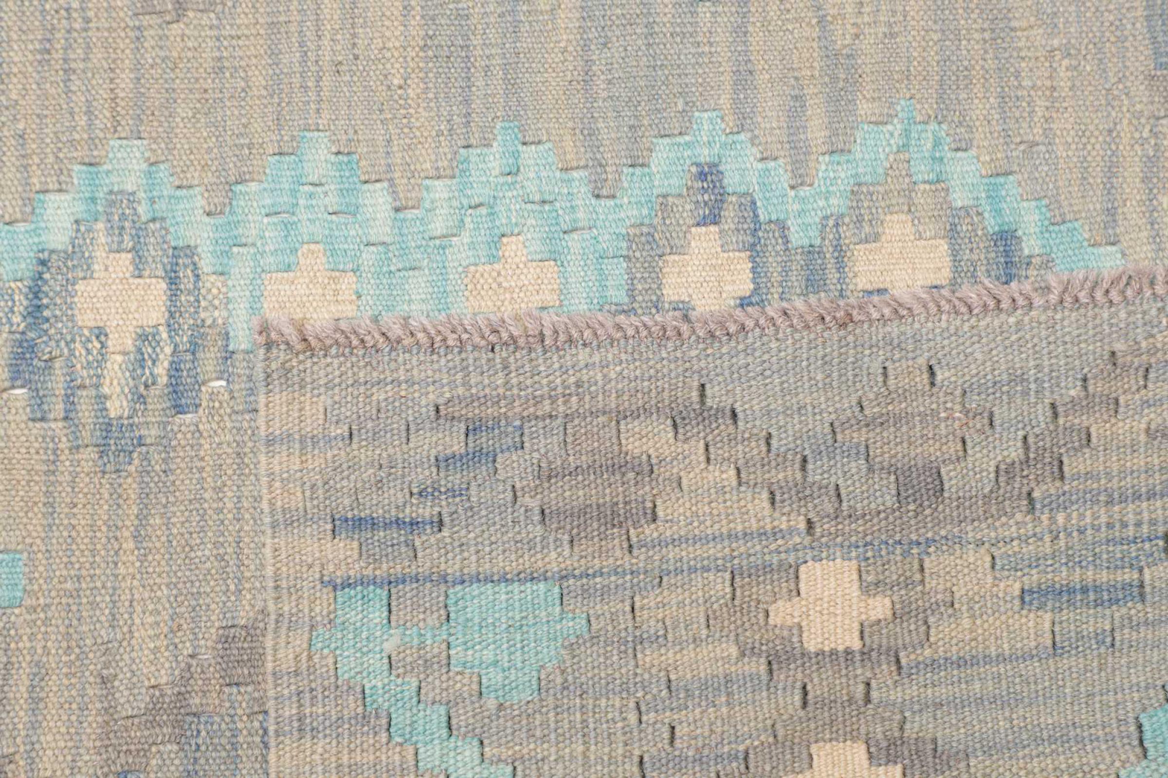 Αυτό το χαλί είναι χειροποίητο ως επίπεδη ύφανση σε αργαλειό. Τα επίπεδα ύφανση είναι χαλιά που δεν έχουν πέλος. Όπως υπόσχεται το όνομα, αυτά τα χαλιά είναι υφαντά και όχι δεμένα με κόμπους. Αυτό έχει ως αποτέλεσμα ένα επίπεδο χαλί με ανάγλυφη επιφάνεια. Τα flatweaves δεν είναι τόσο μαλακά και συνήθως πιο λεπτά από τα χαλιά με κόμπους. Ταυτόχρονα, είναι πολύ λιγότερο πολύπλοκα στην κατασκευή τους και μπορούν συνήθως να τοποθετηθούν και από τις δύο πλευρές (εμπρός και πίσω). Τα σχέδια τους είναι συνήθως γεωμετρικά, κάτι που οφείλεται στην ύφανση.