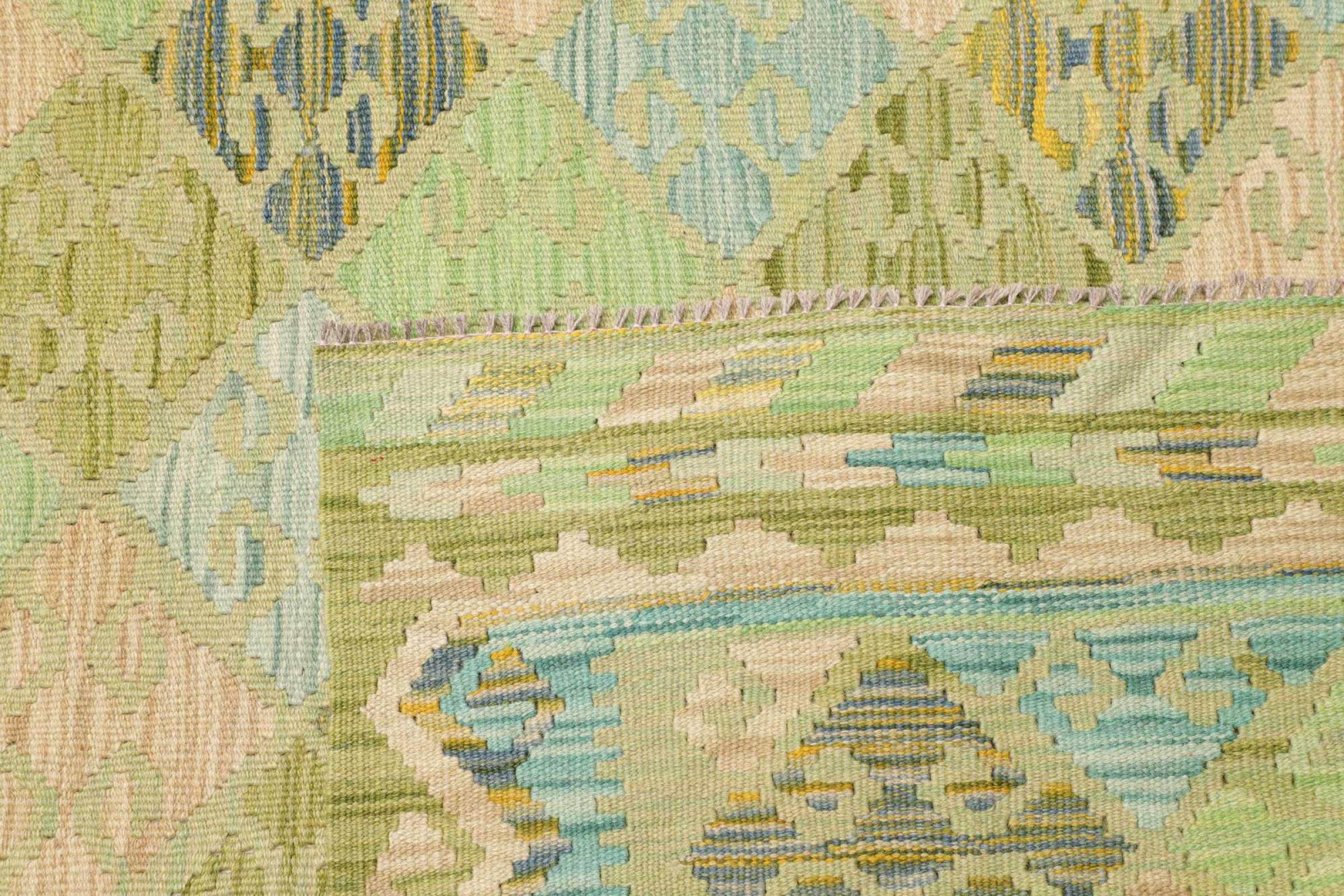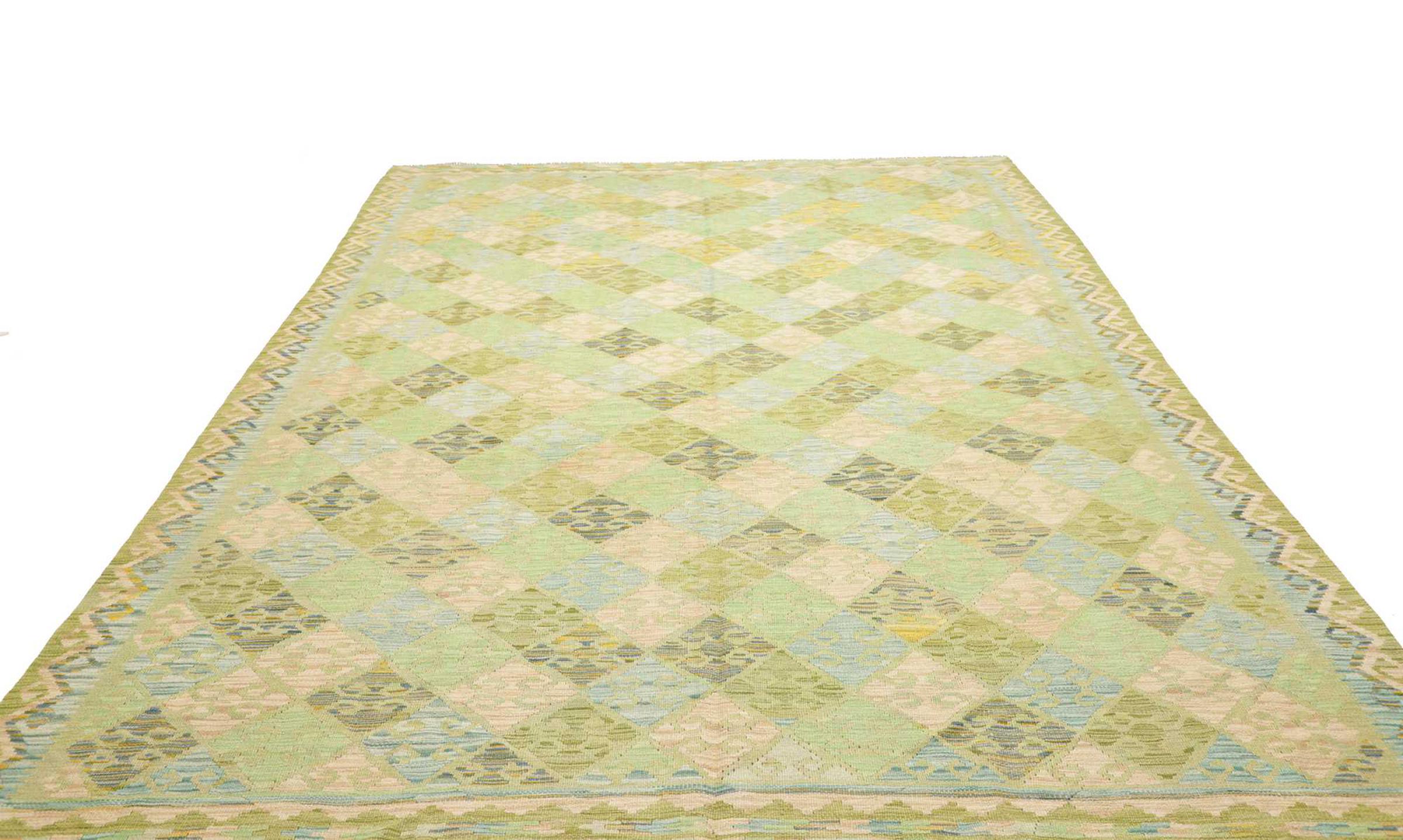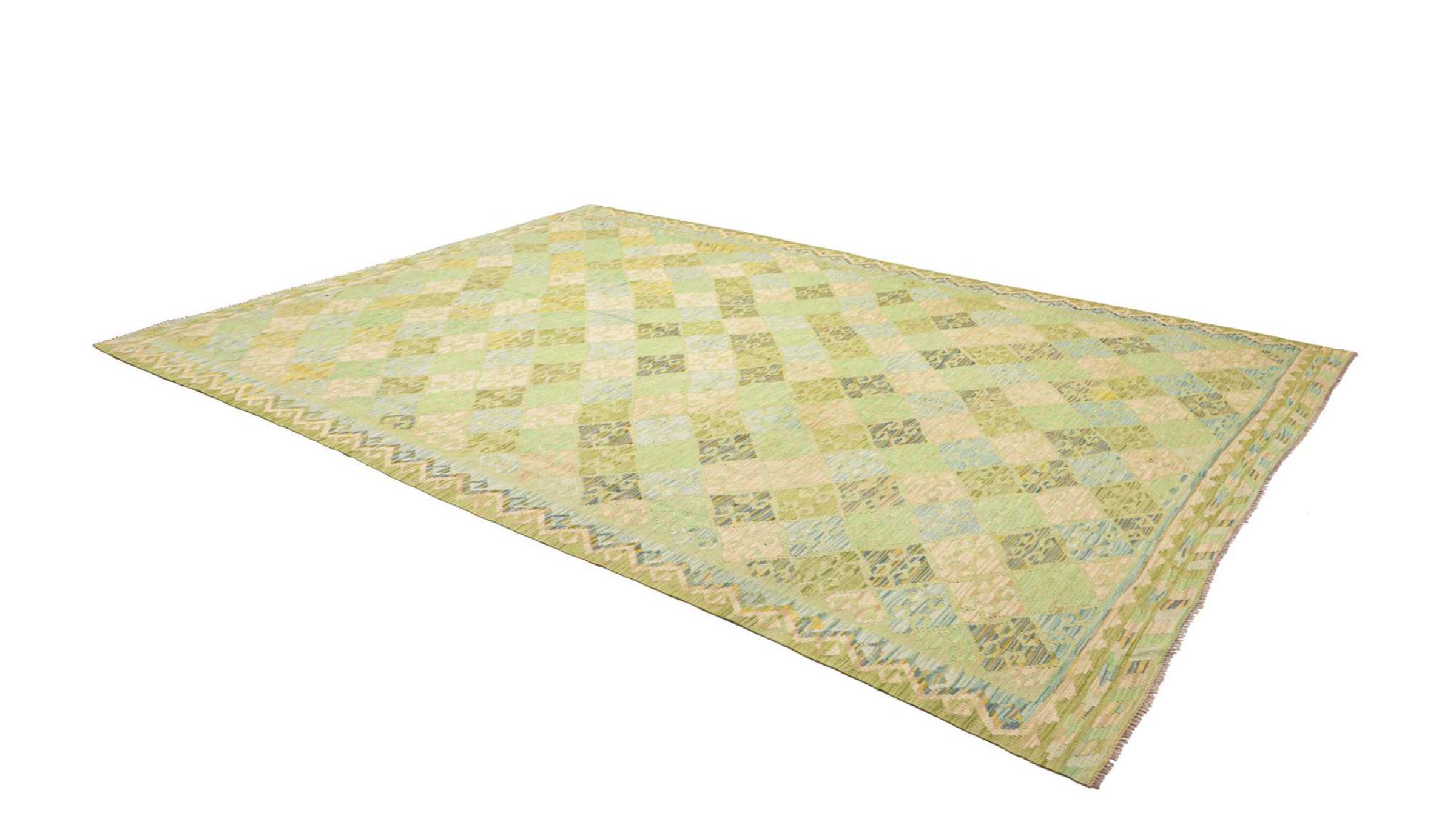 Αυτό το χαλί είναι χειροποίητο ως επίπεδη ύφανση σε αργαλειό. Τα επίπεδα ύφανση είναι χαλιά που δεν έχουν πέλος. Όπως υπόσχεται το όνομα, αυτά τα χαλιά είναι υφαντά και όχι δεμένα με κόμπους. Αυτό έχει ως αποτέλεσμα ένα επίπεδο χαλί με ανάγλυφη επιφάνεια. Τα flatweaves δεν είναι τόσο μαλακά και συνήθως πιο λεπτά από τα χαλιά με κόμπους. Ταυτόχρονα, είναι πολύ λιγότερο πολύπλοκα στην κατασκευή τους και μπορούν συνήθως να τοποθετηθούν και από τις δύο πλευρές (εμπρός και πίσω). Τα σχέδια τους είναι συνήθως γεωμετρικά, κάτι που οφείλεται στην ύφανση.