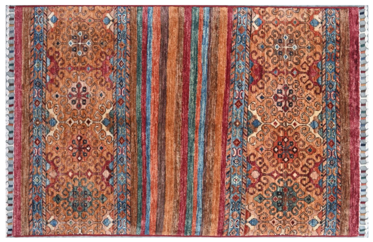Αυτό το χαλί είναι κατασκευασμένο από χειροποίητο μαλλί προβάτου υψηλής ποιότητας. Στο Ιράν (πρώην Περσία), στο Αφγανιστάν και στο Πακιστάν ειδικότερα, το μαλλί εξακολουθεί να κλίνεται με το χέρι πριν αρχίσει ο πραγματικός κόμπος του χαλιού. Το μαλλί έχει αποδειχθεί ως φυσικό και εξαιρετικά ανθεκτικό υλικό στο πέρασμα των αιώνων. Μεταξύ άλλων, έχει ρυπογόνες και θερμομονωτικές ιδιότητες. Ταυτόχρονα, το μαλλί είναι ασύγκριτα απαλό και έχει φυσική γυαλάδα.