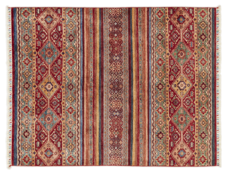 Αυτό το χαλί είναι κατασκευασμένο από χειροποίητο μαλλί προβάτου υψηλής ποιότητας. Στο Ιράν (πρώην Περσία), στο Αφγανιστάν και στο Πακιστάν ειδικότερα, το μαλλί εξακολουθεί να κλίνεται με το χέρι πριν αρχίσει ο πραγματικός κόμπος του χαλιού. Το μαλλί έχει αποδειχθεί ως φυσικό και εξαιρετικά ανθεκτικό υλικό στο πέρασμα των αιώνων. Μεταξύ άλλων, έχει ρυπογόνες και θερμομονωτικές ιδιότητες. Ταυτόχρονα, το μαλλί είναι ασύγκριτα απαλό και έχει φυσική γυαλάδα.
