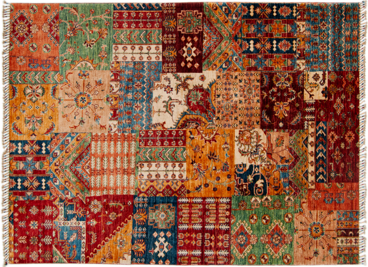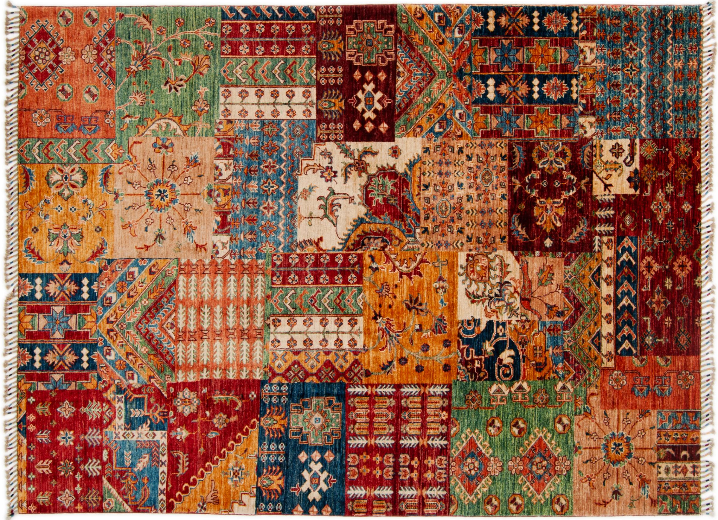 Αυτό το χαλί είναι κατασκευασμένο από χειροποίητο μαλλί προβάτου υψηλής ποιότητας. Στο Ιράν (πρώην Περσία), στο Αφγανιστάν και στο Πακιστάν ειδικότερα, το μαλλί εξακολουθεί να κλίνεται με το χέρι πριν αρχίσει ο πραγματικός κόμπος του χαλιού. Το μαλλί έχει αποδειχθεί ως φυσικό και εξαιρετικά ανθεκτικό υλικό στο πέρασμα των αιώνων. Μεταξύ άλλων, έχει ρυπογόνες και θερμομονωτικές ιδιότητες. Ταυτόχρονα, το μαλλί είναι ασύγκριτα απαλό και έχει φυσική γυαλάδα.