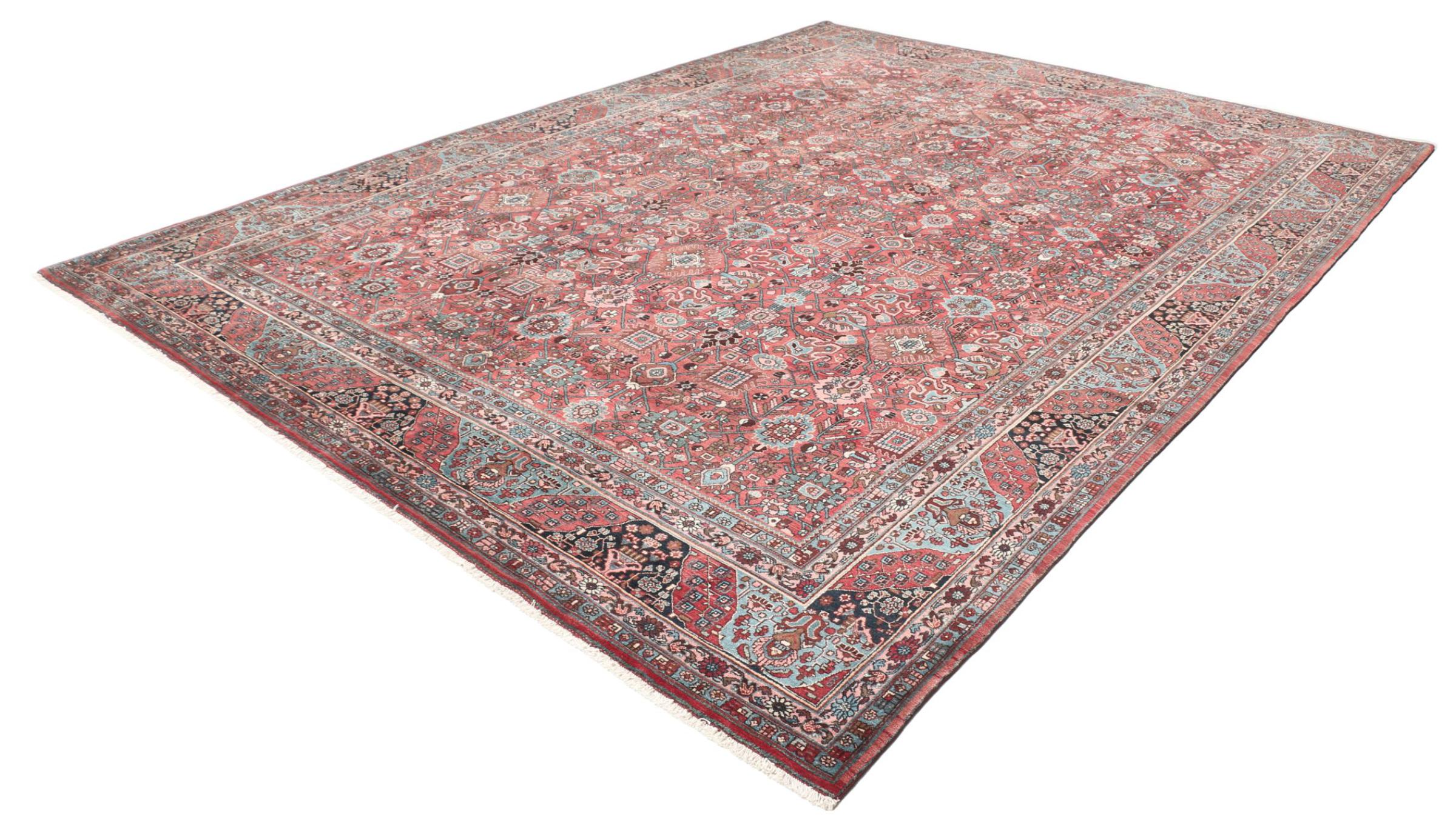 Νούμερο χαλιού: 309074006996920 Μέγεθος: 389x287 cm Πάχος: περίπου 15 mm κόμπους: 320 000 - 360 000 / m² Επεξεργασία: Οι κόμποι έγιναν με το χέρι σορός: Με Μαλλί κλωσμένο στο χέρι στημόνι: Βαμβάκι Κατάσταση / διατήρηση τέλειο Καταγωγή: Ιράν / Iran Ηλικία: αντίκες, παλαιότερα από 80 χρόνια Βάρος: περίπου 56 kg Στο απόθεμα: Mοναδικός - Μόνο 1 σε απόθεμα