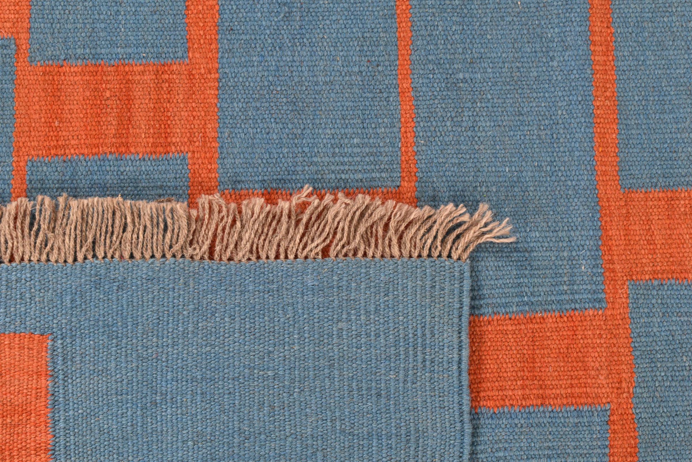 Αυτό το χαλί είναι χειροποίητο ως επίπεδη ύφανση σε αργαλειό. Τα επίπεδα ύφανση είναι χαλιά που δεν έχουν πέλος. Όπως υπόσχεται το όνομα, αυτά τα χαλιά είναι υφαντά και όχι δεμένα με κόμπους. Αυτό έχει ως αποτέλεσμα ένα επίπεδο χαλί με ανάγλυφη επιφάνεια. Τα flatweaves δεν είναι τόσο μαλακά και συνήθως πιο λεπτά από τα χαλιά με κόμπους. Ταυτόχρονα, είναι πολύ λιγότερο πολύπλοκα στην κατασκευή τους και μπορούν συνήθως να τοποθετηθούν και από τις δύο πλευρές (εμπρός και πίσω). Τα σχέδια τους είναι συνήθως γεωμετρικά, κάτι που οφείλεται στην ύφανση.