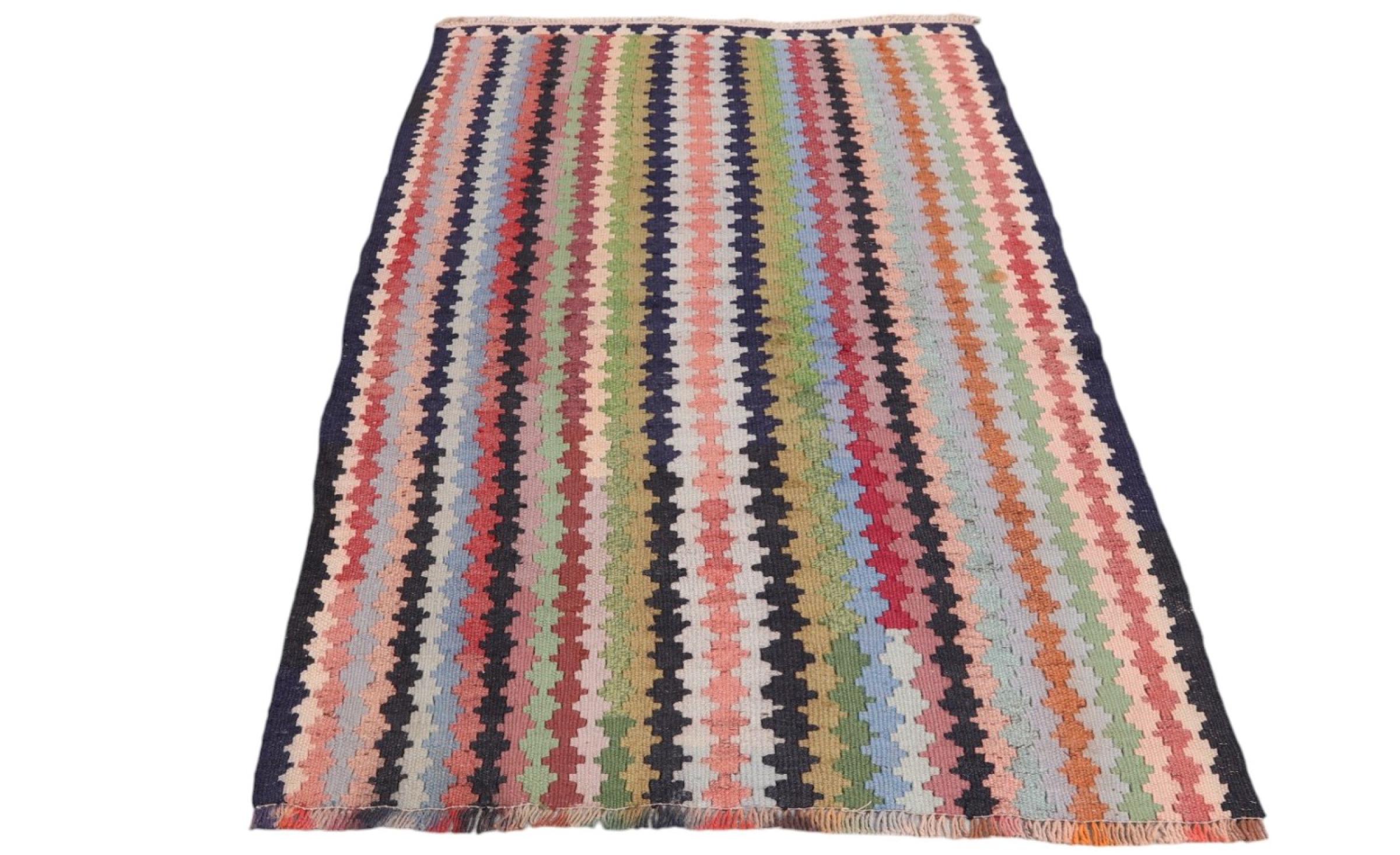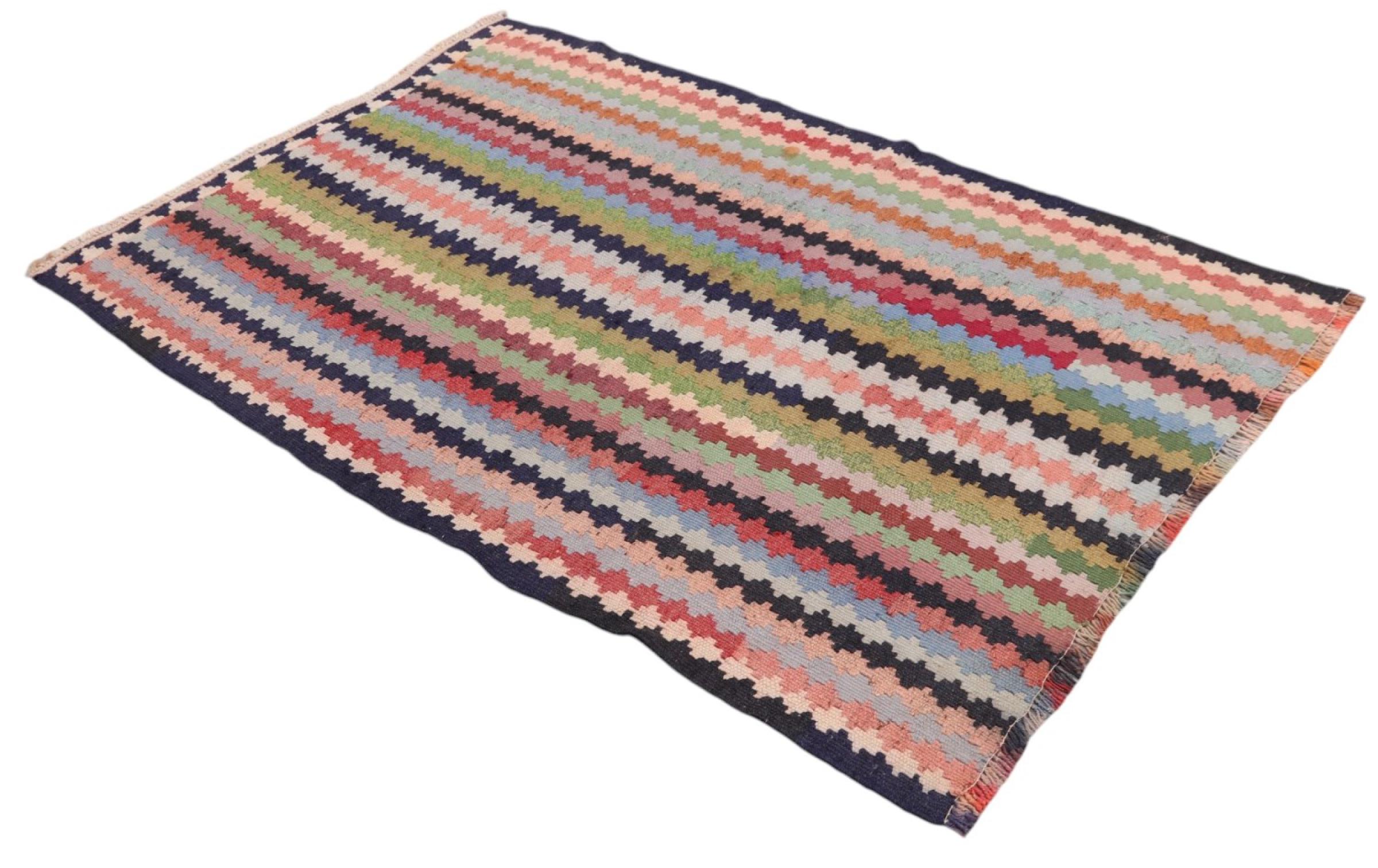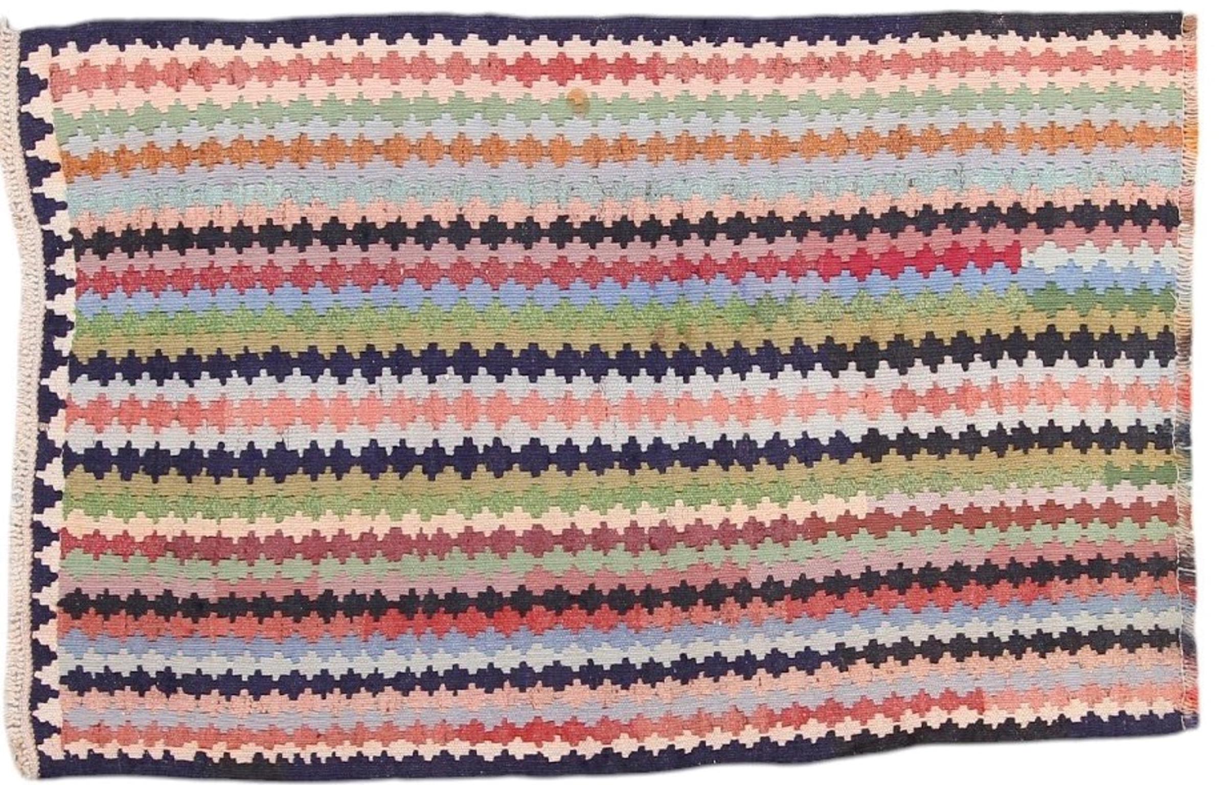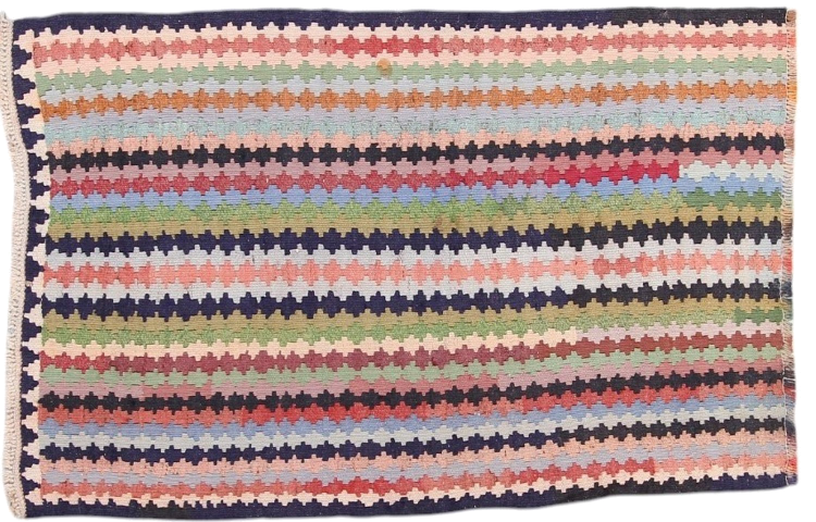 Αυτό το χαλί είναι χειροποίητο ως επίπεδη ύφανση σε αργαλειό. Τα επίπεδα ύφανση είναι χαλιά που δεν έχουν πέλος. Όπως υπόσχεται το όνομα, αυτά τα χαλιά είναι υφαντά και όχι δεμένα με κόμπους. Αυτό έχει ως αποτέλεσμα ένα επίπεδο χαλί με ανάγλυφη επιφάνεια. Τα flatweaves δεν είναι τόσο μαλακά και συνήθως πιο λεπτά από τα χαλιά με κόμπους. Ταυτόχρονα, είναι πολύ λιγότερο πολύπλοκα στην κατασκευή τους και μπορούν συνήθως να τοποθετηθούν και από τις δύο πλευρές (εμπρός και πίσω). Τα σχέδια τους είναι συνήθως γεωμετρικά, κάτι που οφείλεται στην ύφανση.