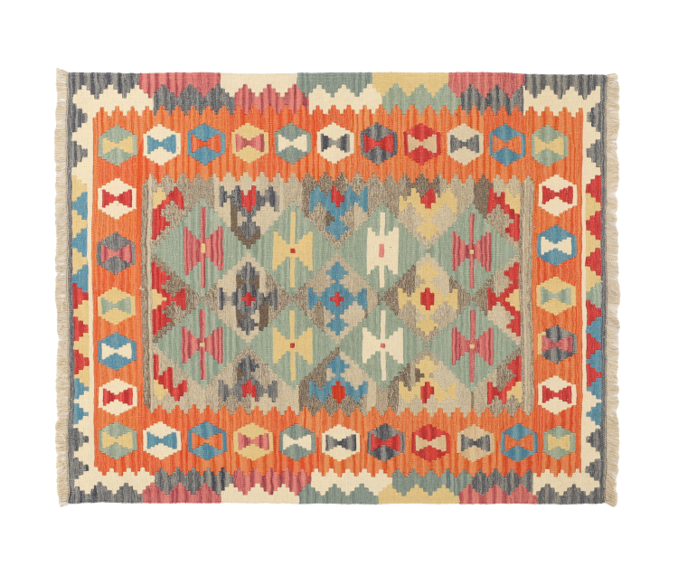 Αυτό το χαλί είναι χειροποίητο ως επίπεδη ύφανση σε αργαλειό. Τα επίπεδα ύφανση είναι χαλιά που δεν έχουν πέλος. Όπως υπόσχεται το όνομα, αυτά τα χαλιά είναι υφαντά και όχι δεμένα με κόμπους. Αυτό έχει ως αποτέλεσμα ένα επίπεδο χαλί με ανάγλυφη επιφάνεια. Τα flatweaves δεν είναι τόσο μαλακά και συνήθως πιο λεπτά από τα χαλιά με κόμπους. Ταυτόχρονα, είναι πολύ λιγότερο πολύπλοκα στην κατασκευή τους και μπορούν συνήθως να τοποθετηθούν και από τις δύο πλευρές (εμπρός και πίσω). Τα σχέδια τους είναι συνήθως γεωμετρικά, κάτι που οφείλεται στην ύφανση.