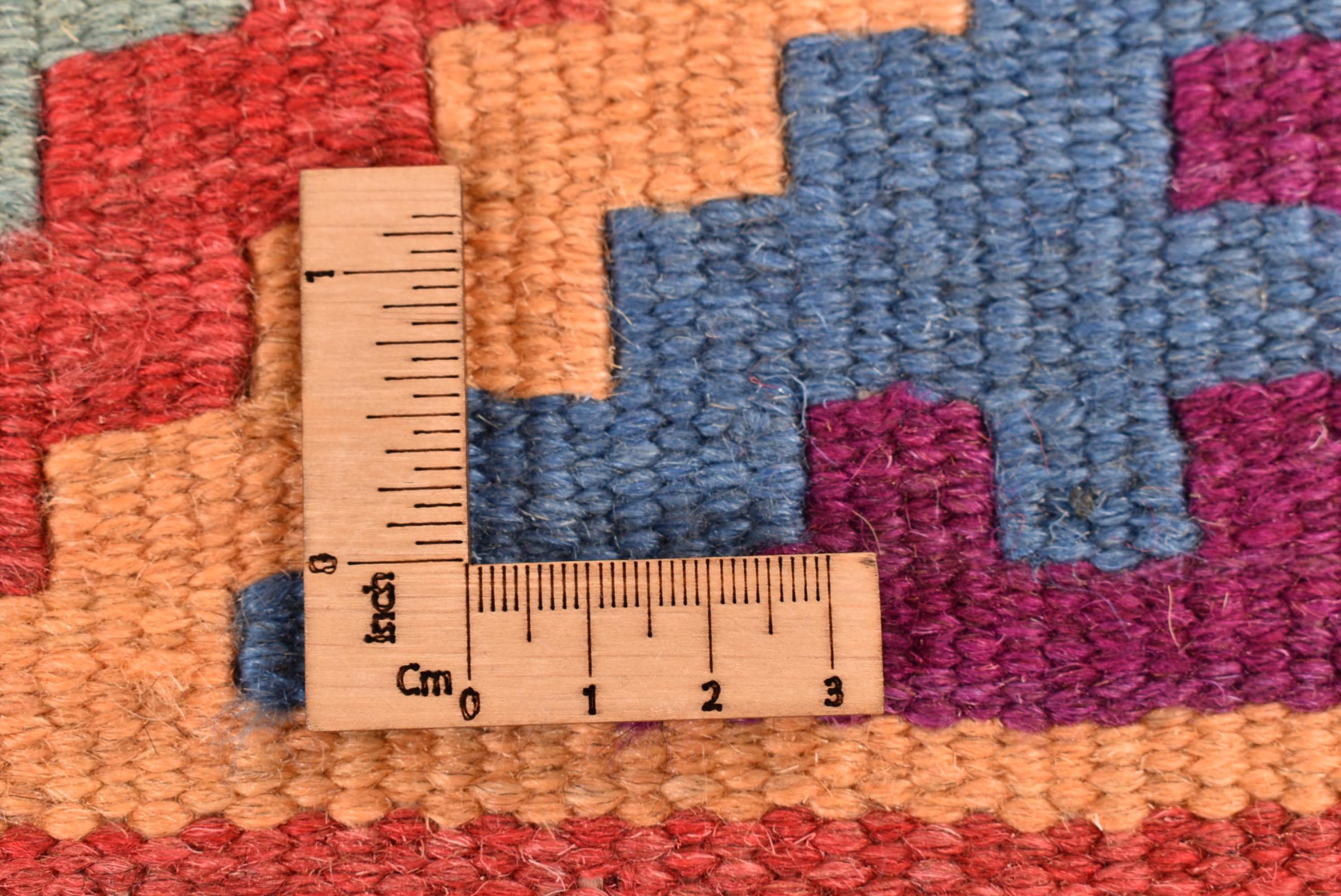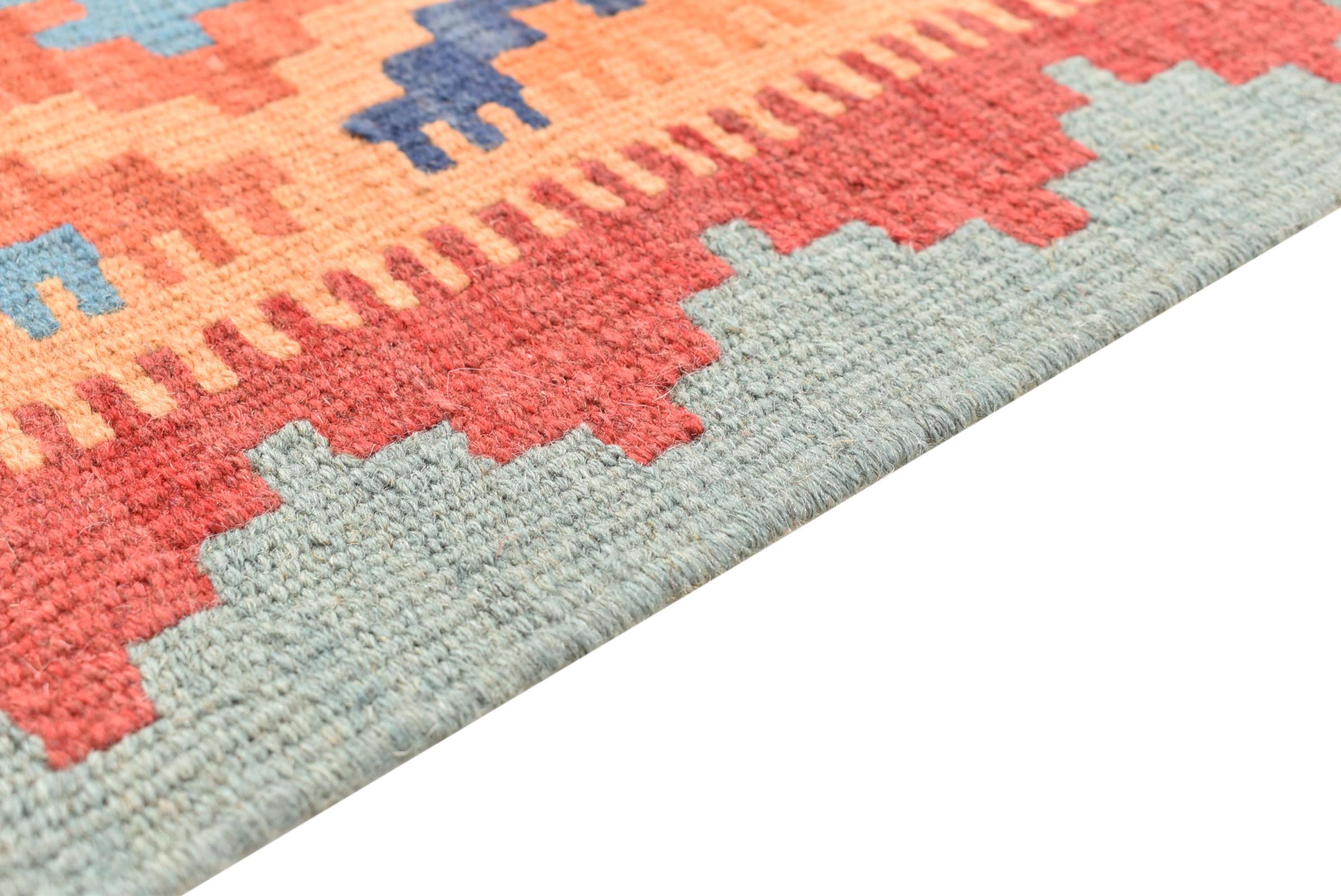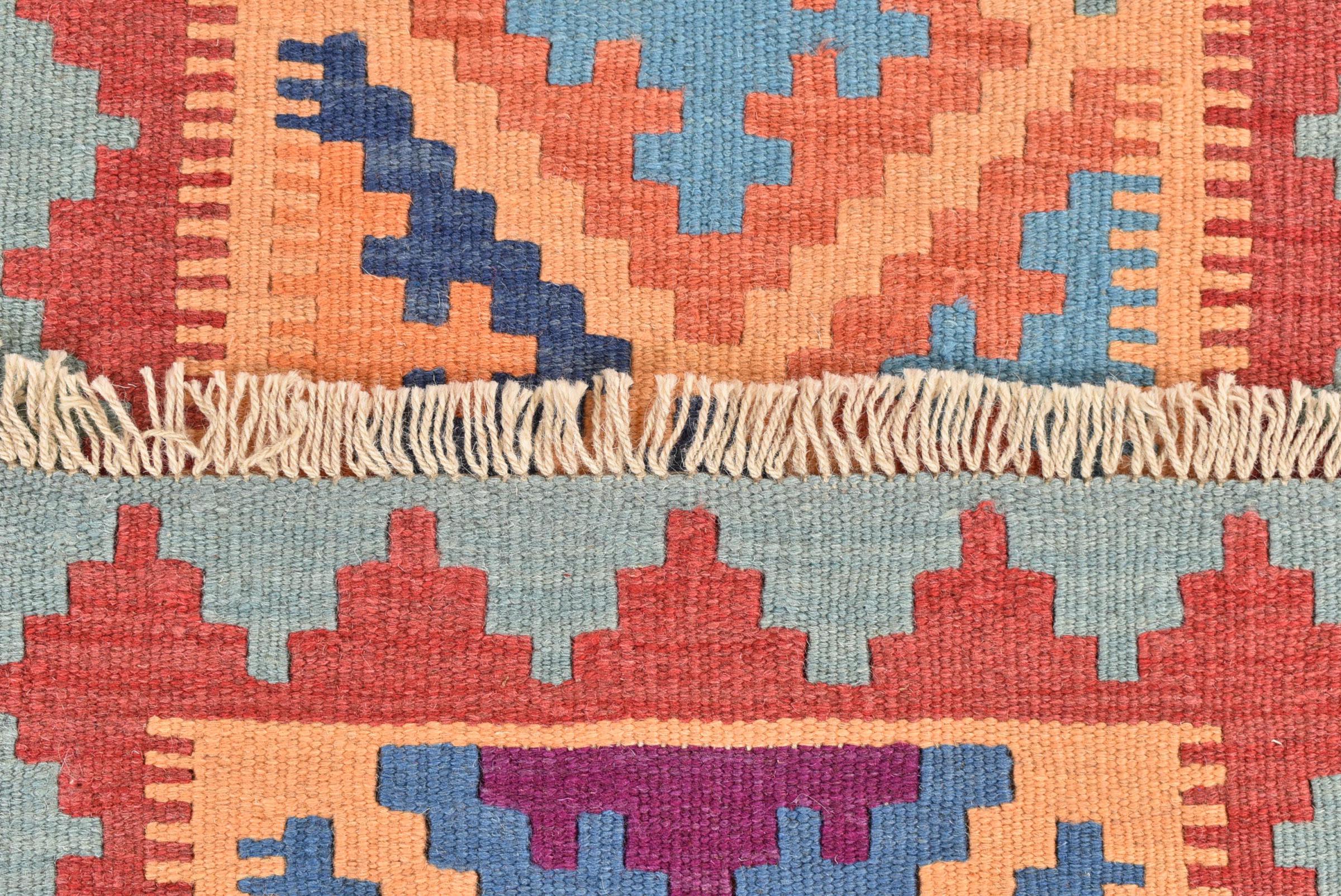 Αυτό το χαλί είναι χειροποίητο ως επίπεδη ύφανση σε αργαλειό. Τα επίπεδα ύφανση είναι χαλιά που δεν έχουν πέλος. Όπως υπόσχεται το όνομα, αυτά τα χαλιά είναι υφαντά και όχι δεμένα με κόμπους. Αυτό έχει ως αποτέλεσμα ένα επίπεδο χαλί με ανάγλυφη επιφάνεια. Τα flatweaves δεν είναι τόσο μαλακά και συνήθως πιο λεπτά από τα χαλιά με κόμπους. Ταυτόχρονα, είναι πολύ λιγότερο πολύπλοκα στην κατασκευή τους και μπορούν συνήθως να τοποθετηθούν και από τις δύο πλευρές (εμπρός και πίσω). Τα σχέδια τους είναι συνήθως γεωμετρικά, κάτι που οφείλεται στην ύφανση.