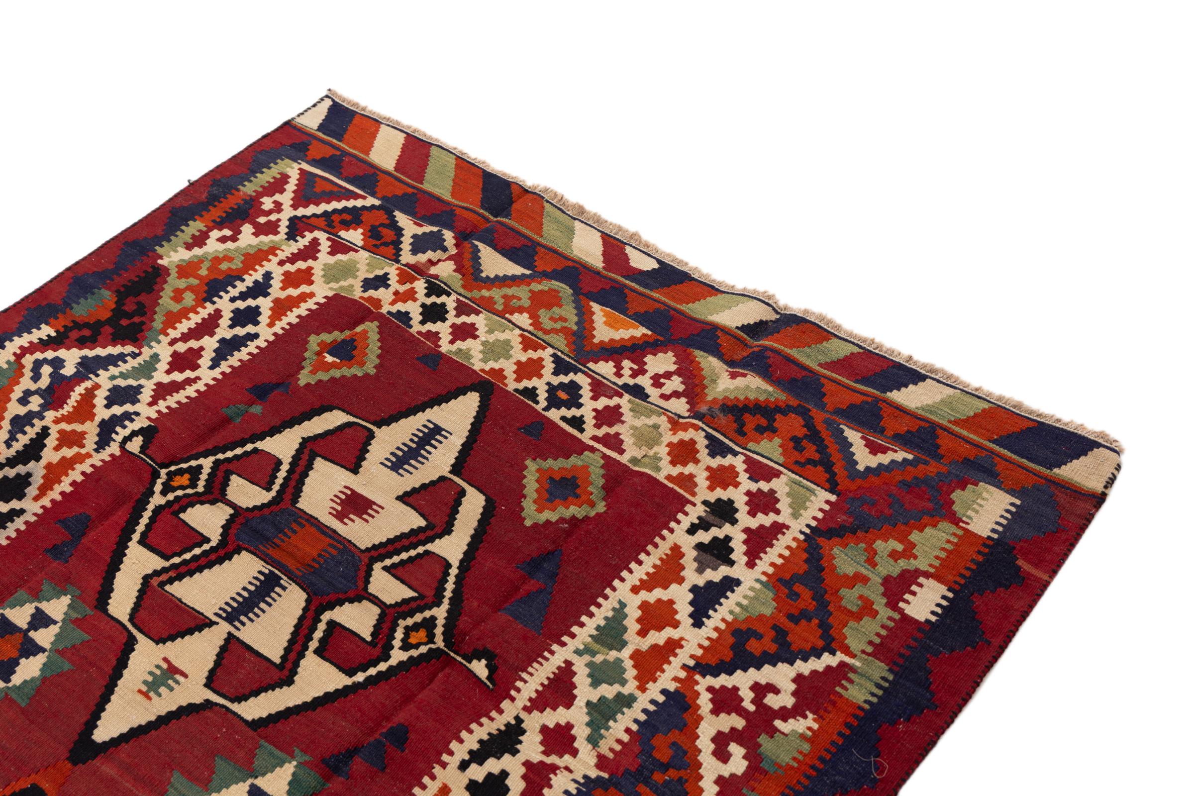 Αυτό το χειροποίητο kilim fars συνδυάζει περσικά σχέδια και στολίδια με την παράδοση των επίπεδων υφαντών. Ένας υπέροχος και μοντέρνος συνδυασμός από τις πιο δημοφιλείς έννοιες της Ανατολής. Έτσι δημιουργείται ένα χαλί με μεγάλη γκάμα χρήσεων. Είτε ως κάλυμμα είτε ως χαλί μπροστά από τον καναπέ – ένα κιλίμι Fars το καθιστά δυνατό και τώρα μπορείτε να το βρείτε στα πιο γνωστά περιοδικά εσωτερικής διακόσμησης. Τα χαλιά Κελίμ Φαρς υφαίνονται στο χέρι στο Ιράν και επομένως συγκαταλέγονται στα υψηλότερα ποιοτικά κιλίμια.