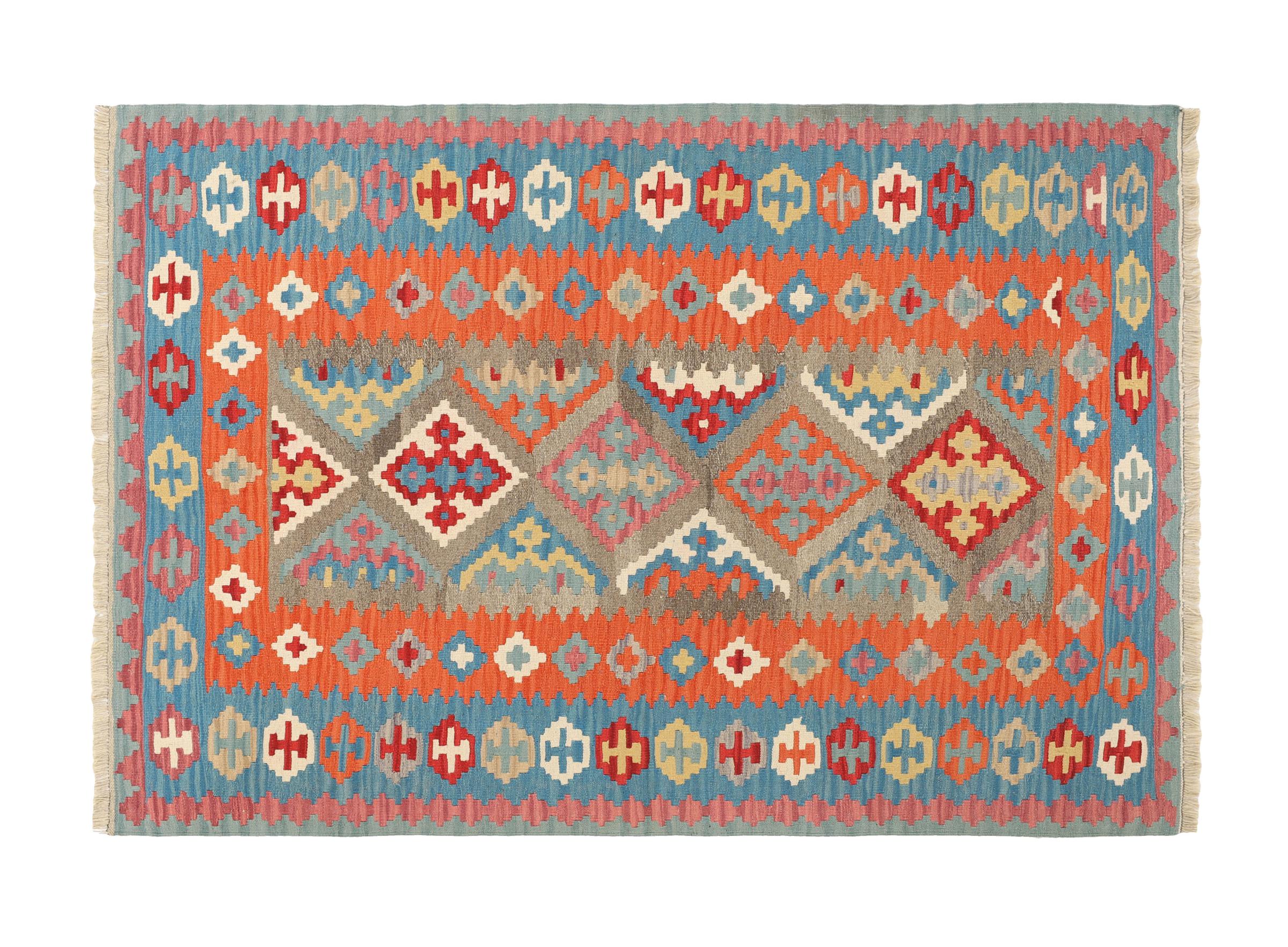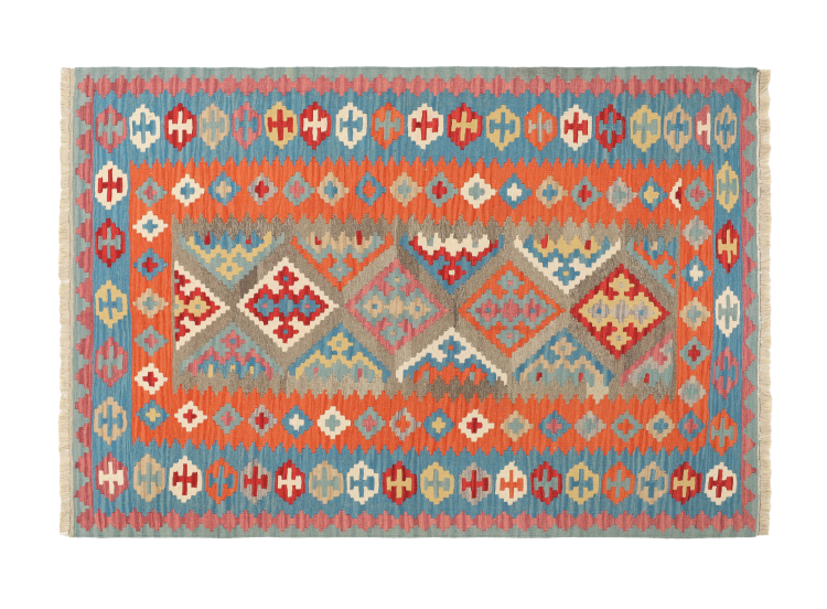 Αυτό το χαλί είναι χειροποίητο ως επίπεδη ύφανση σε αργαλειό. Τα επίπεδα ύφανση είναι χαλιά που δεν έχουν πέλος. Όπως υπόσχεται το όνομα, αυτά τα χαλιά είναι υφαντά και όχι δεμένα με κόμπους. Αυτό έχει ως αποτέλεσμα ένα επίπεδο χαλί με ανάγλυφη επιφάνεια. Τα flatweaves δεν είναι τόσο μαλακά και συνήθως πιο λεπτά από τα χαλιά με κόμπους. Ταυτόχρονα, είναι πολύ λιγότερο πολύπλοκα στην κατασκευή τους και μπορούν συνήθως να τοποθετηθούν και από τις δύο πλευρές (εμπρός και πίσω). Τα σχέδια τους είναι συνήθως γεωμετρικά, κάτι που οφείλεται στην ύφανση.