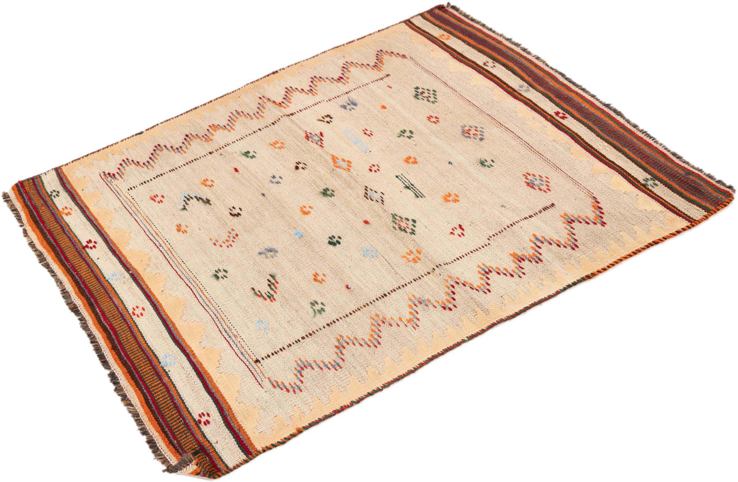Αυτό το χειροποίητο kilim fars συνδυάζει περσικά σχέδια και στολίδια με την παράδοση των επίπεδων υφαντών. Ένας υπέροχος και μοντέρνος συνδυασμός από τις πιο δημοφιλείς έννοιες της Ανατολής. Έτσι δημιουργείται ένα χαλί με μεγάλη γκάμα χρήσεων. Είτε ως κάλυμμα είτε ως χαλί μπροστά από τον καναπέ – ένα κιλίμι Fars το καθιστά δυνατό και τώρα μπορείτε να το βρείτε στα πιο γνωστά περιοδικά εσωτερικής διακόσμησης. Τα χαλιά Κελίμ Φαρς υφαίνονται στο χέρι στο Ιράν και επομένως συγκαταλέγονται στα υψηλότερα ποιοτικά κιλίμια.