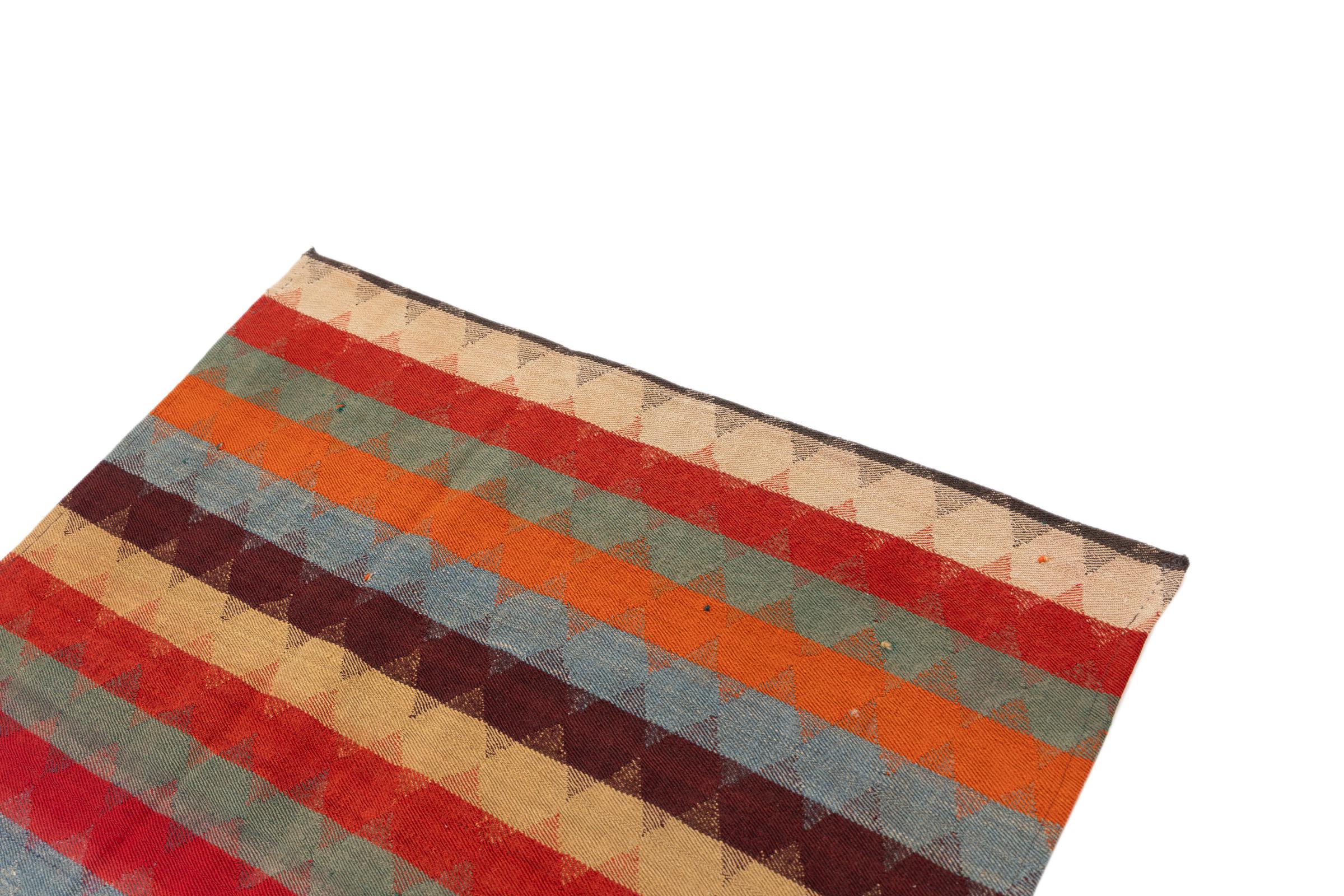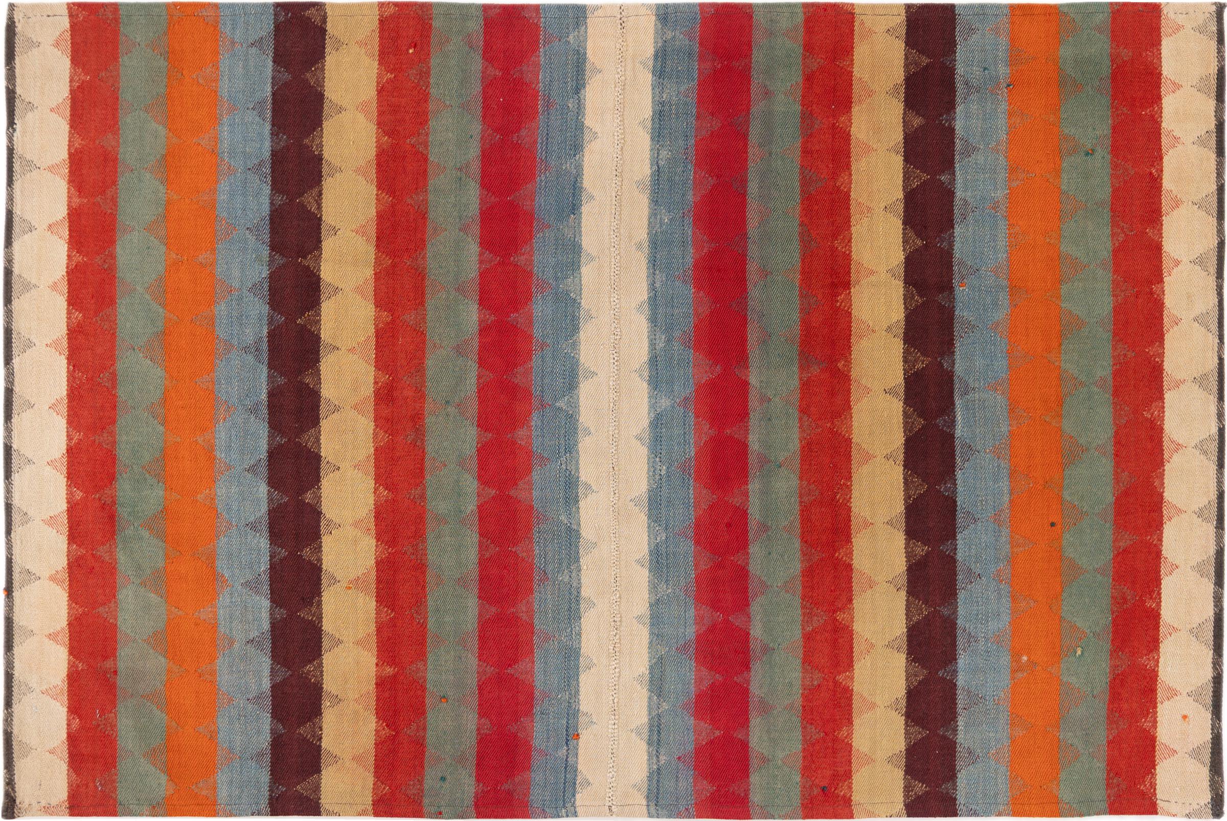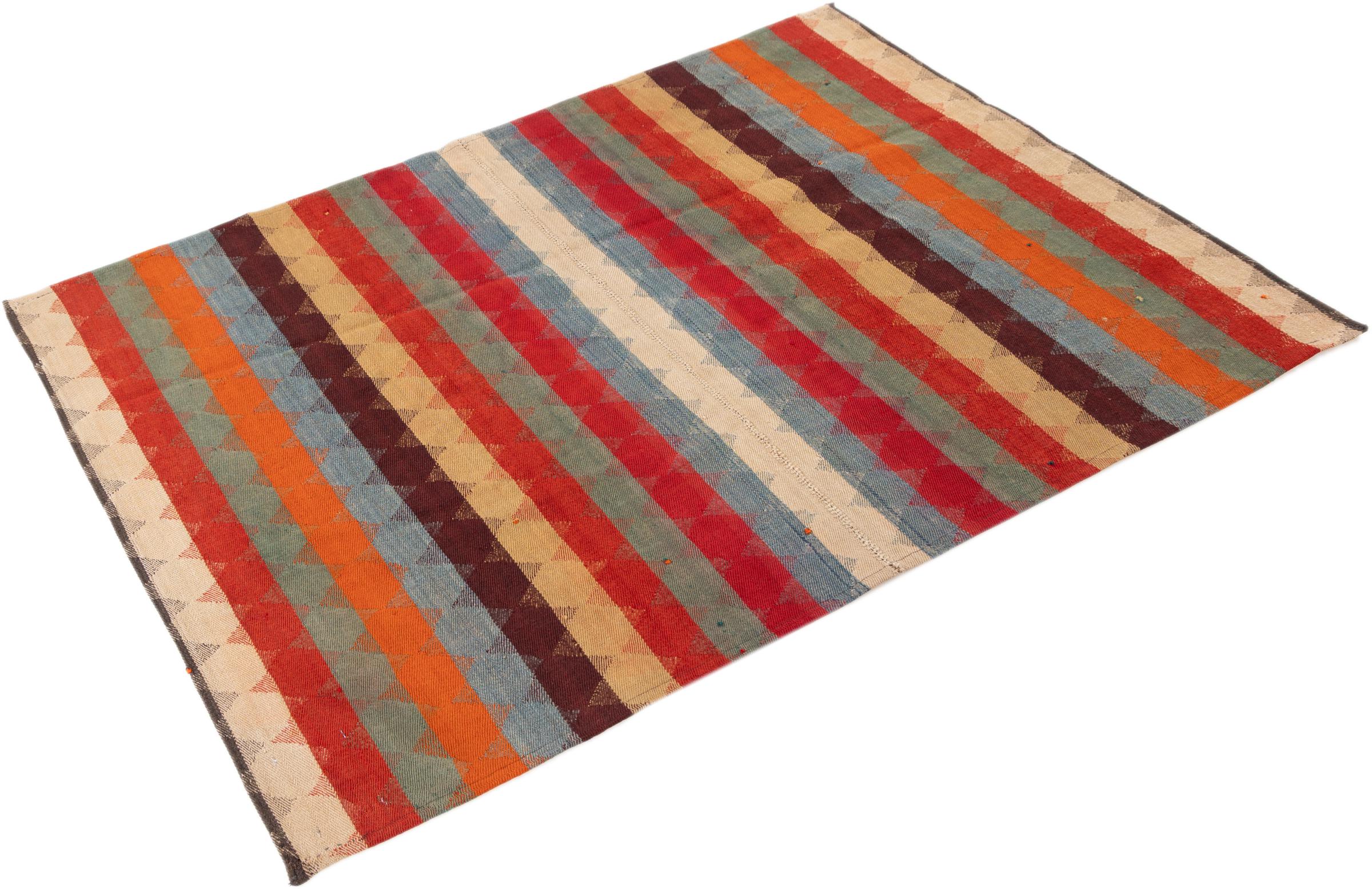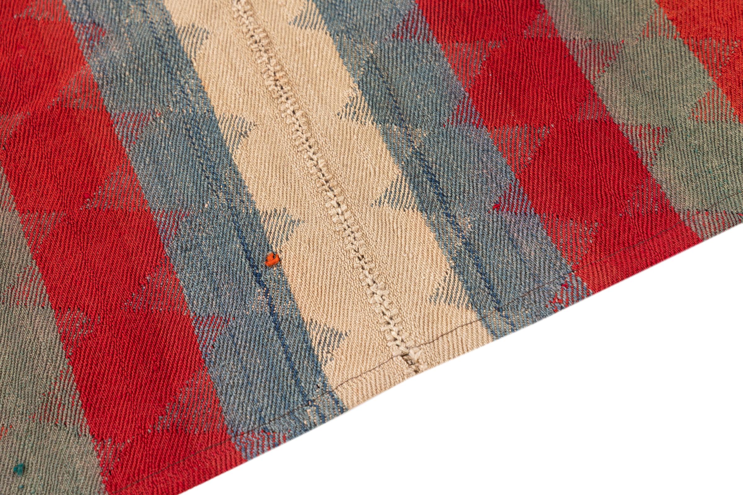 Αυτό το χαλί είναι χειροποίητο ως επίπεδη ύφανση σε αργαλειό. Τα επίπεδα ύφανση είναι χαλιά που δεν έχουν πέλος. Όπως υπόσχεται το όνομα, αυτά τα χαλιά είναι υφαντά και όχι δεμένα με κόμπους. Αυτό έχει ως αποτέλεσμα ένα επίπεδο χαλί με ανάγλυφη επιφάνεια. Τα flatweaves δεν είναι τόσο μαλακά και συνήθως πιο λεπτά από τα χαλιά με κόμπους. Ταυτόχρονα, είναι πολύ λιγότερο πολύπλοκα στην κατασκευή τους και μπορούν συνήθως να τοποθετηθούν και από τις δύο πλευρές (εμπρός και πίσω). Τα σχέδια τους είναι συνήθως γεωμετρικά, κάτι που οφείλεται στην ύφανση.