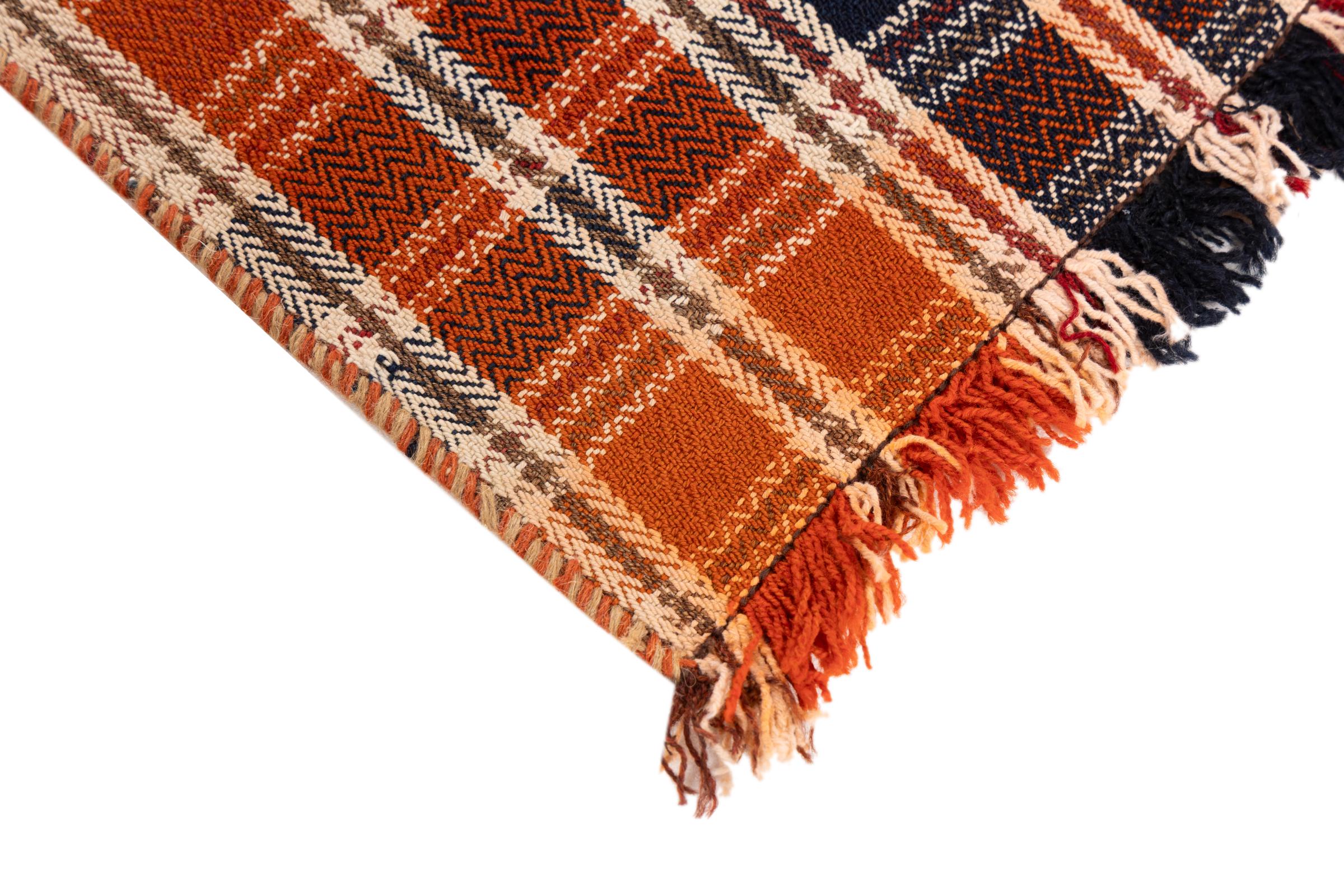 Αυτό το χαλί είναι χειροποίητο ως επίπεδη ύφανση σε αργαλειό. Τα επίπεδα ύφανση είναι χαλιά που δεν έχουν πέλος. Όπως υπόσχεται το όνομα, αυτά τα χαλιά είναι υφαντά και όχι δεμένα με κόμπους. Αυτό έχει ως αποτέλεσμα ένα επίπεδο χαλί με ανάγλυφη επιφάνεια. Τα flatweaves δεν είναι τόσο μαλακά και συνήθως πιο λεπτά από τα χαλιά με κόμπους. Ταυτόχρονα, είναι πολύ λιγότερο πολύπλοκα στην κατασκευή τους και μπορούν συνήθως να τοποθετηθούν και από τις δύο πλευρές (εμπρός και πίσω). Τα σχέδια τους είναι συνήθως γεωμετρικά, κάτι που οφείλεται στην ύφανση.
