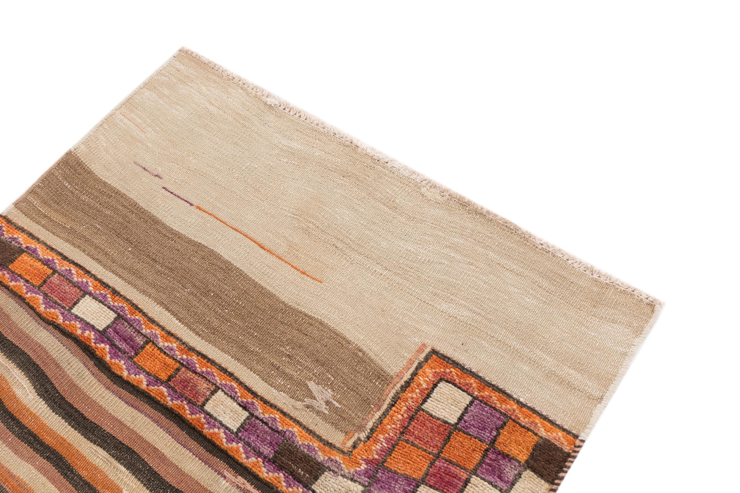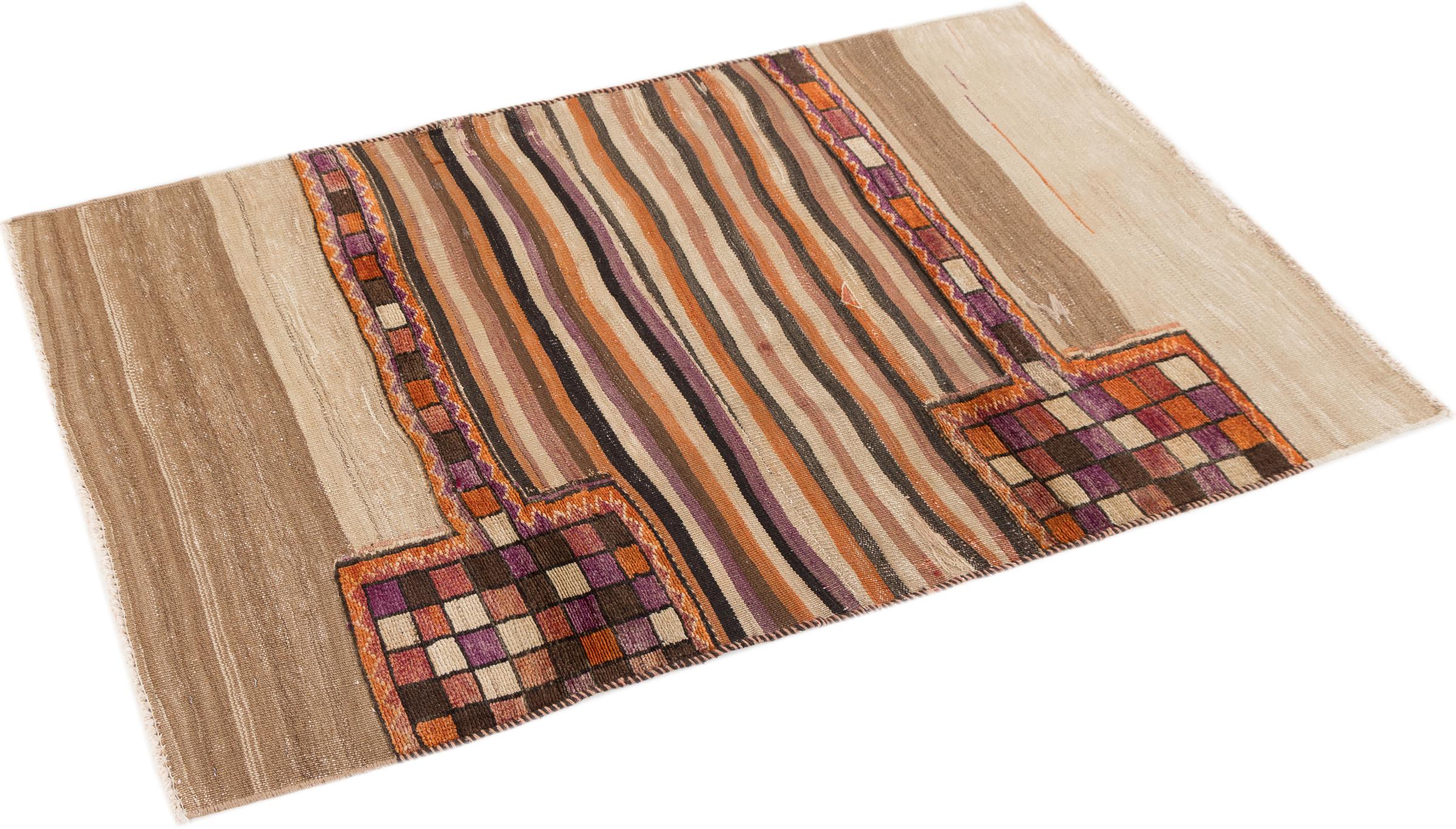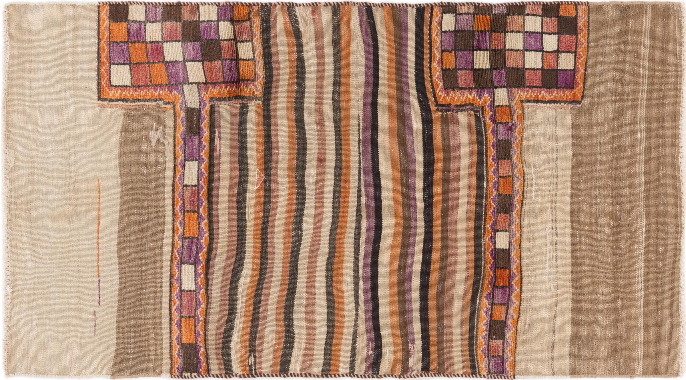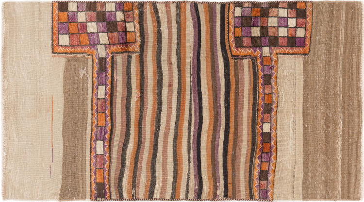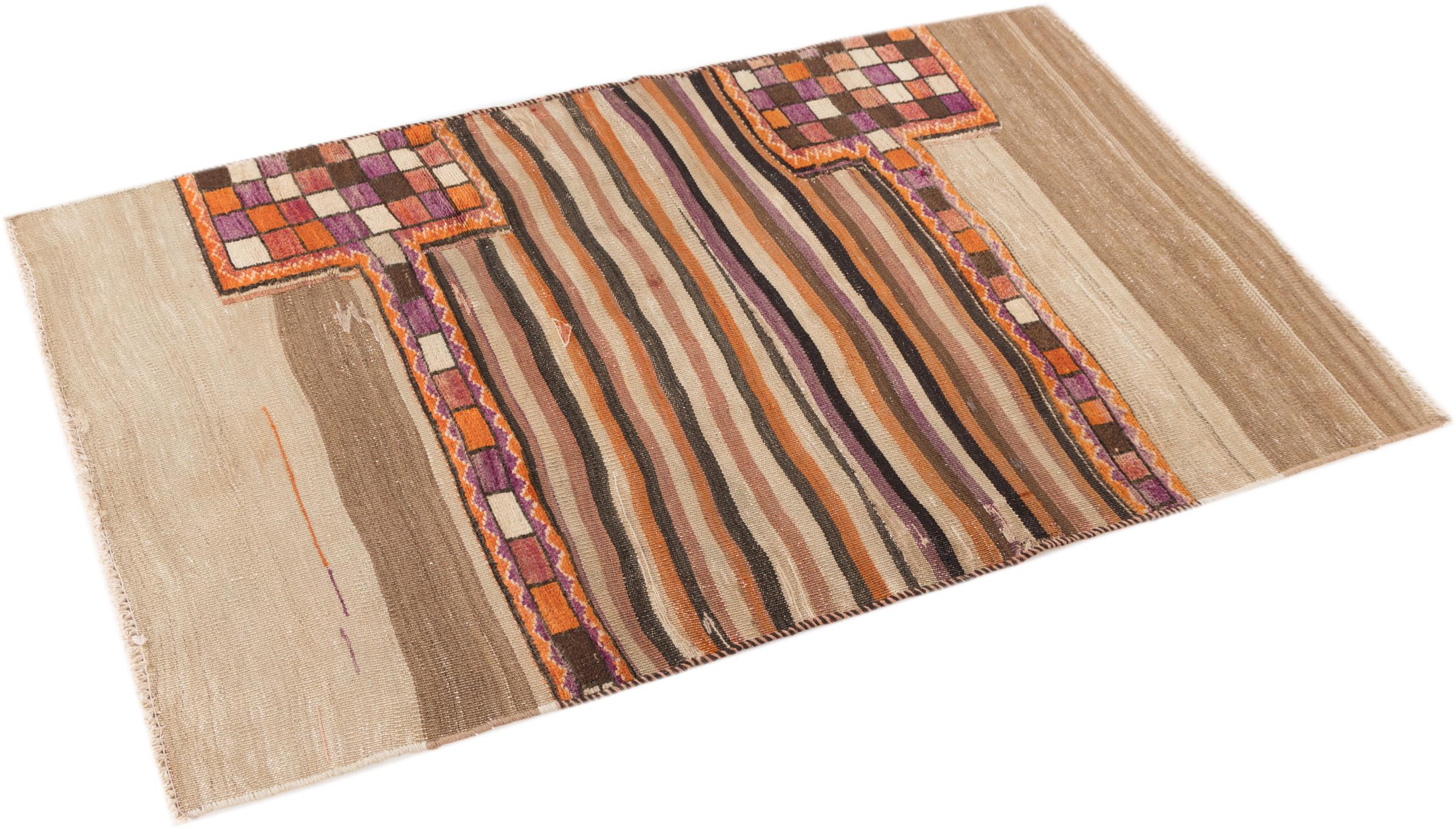 Αυτό το χαλί είναι χειροποίητο ως επίπεδη ύφανση σε αργαλειό. Τα επίπεδα ύφανση είναι χαλιά που δεν έχουν πέλος. Όπως υπόσχεται το όνομα, αυτά τα χαλιά είναι υφαντά και όχι δεμένα με κόμπους. Αυτό έχει ως αποτέλεσμα ένα επίπεδο χαλί με ανάγλυφη επιφάνεια. Τα flatweaves δεν είναι τόσο μαλακά και συνήθως πιο λεπτά από τα χαλιά με κόμπους. Ταυτόχρονα, είναι πολύ λιγότερο πολύπλοκα στην κατασκευή τους και μπορούν συνήθως να τοποθετηθούν και από τις δύο πλευρές (εμπρός και πίσω). Τα σχέδια τους είναι συνήθως γεωμετρικά, κάτι που οφείλεται στην ύφανση.
