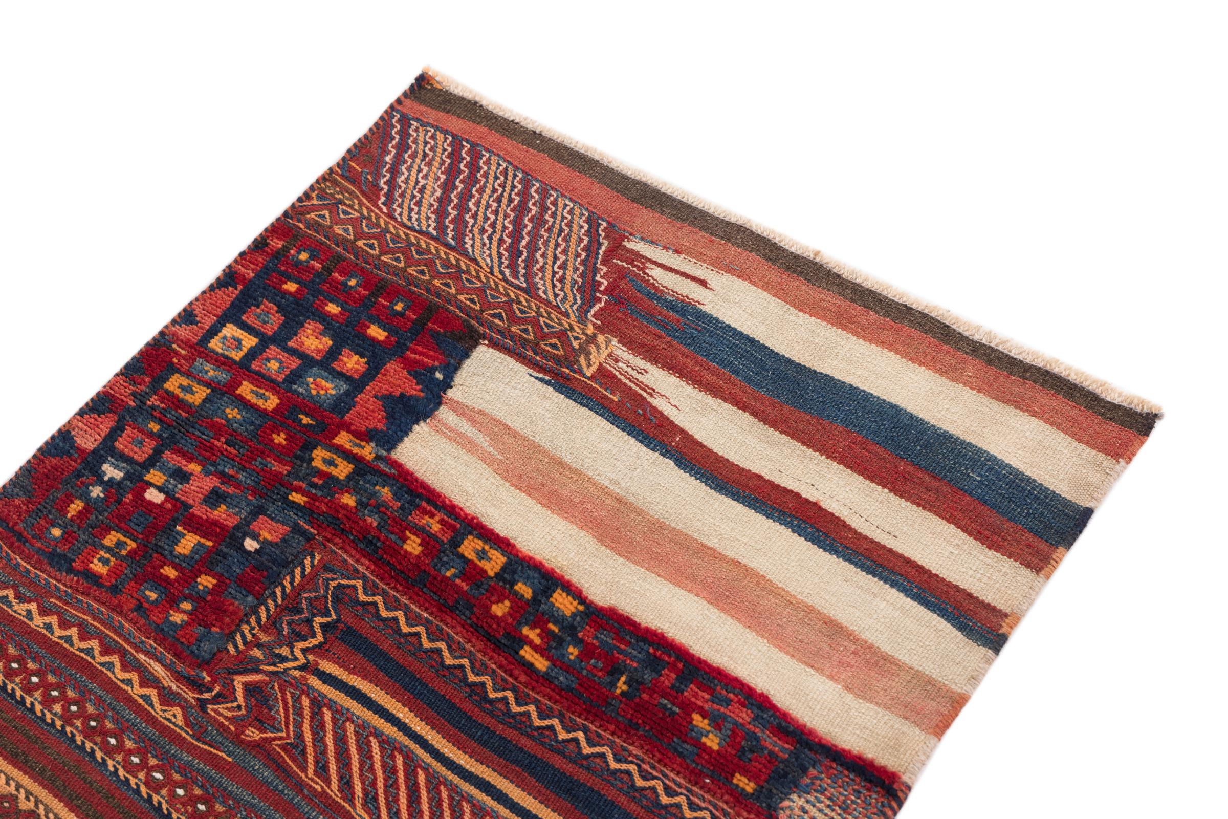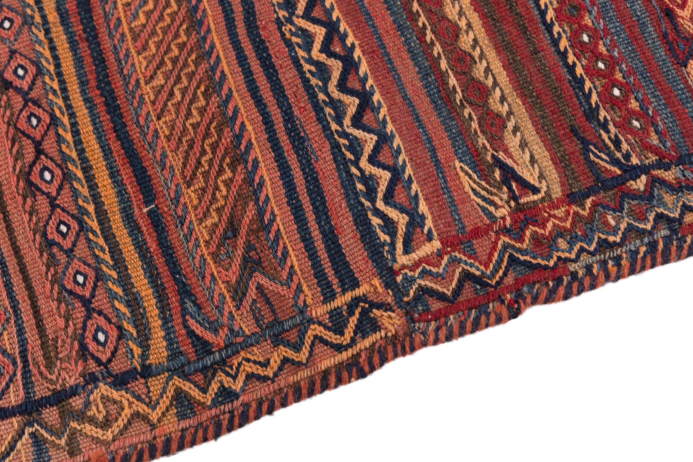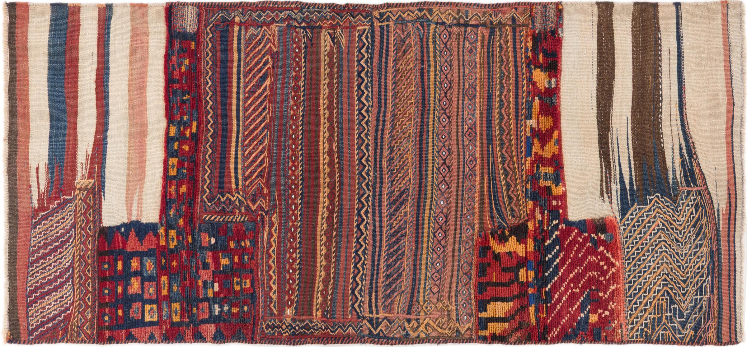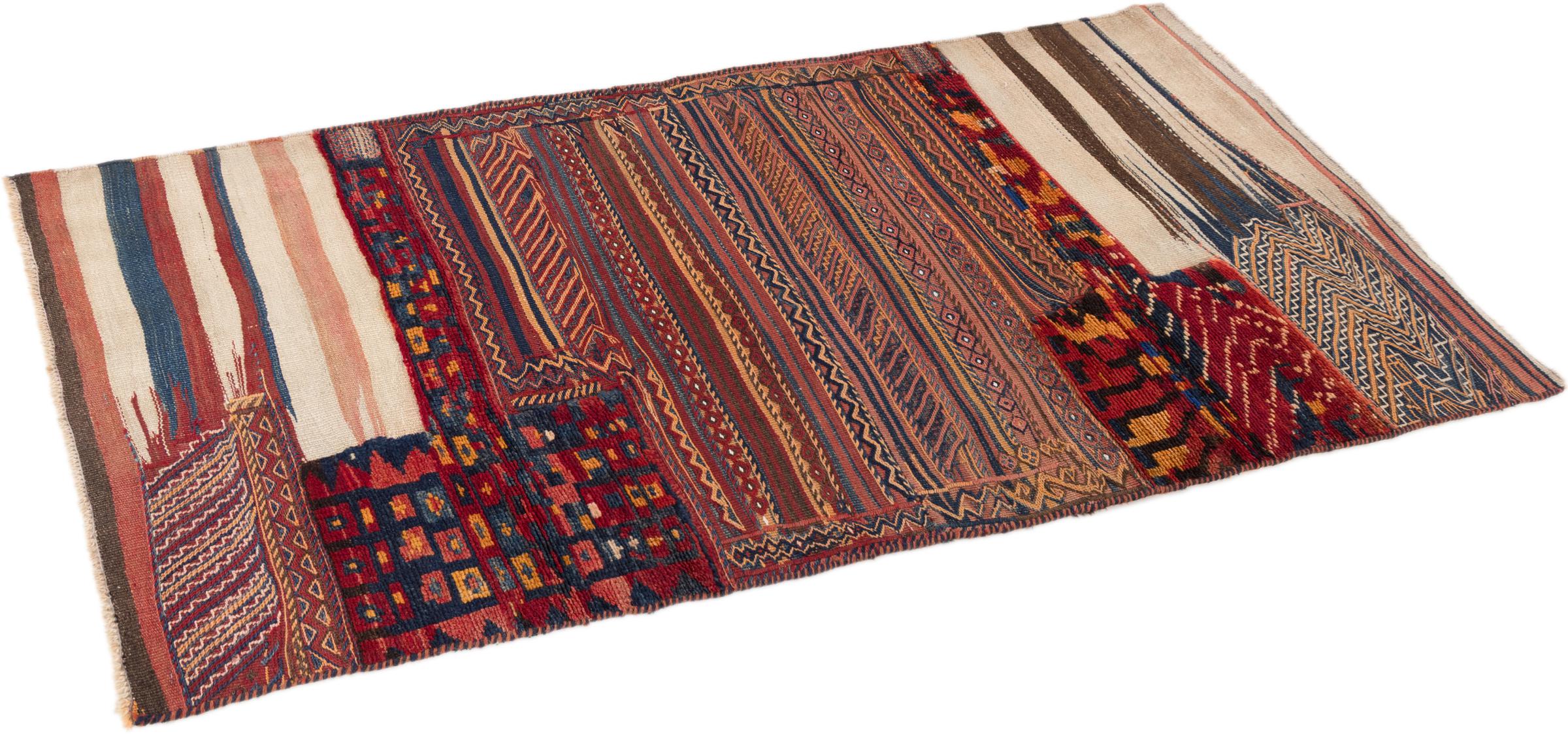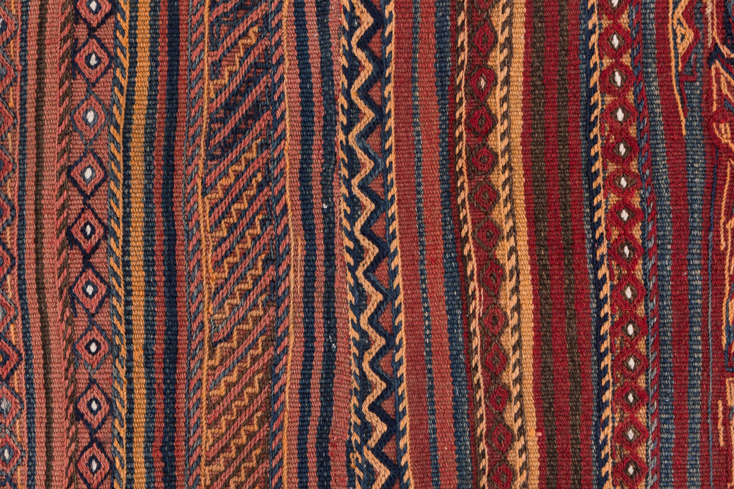Αυτό το χαλί είναι χειροποίητο ως επίπεδη ύφανση σε αργαλειό. Τα επίπεδα ύφανση είναι χαλιά που δεν έχουν πέλος. Όπως υπόσχεται το όνομα, αυτά τα χαλιά είναι υφαντά και όχι δεμένα με κόμπους. Αυτό έχει ως αποτέλεσμα ένα επίπεδο χαλί με ανάγλυφη επιφάνεια. Τα flatweaves δεν είναι τόσο μαλακά και συνήθως πιο λεπτά από τα χαλιά με κόμπους. Ταυτόχρονα, είναι πολύ λιγότερο πολύπλοκα στην κατασκευή τους και μπορούν συνήθως να τοποθετηθούν και από τις δύο πλευρές (εμπρός και πίσω). Τα σχέδια τους είναι συνήθως γεωμετρικά, κάτι που οφείλεται στην ύφανση.