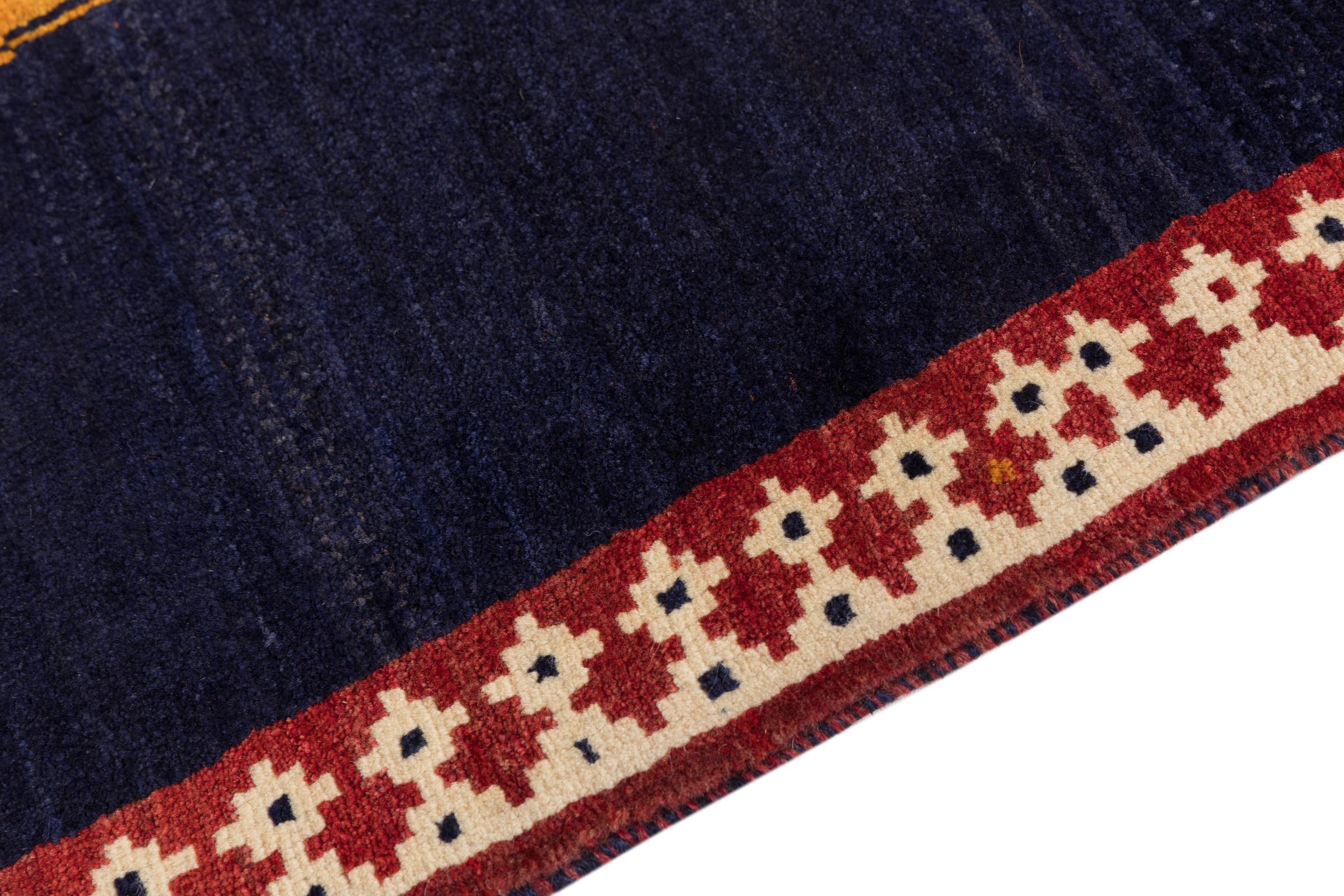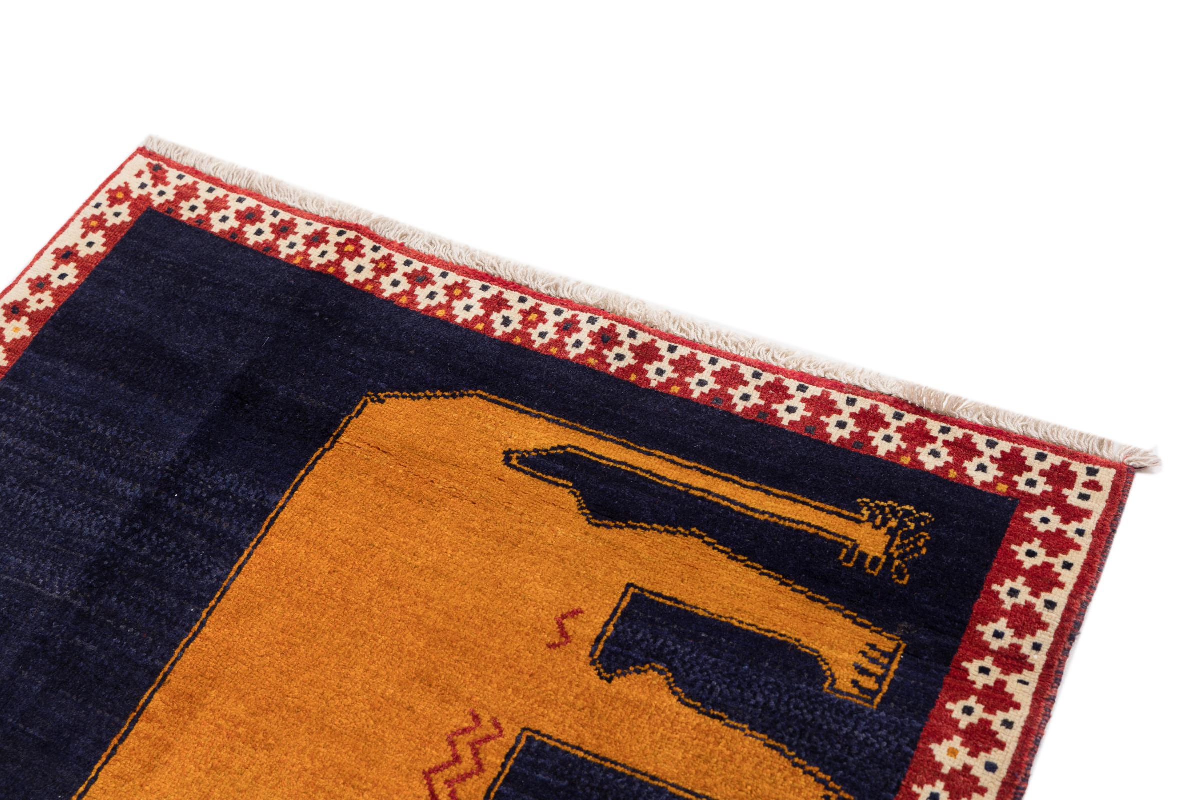 Αυτό το όμορφο χαλί είναι περσικό χαλί Gabbeh και είναι ένα από τα ποιοτικότερα χαλιά Gabbeh. Τα χαλιά δένονται από νομάδες ή ημινομάδες στο Ιράν σύμφωνα με την παραδοσιακή χειροτεχνία. Τα απλά μοτίβα και τα σχέδια είναι κυρίως εμπνευσμένα από το άμεσο περιβάλλον των νομάδων. Για παράδειγμα, καμήλες, δέντρα ή θάμνοι μπορούν να βρεθούν στα παραδοσιακά χαλιά. Τα περσικά χαλιά Gabbeh κατασκευάζονται από μαλλί από κοπάδια προβάτων που εκτρέφονται τοπικά. Ως εκ τούτου, το μαλλί ως επί το πλείστον εξακολουθεί να κλώνεται με το χέρι. Κάθε ένα από αυτά τα ανατολίτικα χαλιά ενσαρκώνει έναν μοναδικό χαρακτήρα αιώνων πολιτισμού.