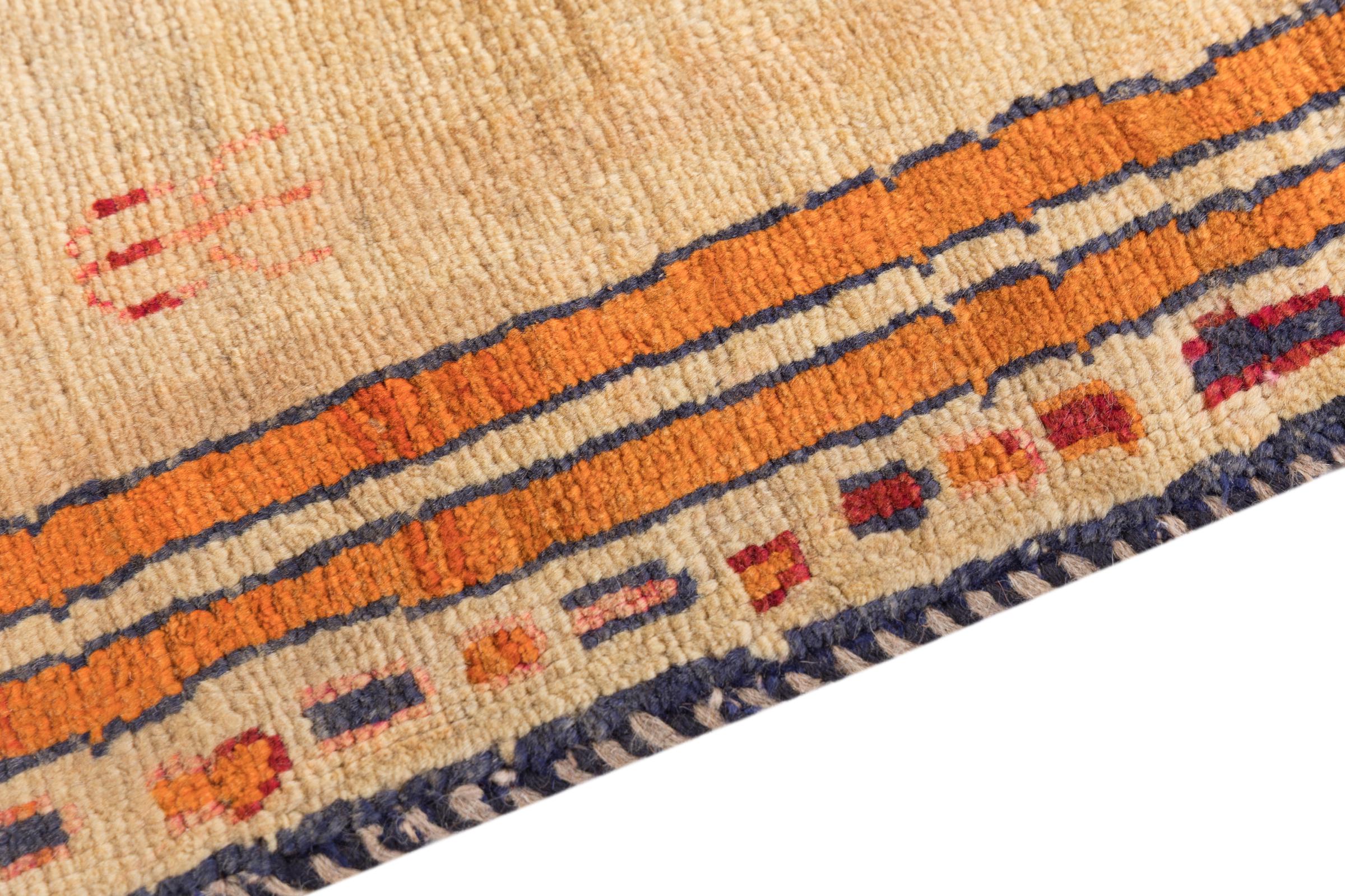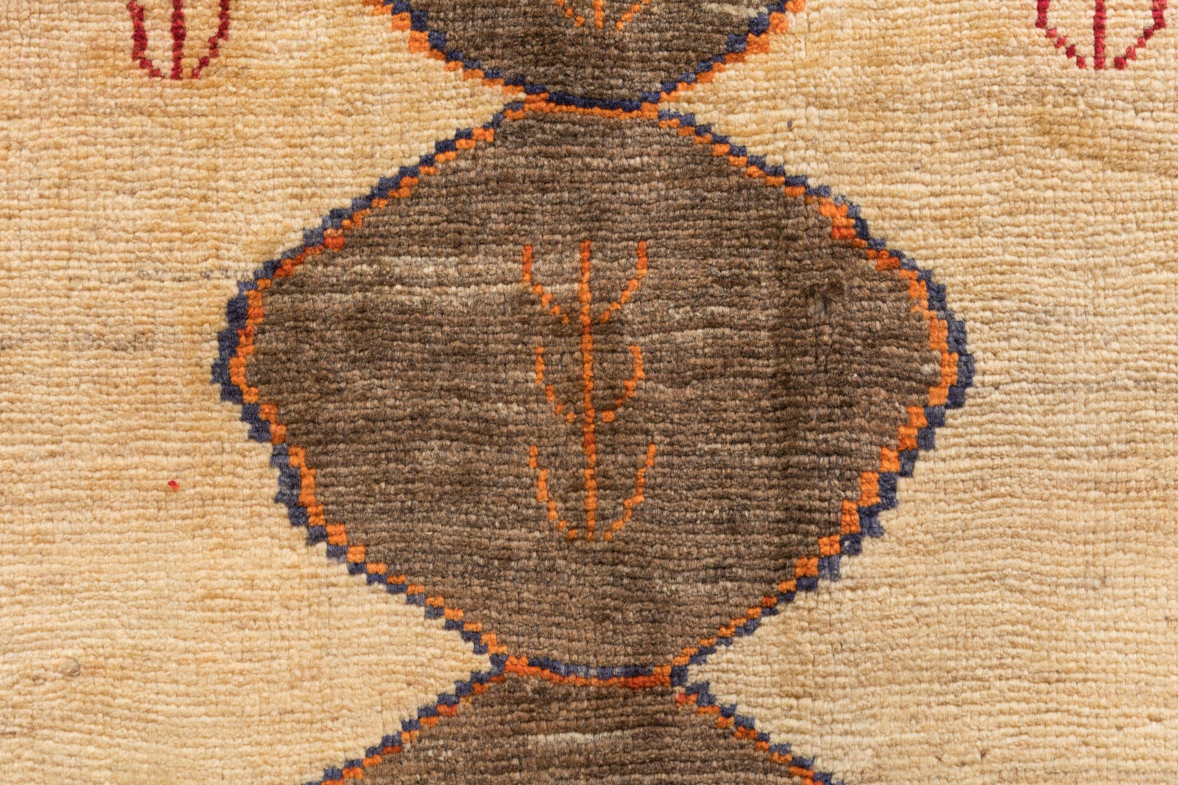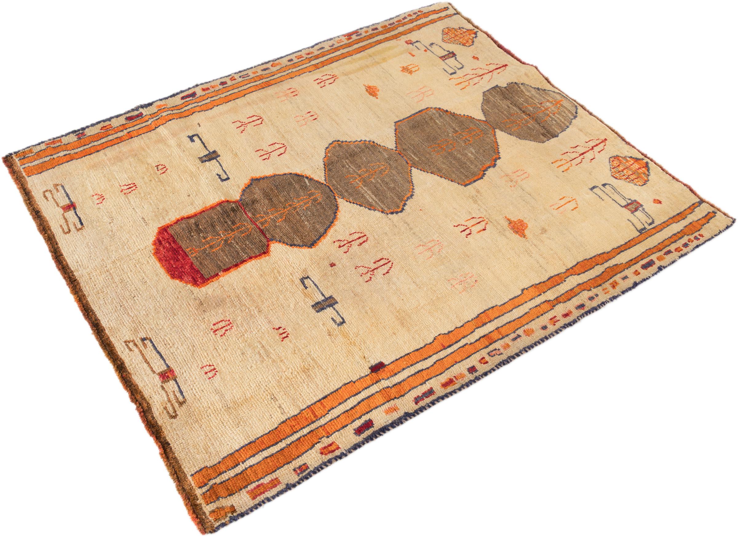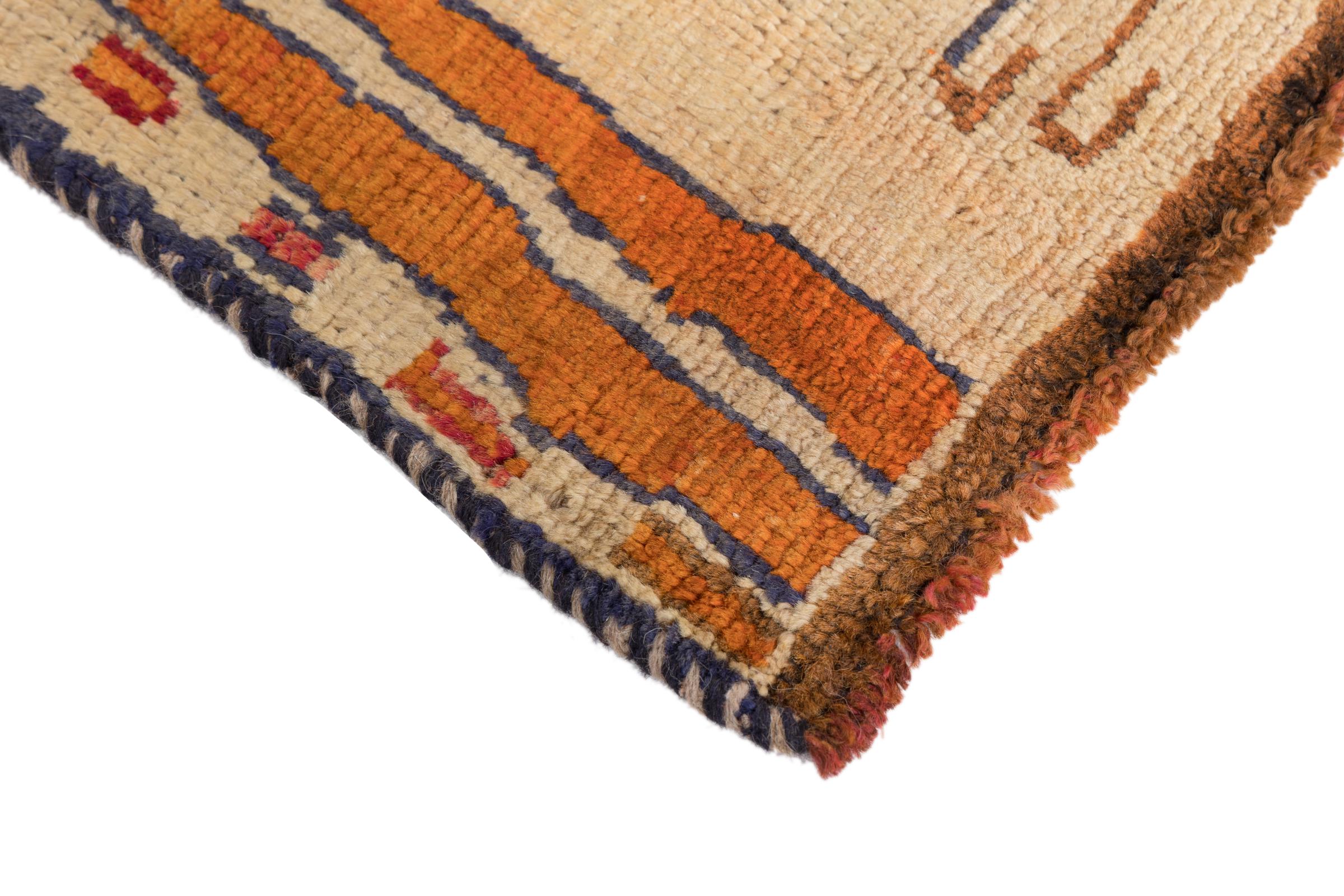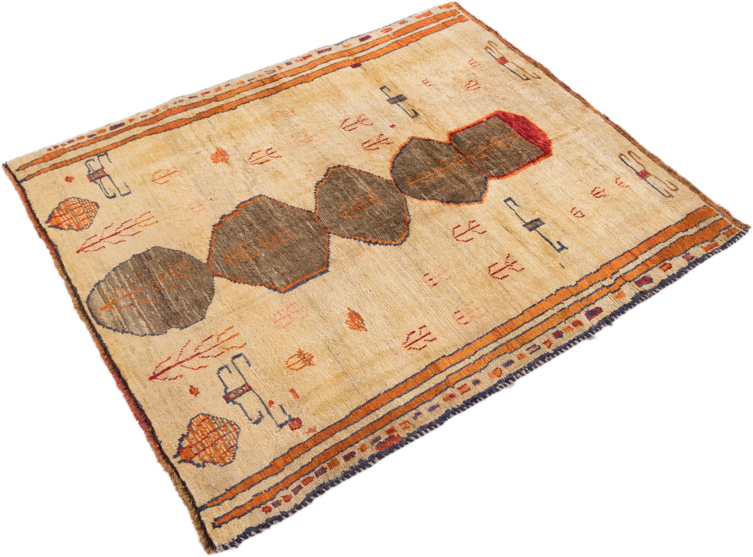Αυτό το όμορφο χαλί είναι περσικό χαλί Gabbeh και είναι ένα από τα ποιοτικότερα χαλιά Gabbeh. Τα χαλιά δένονται από νομάδες ή ημινομάδες στο Ιράν σύμφωνα με την παραδοσιακή χειροτεχνία. Τα απλά μοτίβα και τα σχέδια είναι κυρίως εμπνευσμένα από το άμεσο περιβάλλον των νομάδων. Για παράδειγμα, καμήλες, δέντρα ή θάμνοι μπορούν να βρεθούν στα παραδοσιακά χαλιά. Τα περσικά χαλιά Gabbeh κατασκευάζονται από μαλλί από κοπάδια προβάτων που εκτρέφονται τοπικά. Ως εκ τούτου, το μαλλί ως επί το πλείστον εξακολουθεί να κλώνεται με το χέρι. Κάθε ένα από αυτά τα ανατολίτικα χαλιά ενσαρκώνει έναν μοναδικό χαρακτήρα αιώνων πολιτισμού.